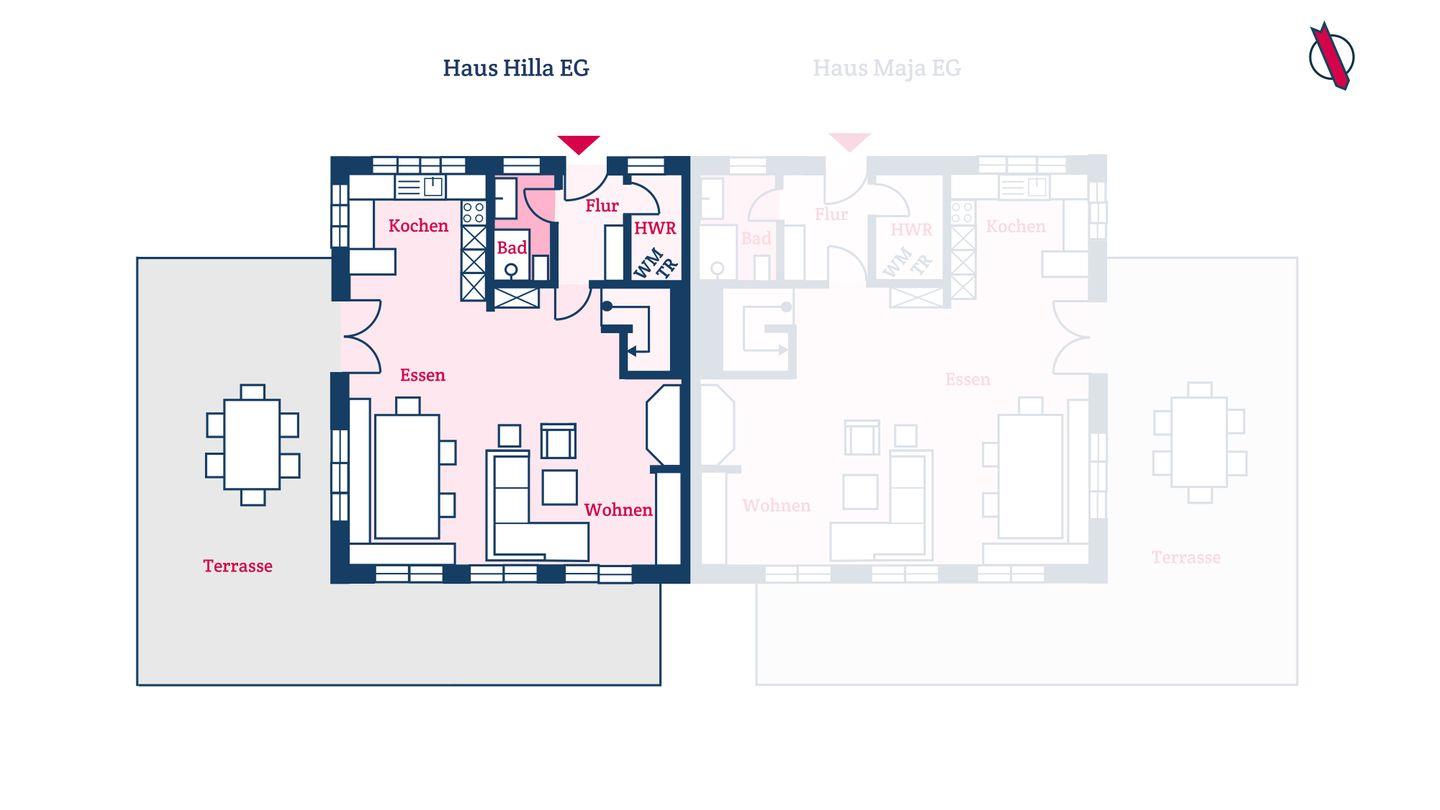 Die reetgedeckte Doppelhaushälfte Landhaus Hilla wurde im Jahr 2023 neu gebaut und verfügt über 4 Schlafzimmer und 2 Bäder und bietet somit komfortabel Platz für bis zu 7 Personen zuzüglich einer Kleinkinderaufbettung. Auch bis zu 2 Hunde sind herzlich willkommen.
