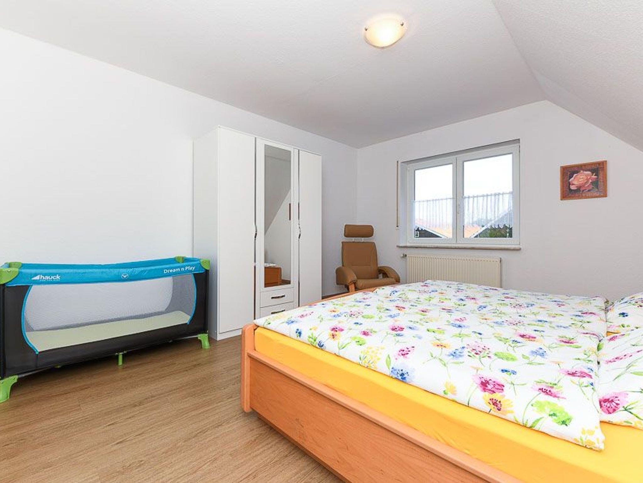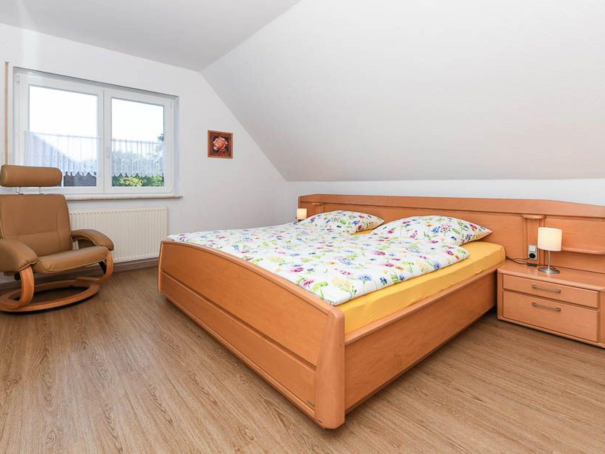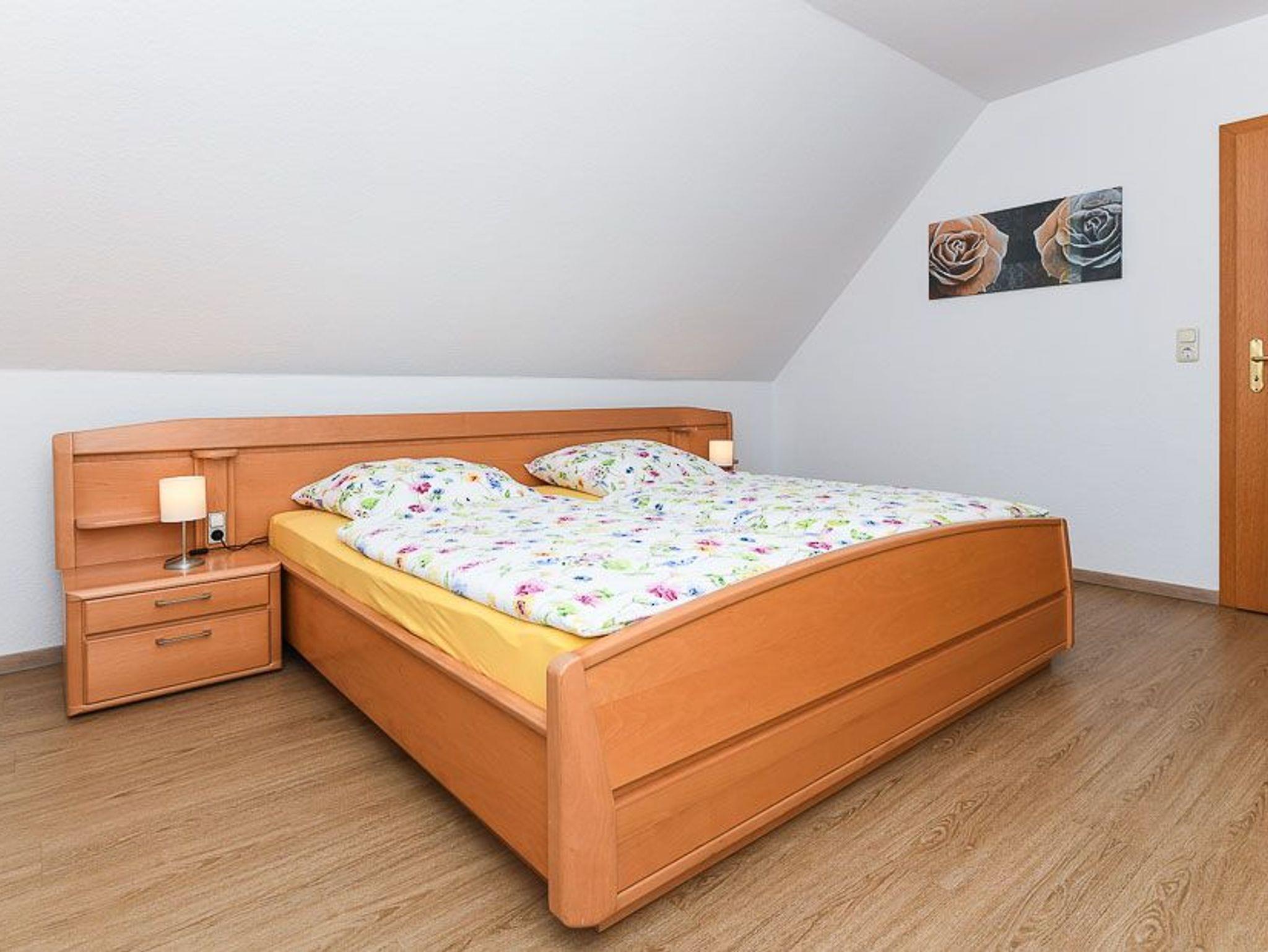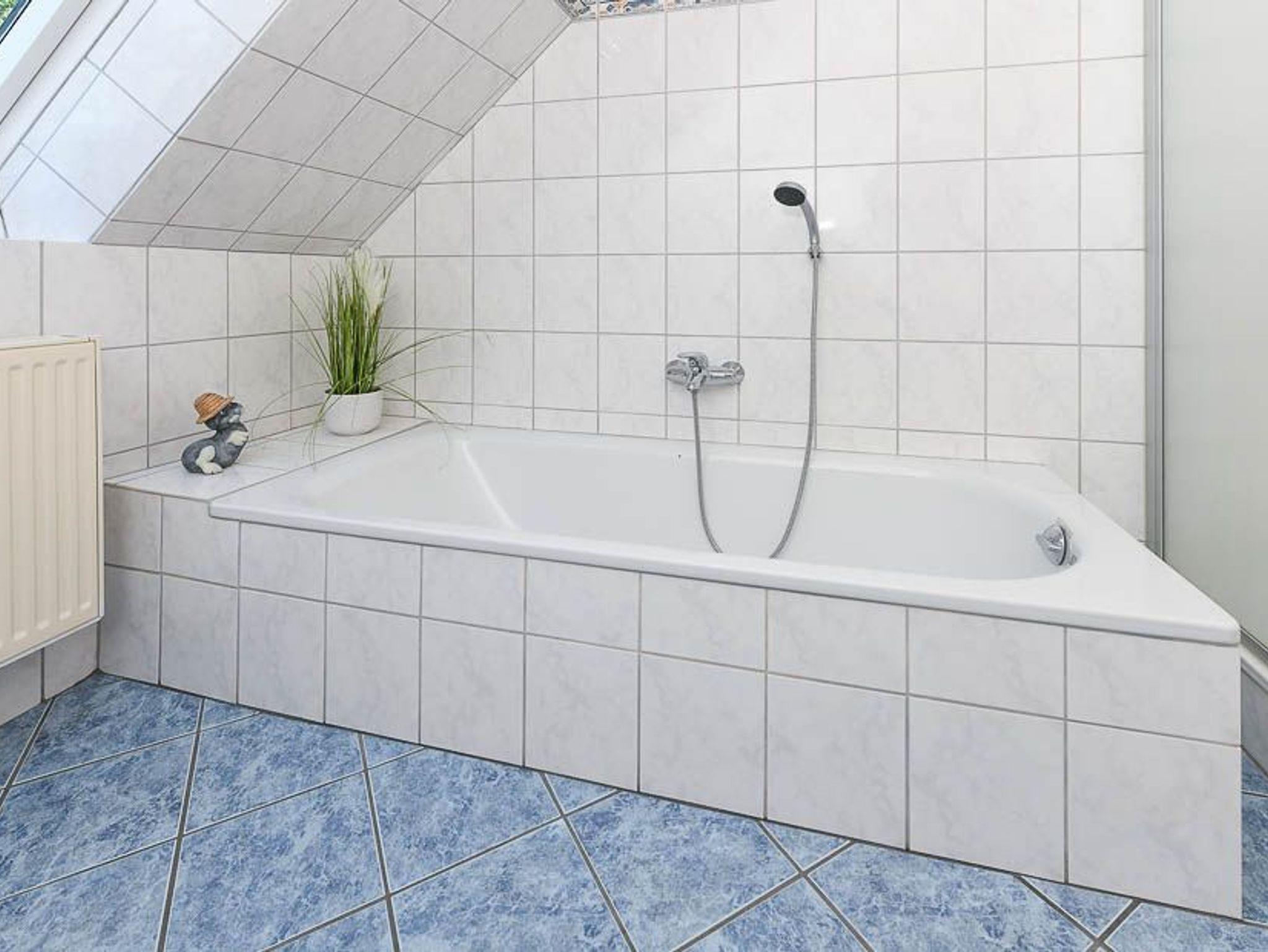 Größe ca. 90 Quadratmeter, Wohnzimmer, Küche, Schlafzimmer, zweites separates Schlafzimmer/Kinderzimmer, Badezimmer mit Badewanne, Dusche und Waschtisch, separates WC mit Waschtisch, Obergeschoss, optimal für 2 bis 4 Personen.