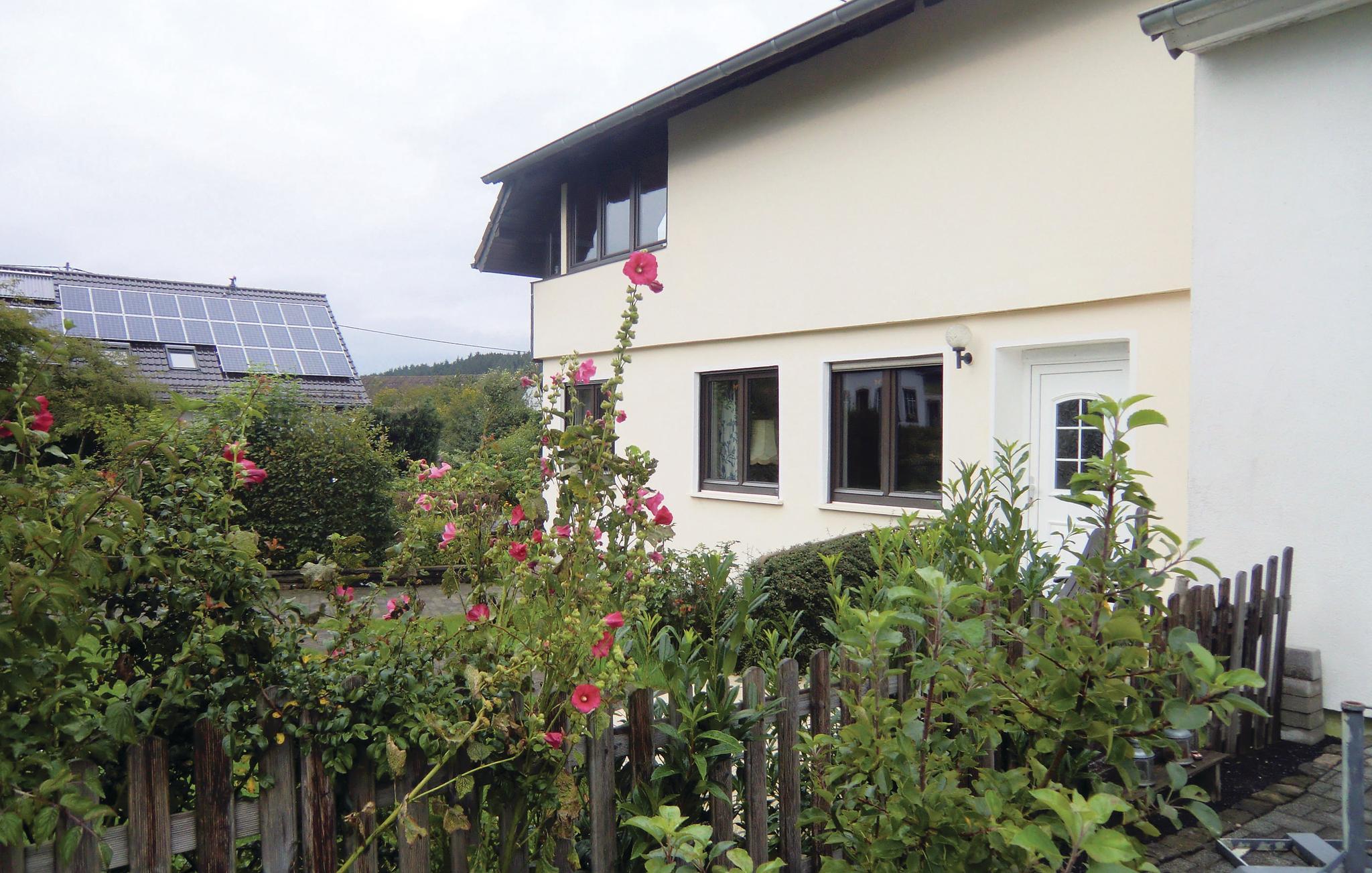 Nyd jeres ro og privatsfære i denne fremragende ferielejlighed i Duppach (Weiermühle). Boligen har egen indgang og have. Over få trin kommer I til gangen. Den hyggelige stue med pejs, det moderne køkken, de to soveværelser og badeværelset ligger i stueplan. På den overdækkede terrasse kan I nyde jeres kaffe til udsigten over den dejlige have. Til glæde for de mindste gæster er der sandkasse, gokart, legehus og gynge til rådighed. Den rolige landsby Duppach ligger omgivet af et dejligt område, der prydes af mange nåle- og løvtræer samt fremragende muligheder for at cykle og vandre. Der er heller ikke langt til vildtparker og interessante geologiske seværdigheder som Birresborner Eishöhlen, Trockenmaar og en koldvands-geysir (Wallender Born) i Wallenborn. I kan selv hente friskt vand fra mineralkilden Duppacher Drees. Der er 10 km til Gerolstein med indkøbsmuligheder og togstation.