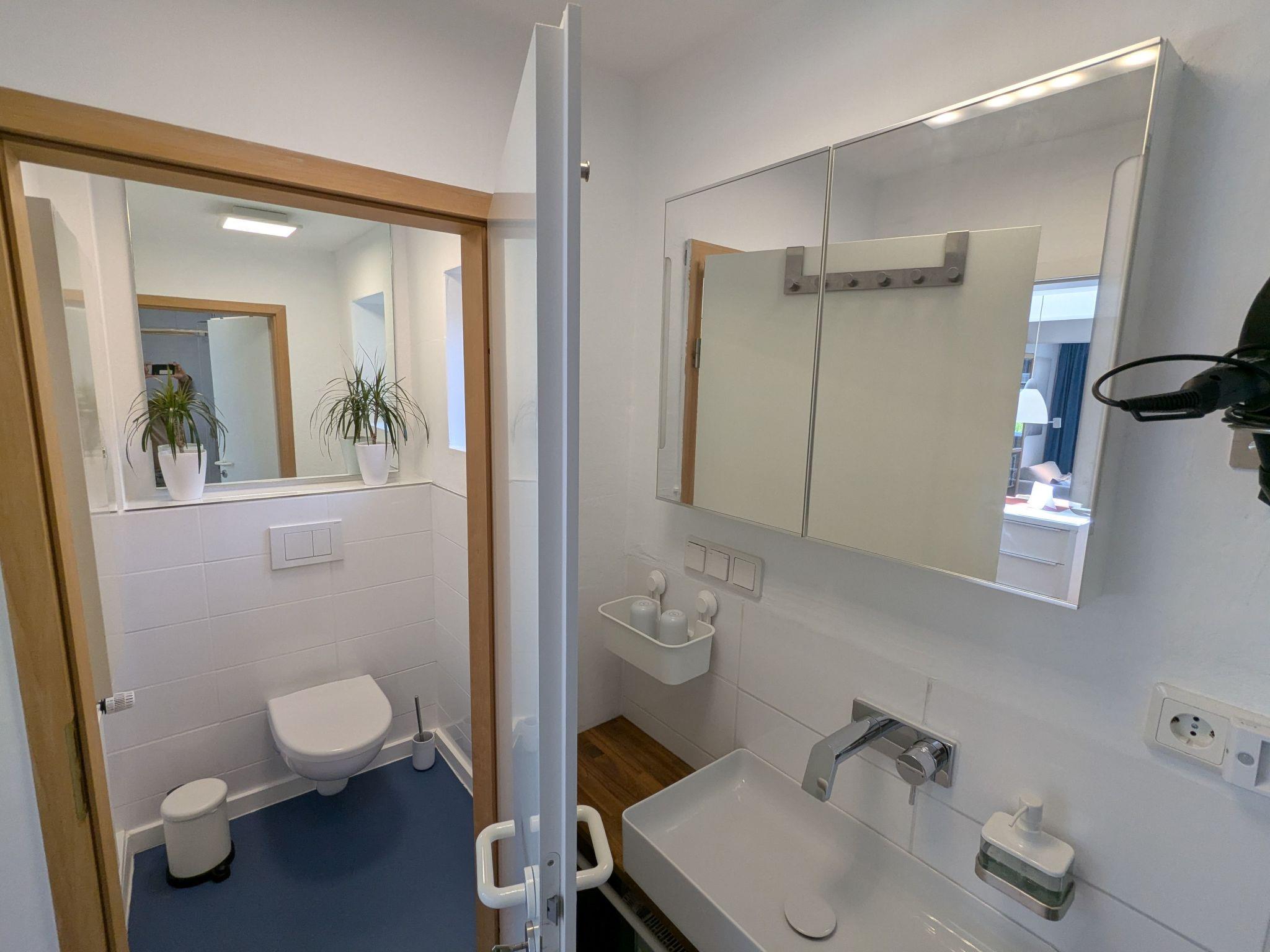 The holiday flat is in an ideal location with easy access to local amenities. The nearest town centre is just 80 metres away and there is a grocery store 1800 metres away for larger purchases. For nature lovers and water sports enthusiasts, there is both a beach and a lake just 2100 metres away, offering nearby leisure activities.