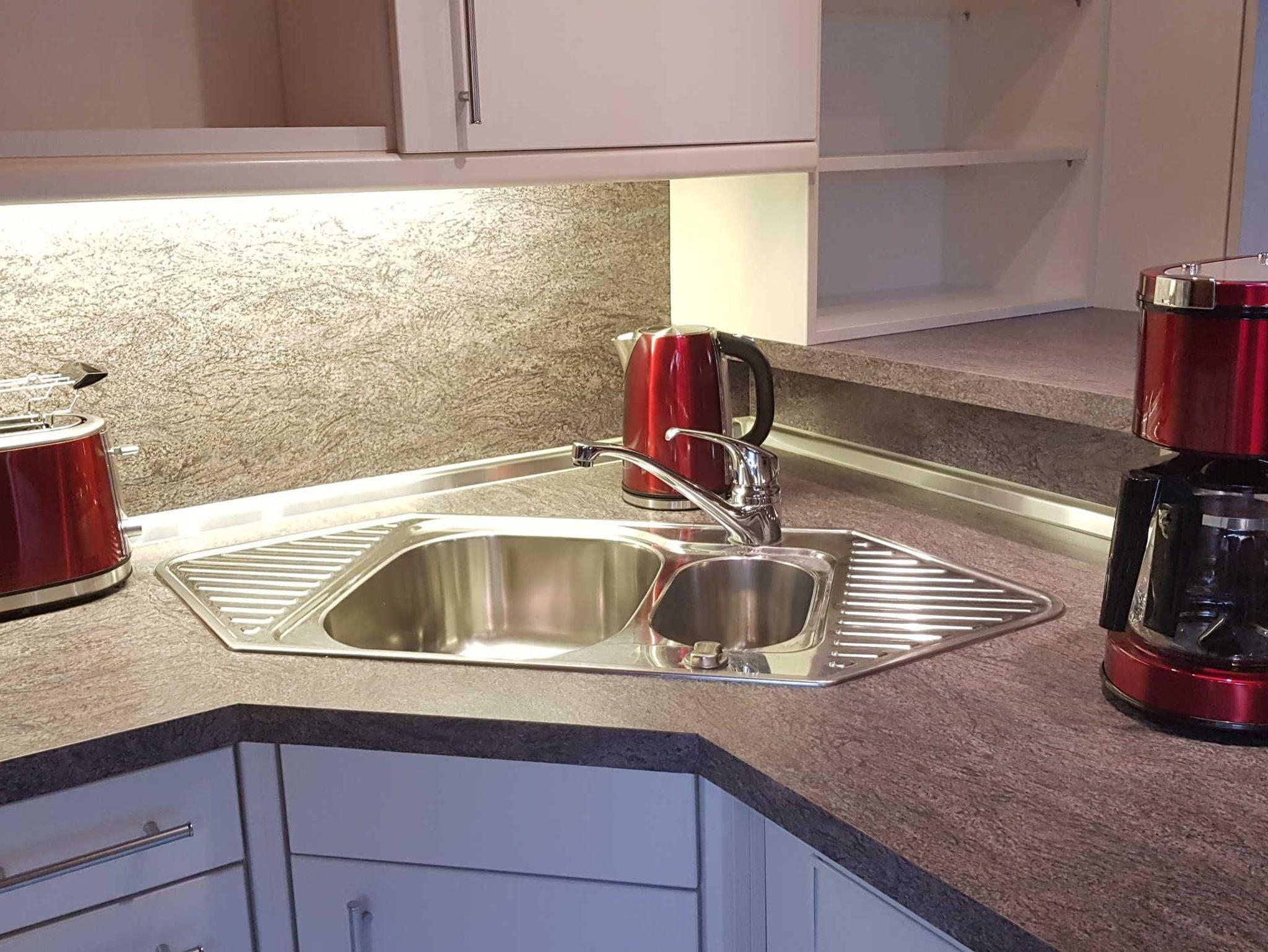 Sie ist nahezu komplett eingerichtet inkl. Fön, Bügeleisen und Mikrowelle, Kaffee- und Nespressomaschine und Kinderhochstuhl!