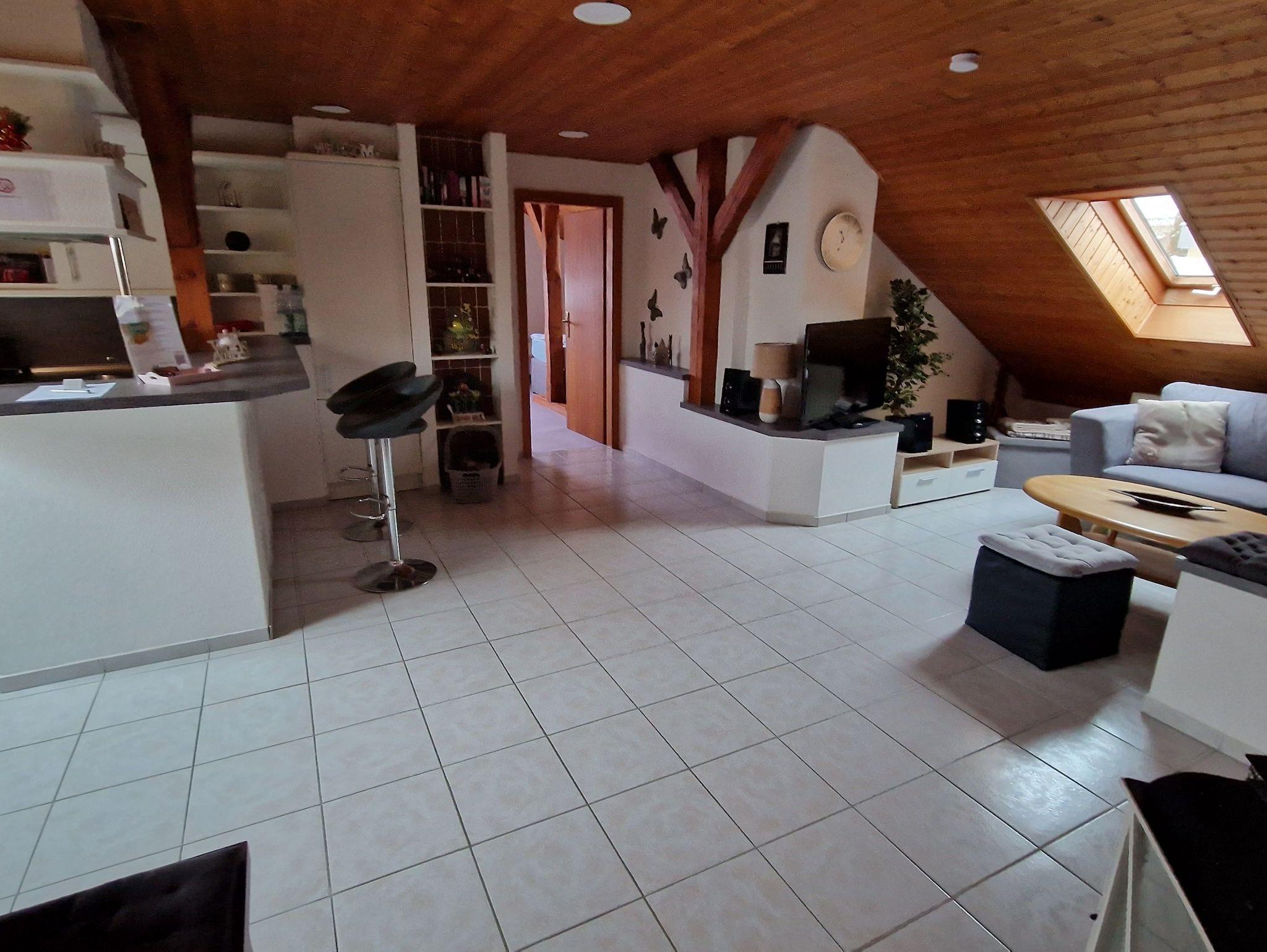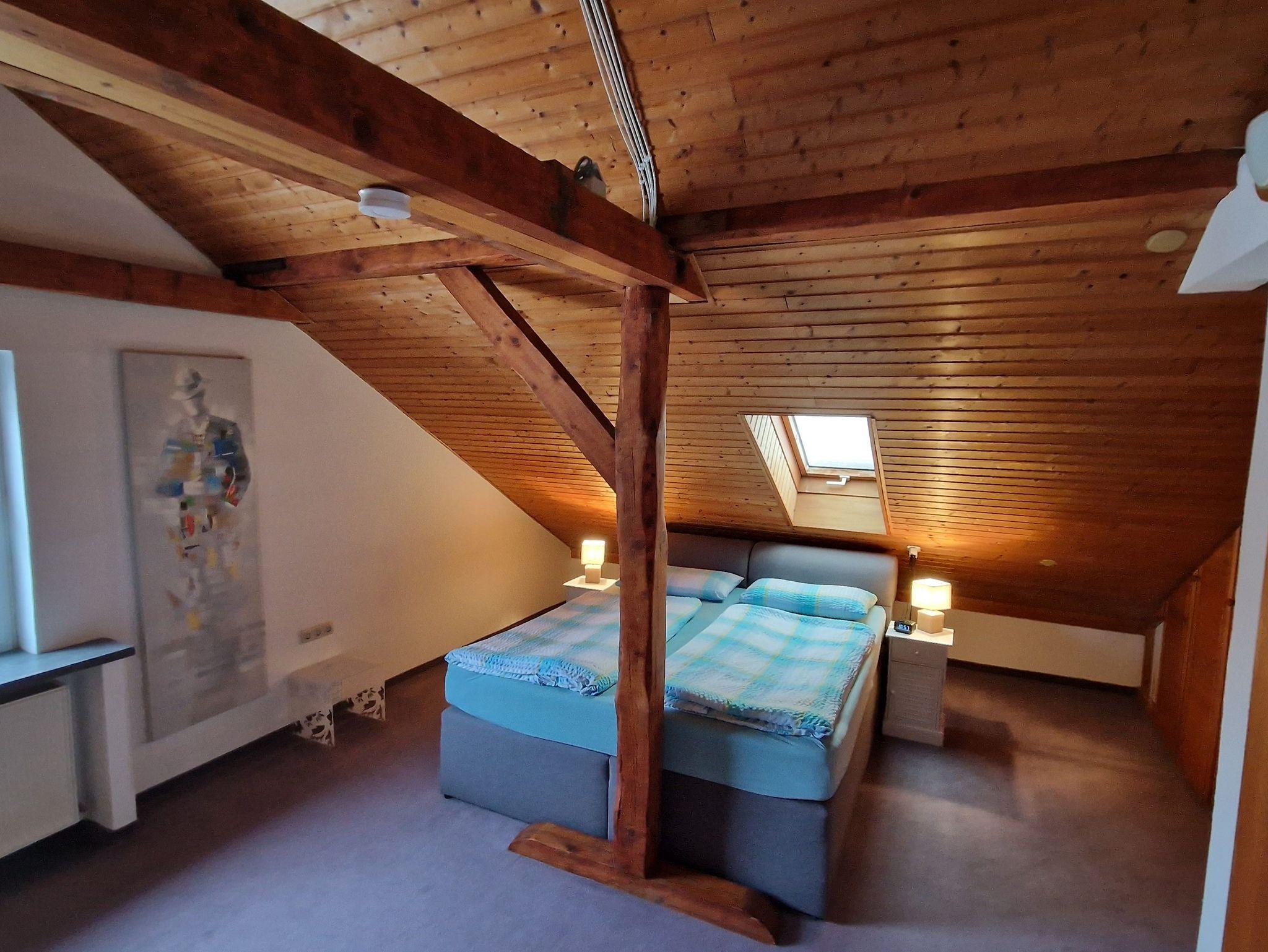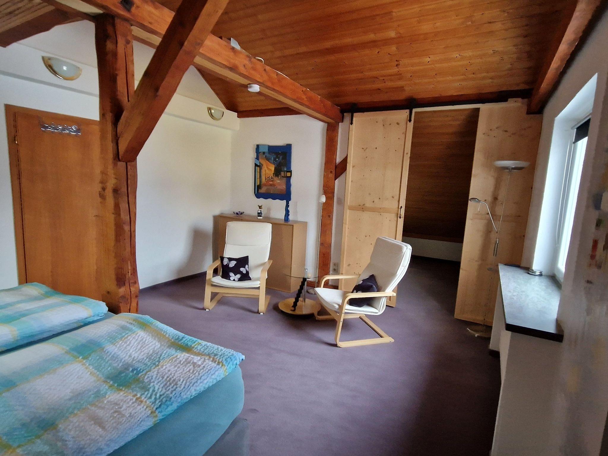 Die große und komfortable Mansarden-Ferienwohnung befindet sich im 2. Obergeschoss (Treppen) des Hauses und hat ca. 70 qm.