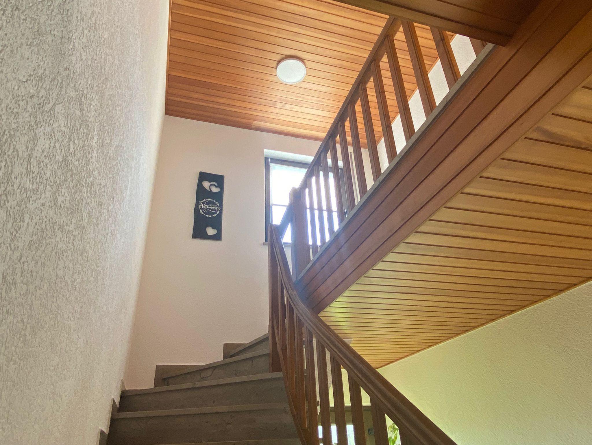 Die Ferienwohnung befindet sich im ersten Stock und ist über eine breite Treppe zu erreichen.