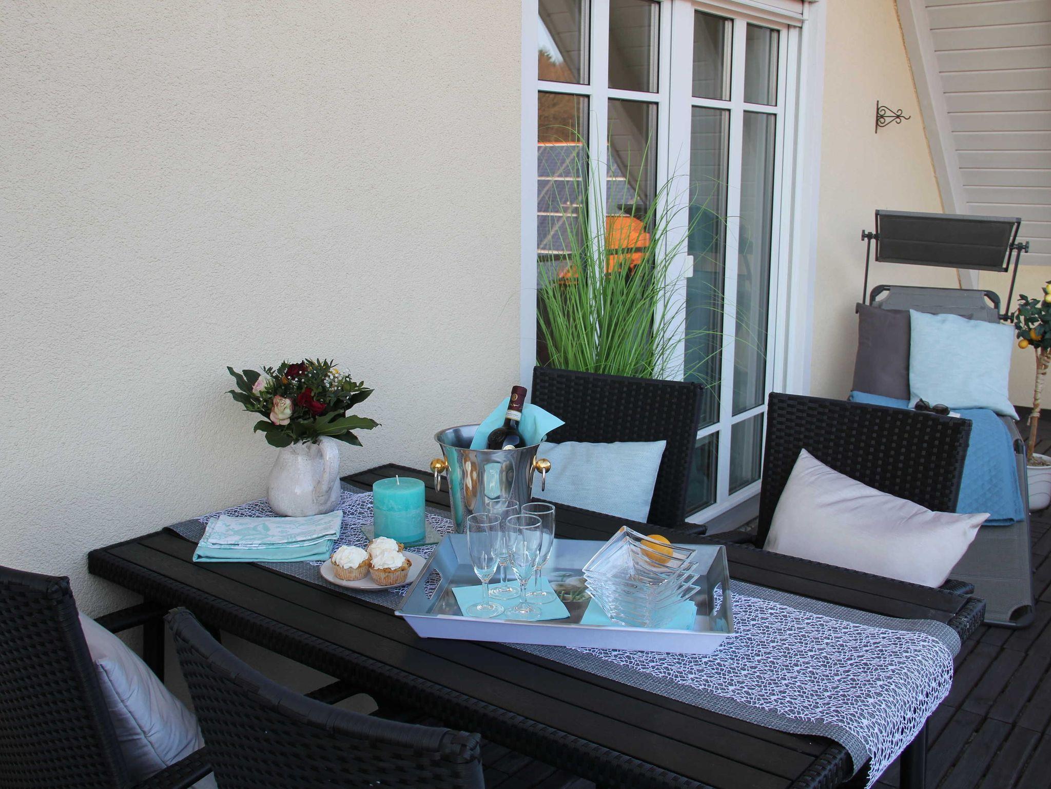 Der große überdachte Süd-Ost-Balkon lädt zum gemütlichen Frühstücken in sonniger Atmosphäre oder zum entspannten Ausklingen des Tages ein.