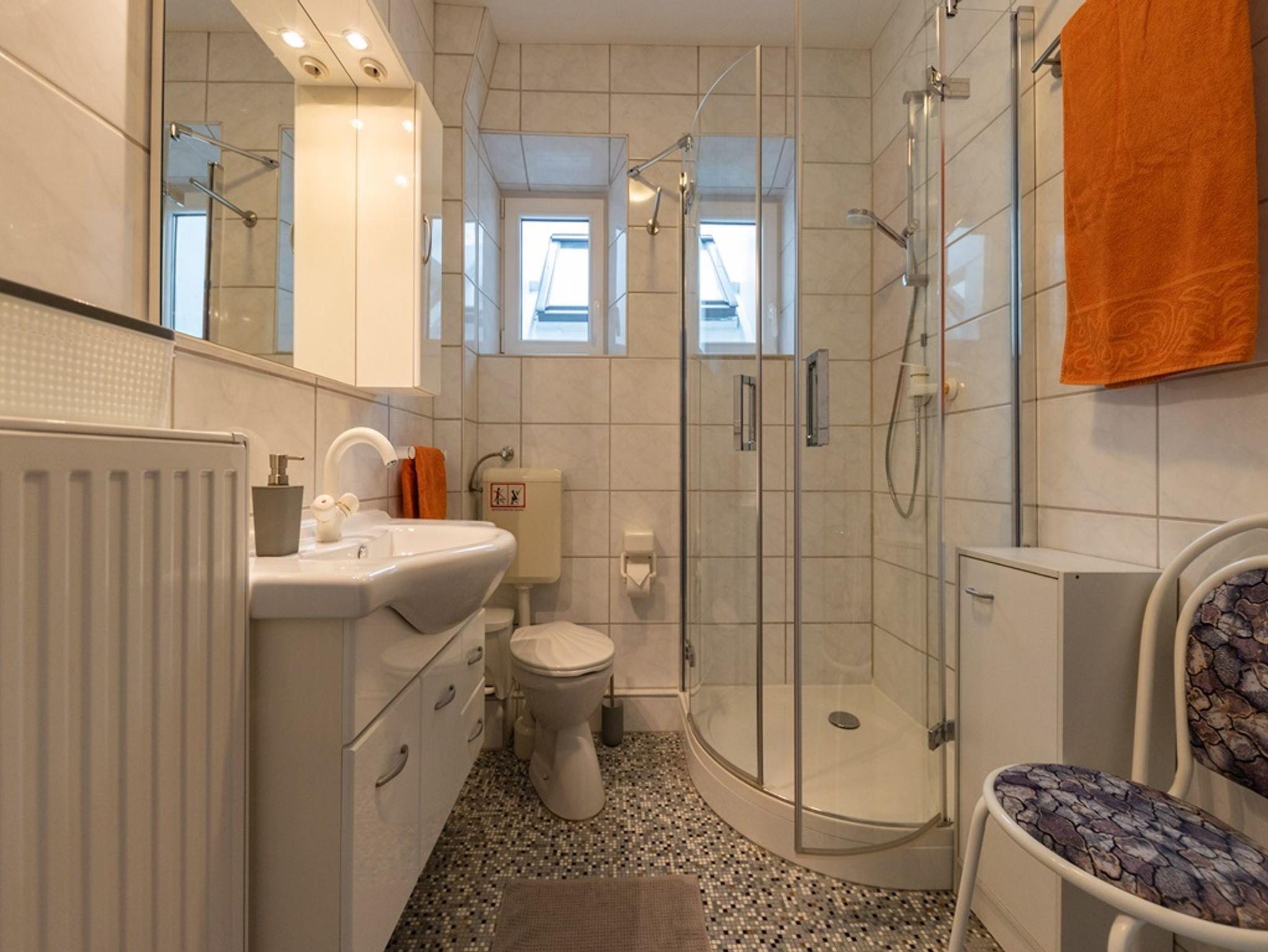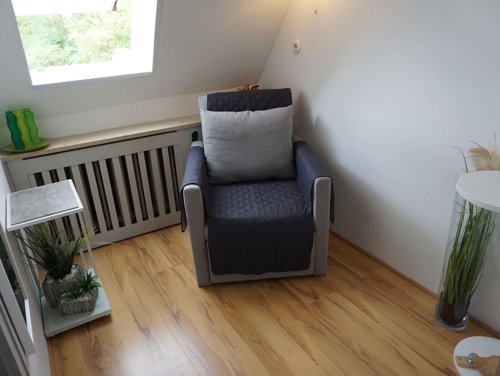Das erste Schlafzimmer (1. Etage) ist mit einem Doppelbett ausgestattet. Im zweiten Schlafzimmer (1. Etage) gibt es zusätzlich zu einem Doppelbett einen kleinen nach Süden gerichteten Balkon, von dem Sie die Aussicht in das Baunachtal genießen können. Zum Lesen und Entspannen ist noch ein zweites kleines Wohnzimmer für Sie da. Das zweite Bad (1. Stock) mit Dusche und WC ist ebenfalls liebevoll mit Fön und Handtücher für Sie vorbereitet.