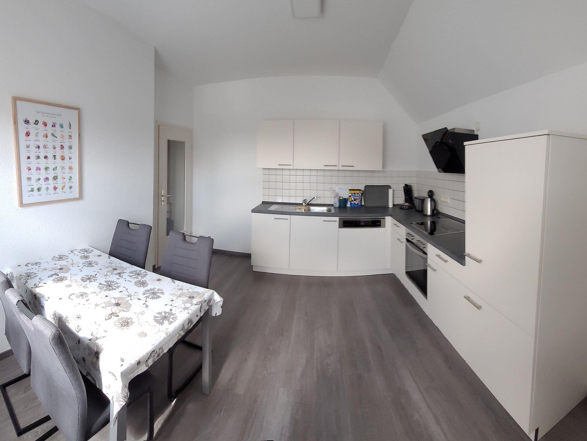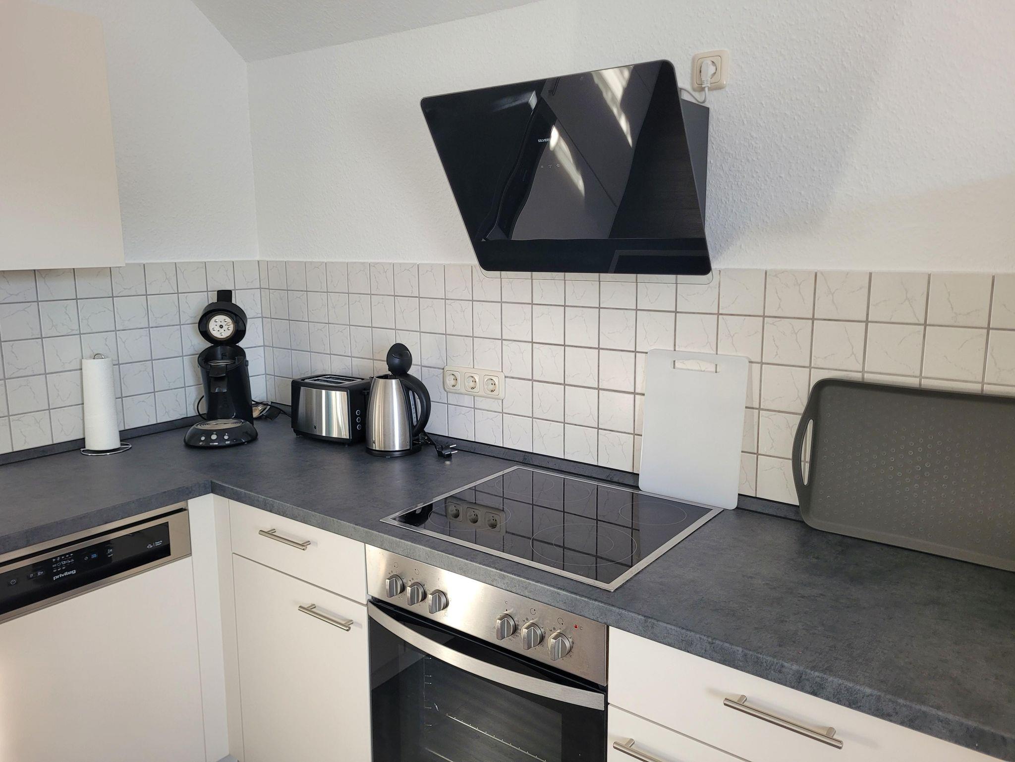 Die modern eingerichtete Ferienwohnung verfügt über ein Wohnzimmer, ein Schlafzimmer mit einem Doppelbett (180 x 200 cm), eine umfangreich ausgestattete Einbauküche und ein Badezimmer mit Badewanne und integrierter Dusche.