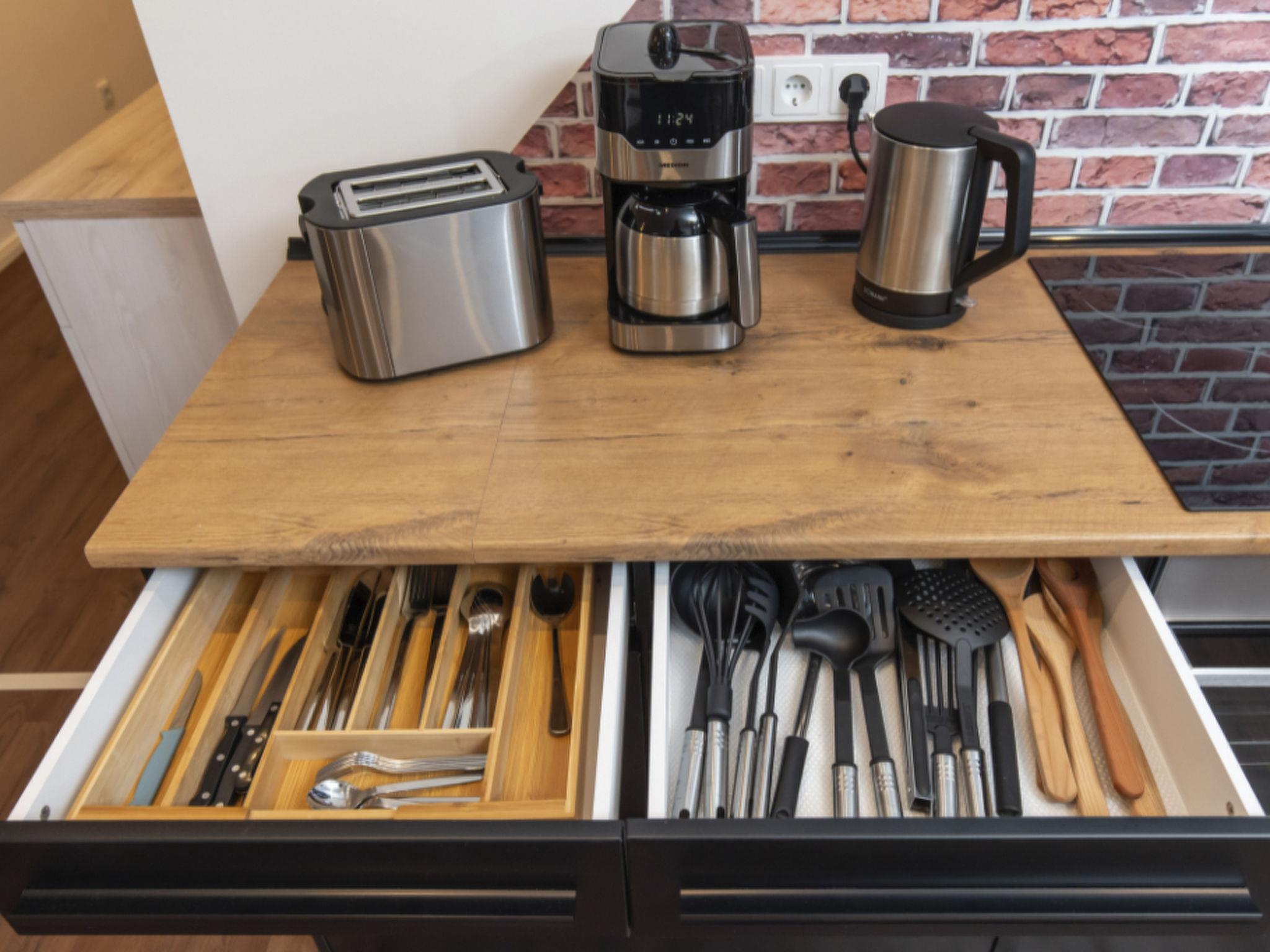 Refrigerator, oven, dishwasher, ceramic hob with 4 hobs, coffee machine with filter insert,