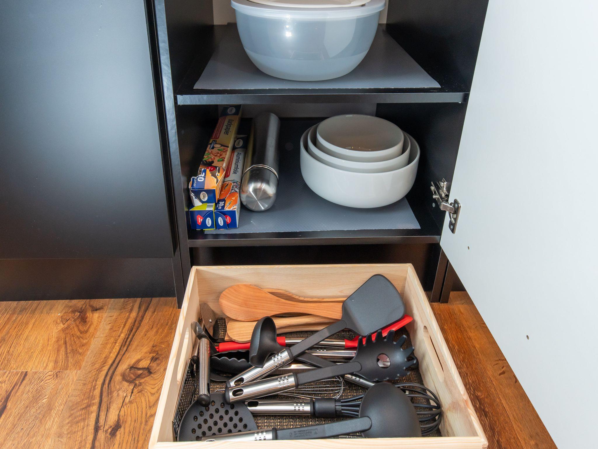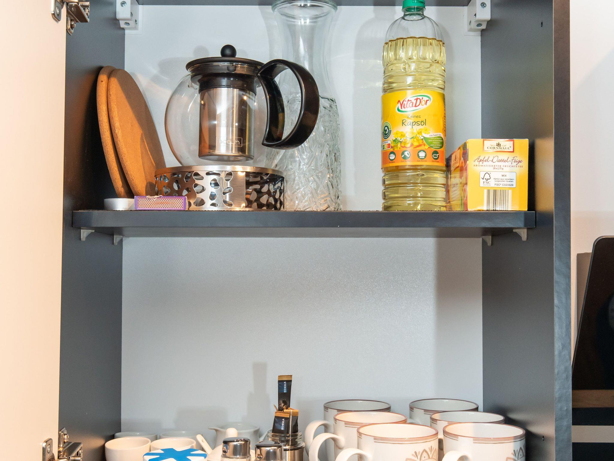 Voll ausgestattete Küche mit Kühlschrank mit Gefrierfach, Spülmaschine, 4 Feld Ceranfeld, Backofen, Kaffeemaschine,