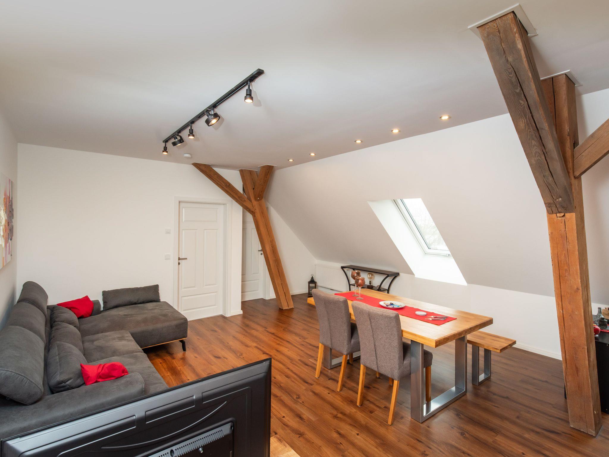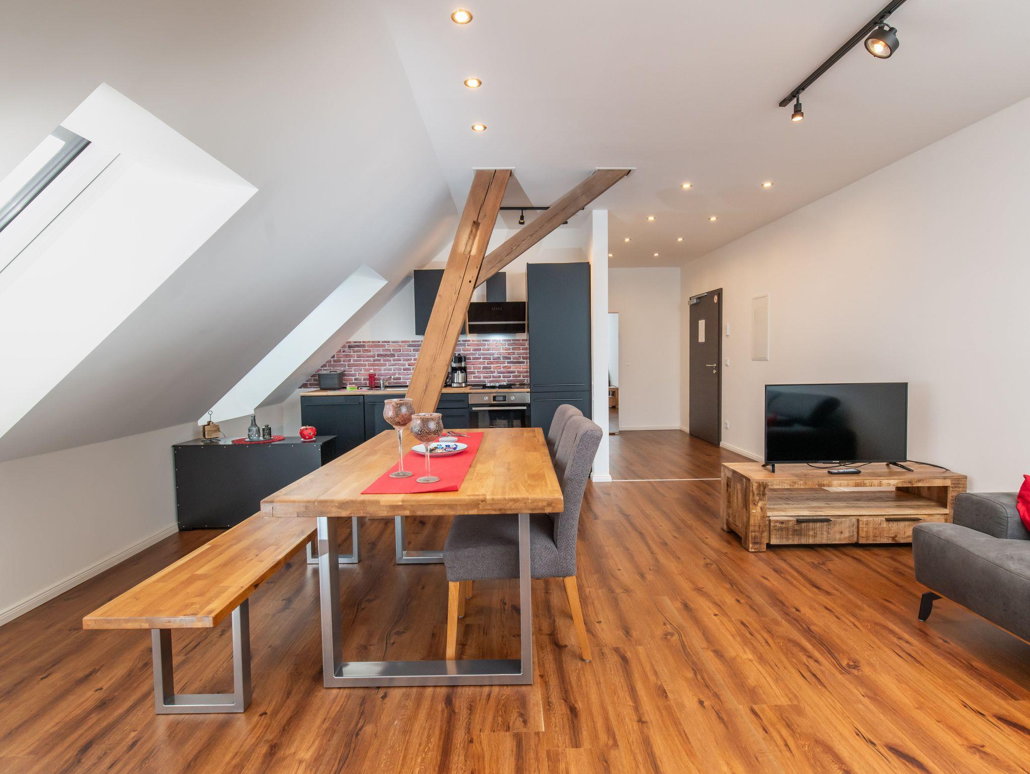 Beides haben wir harmonisch in die Appartements integrieren können, so das aus diesem Umstand nun stilvolle Wohnelemente geworden ist.