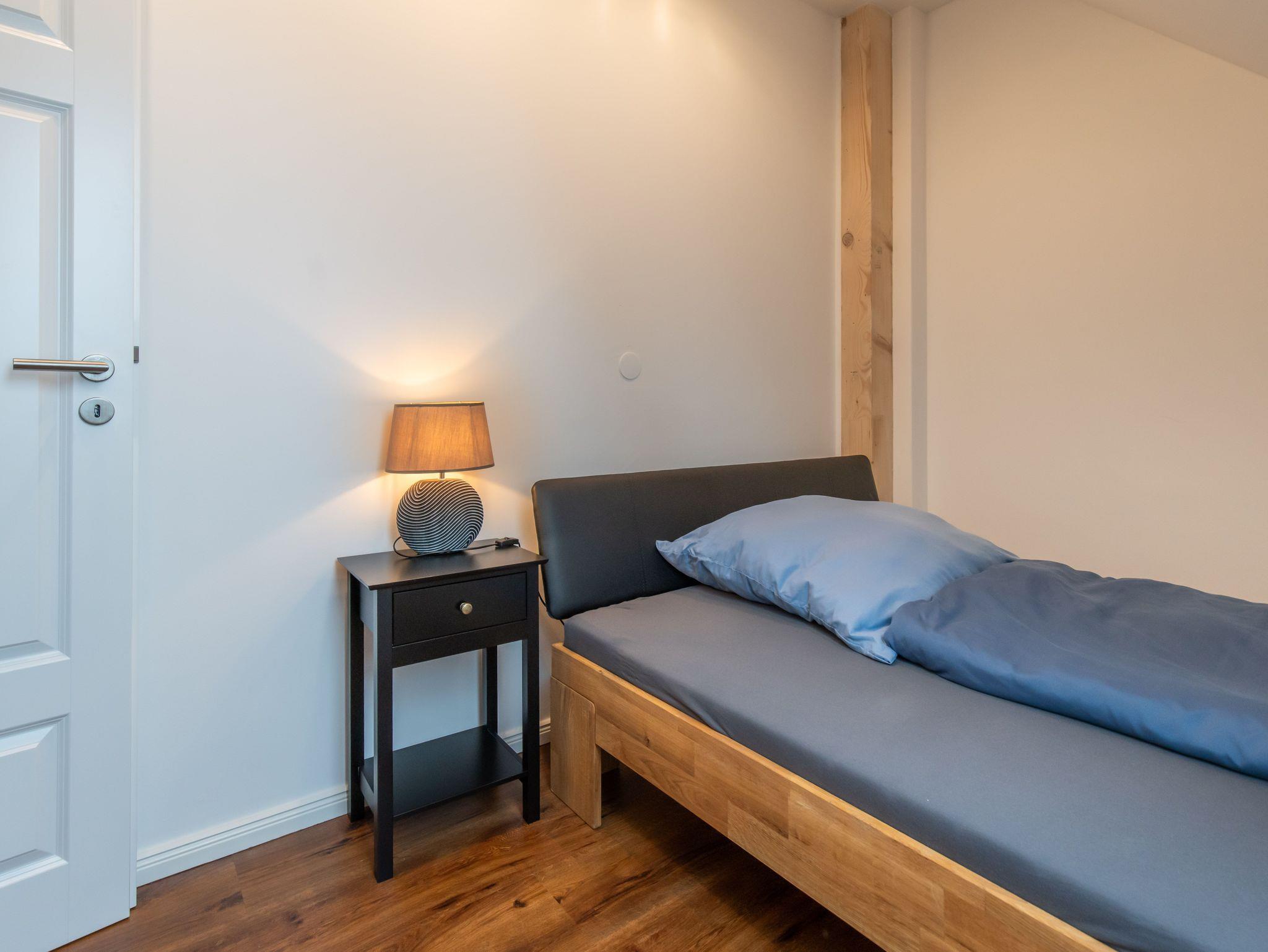 Zweites Schlafzimmer mit Queensizebett 1,40m x 2,00m mit Steckdose und Licht am Bett sowie