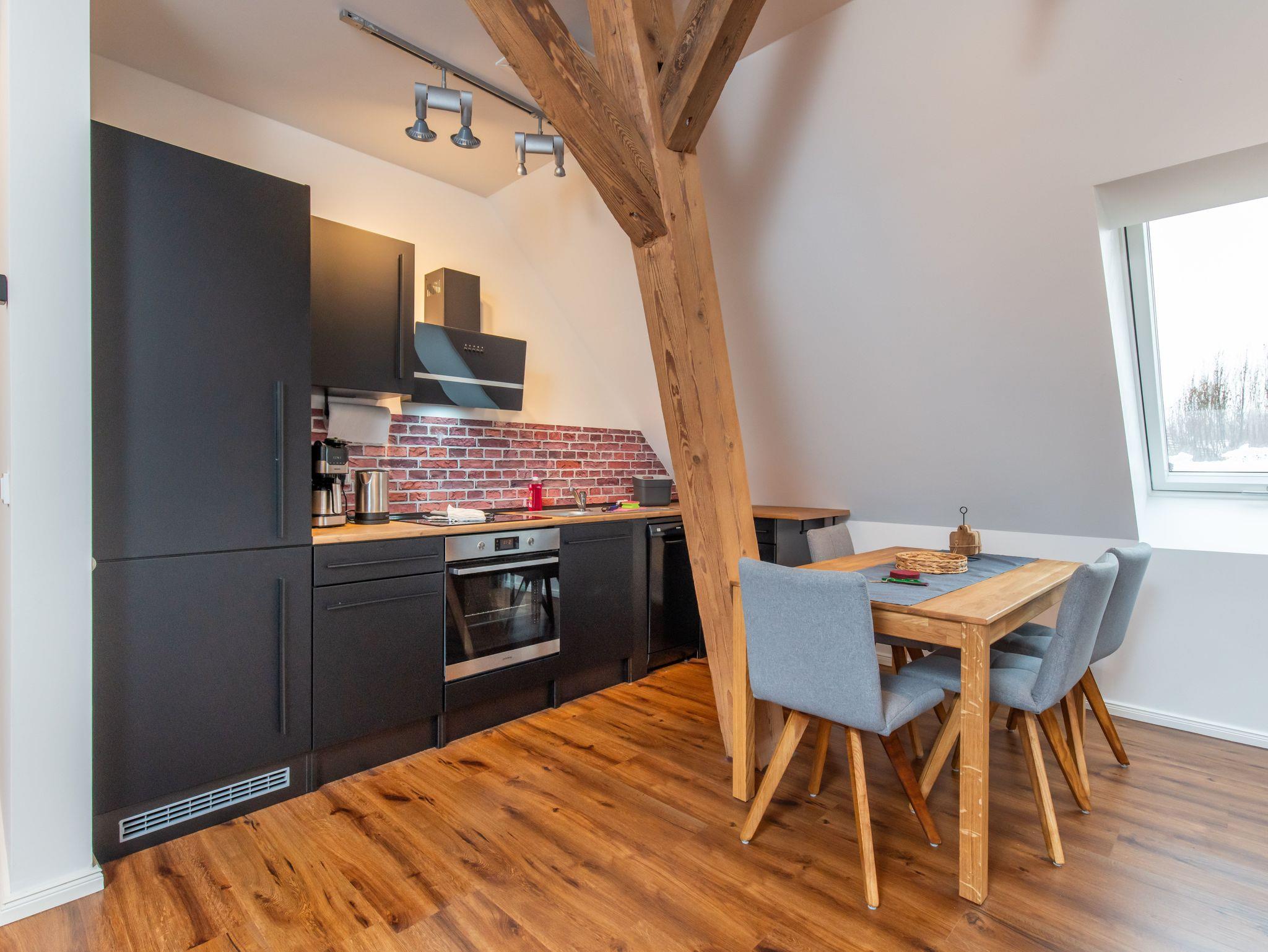 Beides haben wir harmonisch in die Appartements integrieren können, so das aus diesem Umstand nun stilvolle Wohnelemente geworden ist.