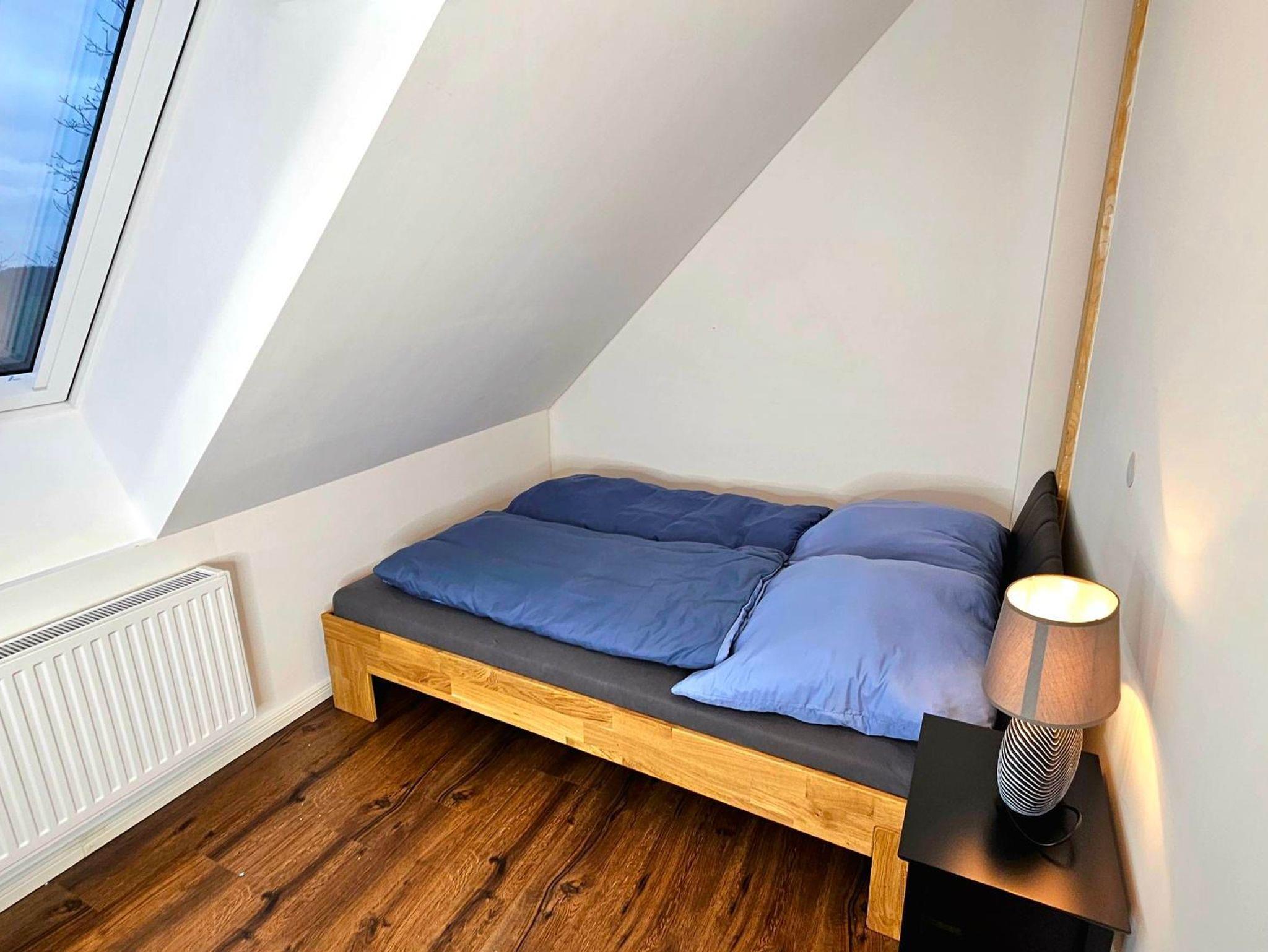 Zweites Schlafzimmer mit Queensizebett 1,40m x 2,00m mit Steckdose und Licht am Bett sowie einer Kommode.