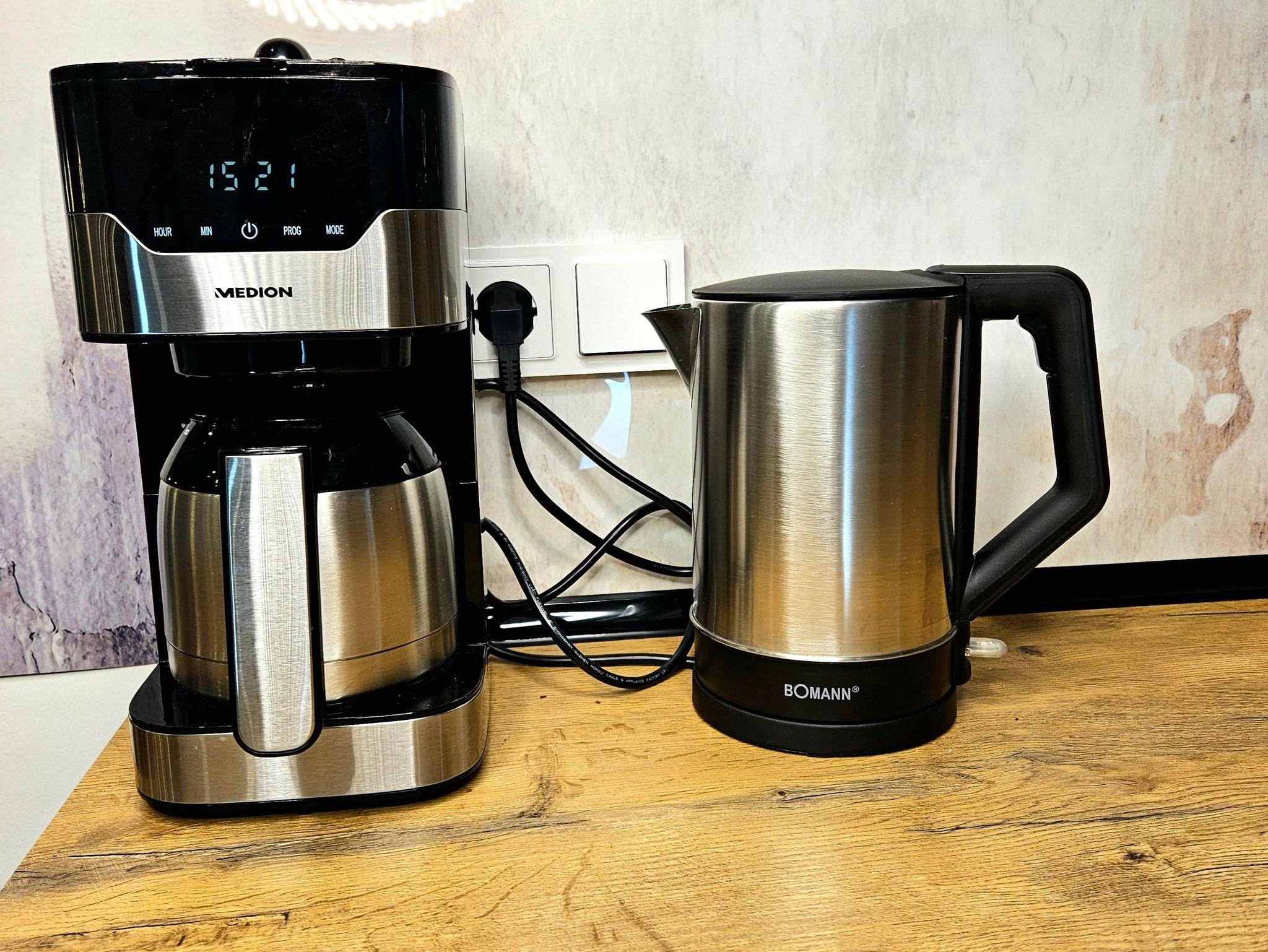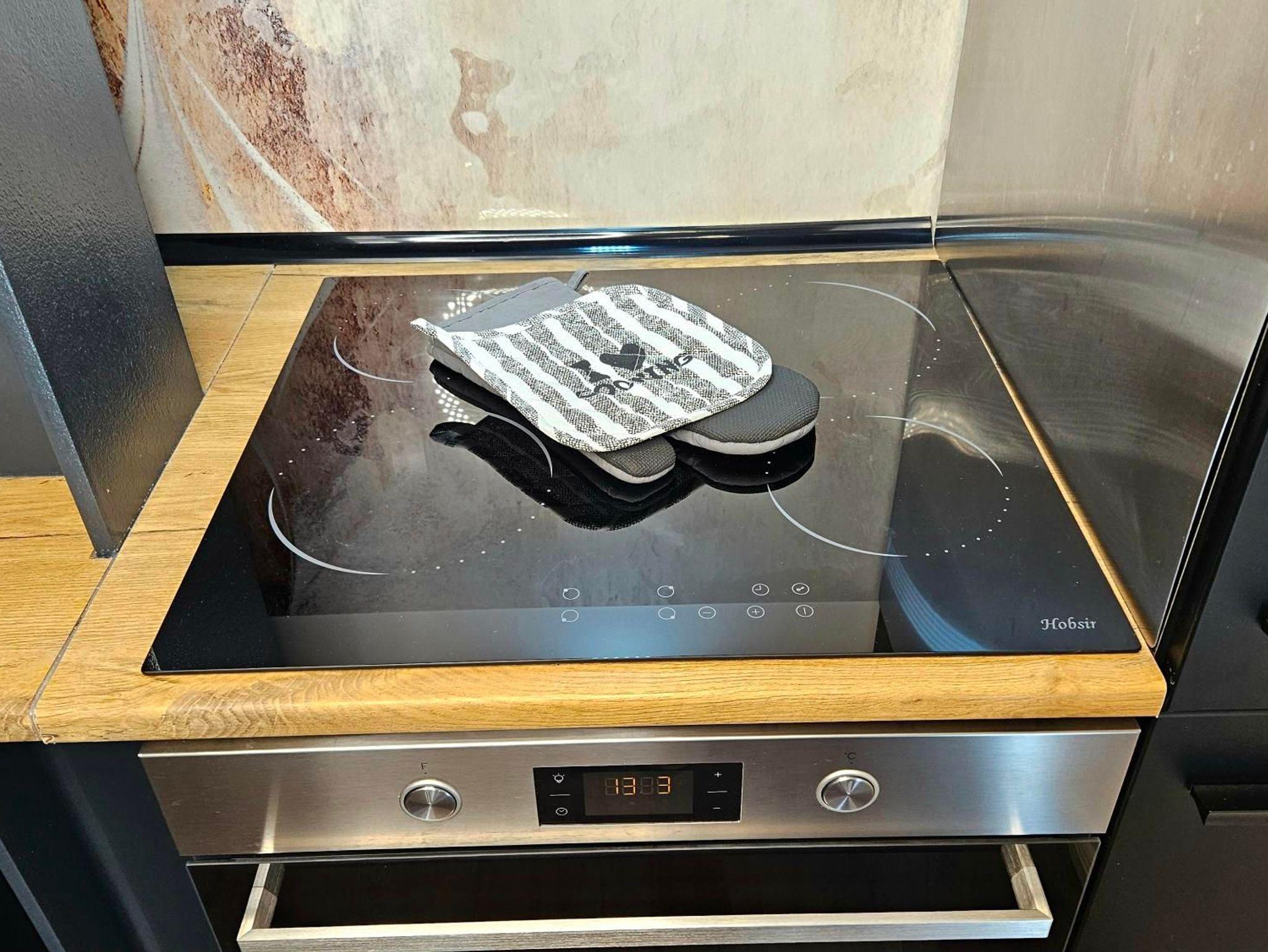 Voll ausgestattete Küche mit Kühlschrank mit Gefrierfach, Spülmaschine, 4 Feld Ceranfeld, Backofen, Kaffeemaschine,