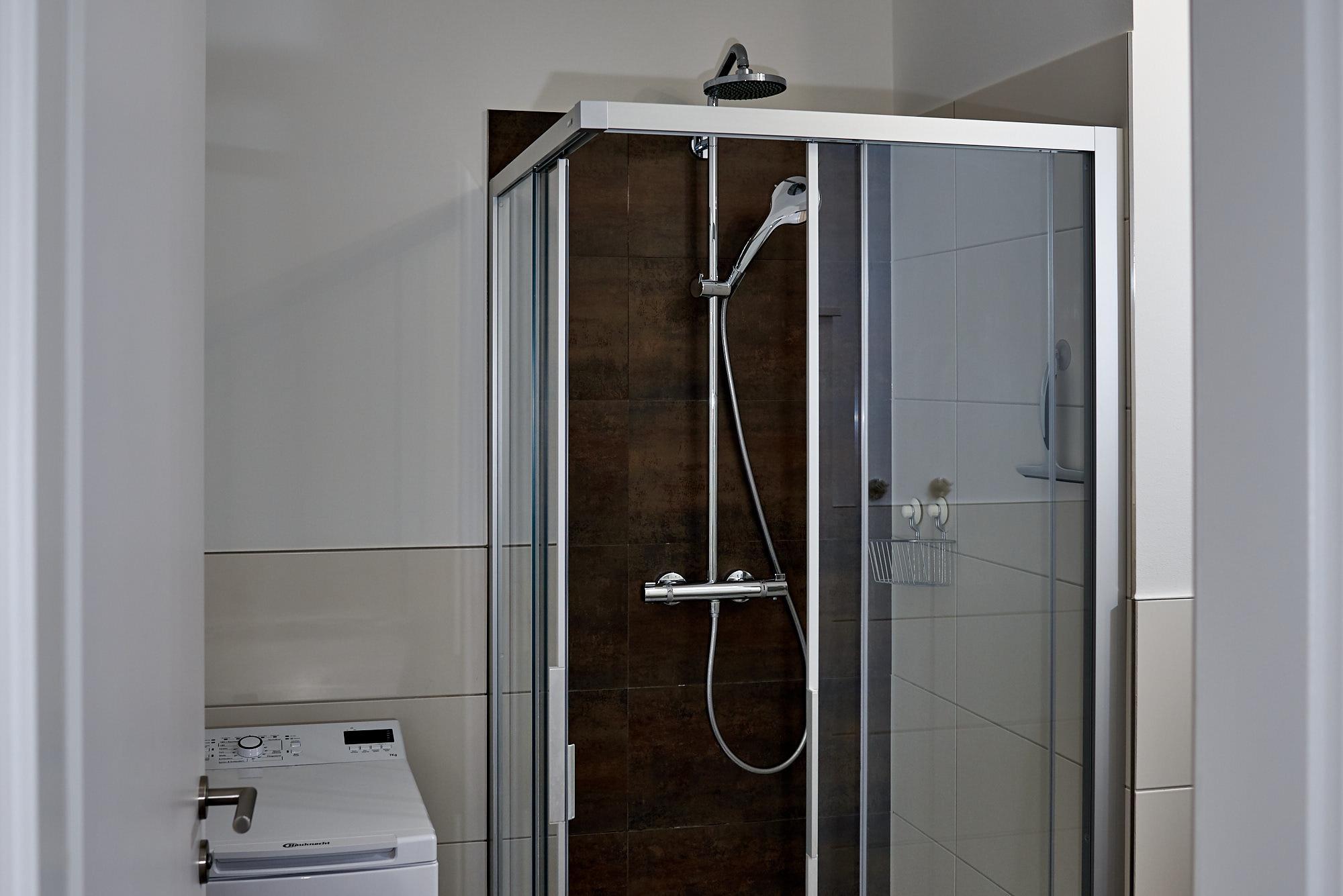 Ein Schlafzimmer wurde mit einem modernen Doppelbett (180x200) und einem Kleiderschrank ausgestattet. Im zweiten Schlafzimmer befinden sich ein zwei Einzelbetten (90x200) und ein Kleiderschrank. Die Schlafzimmer bieten somit die gewünschte Erholung! Die Dusche im Badezimmer ist ebenerdig.