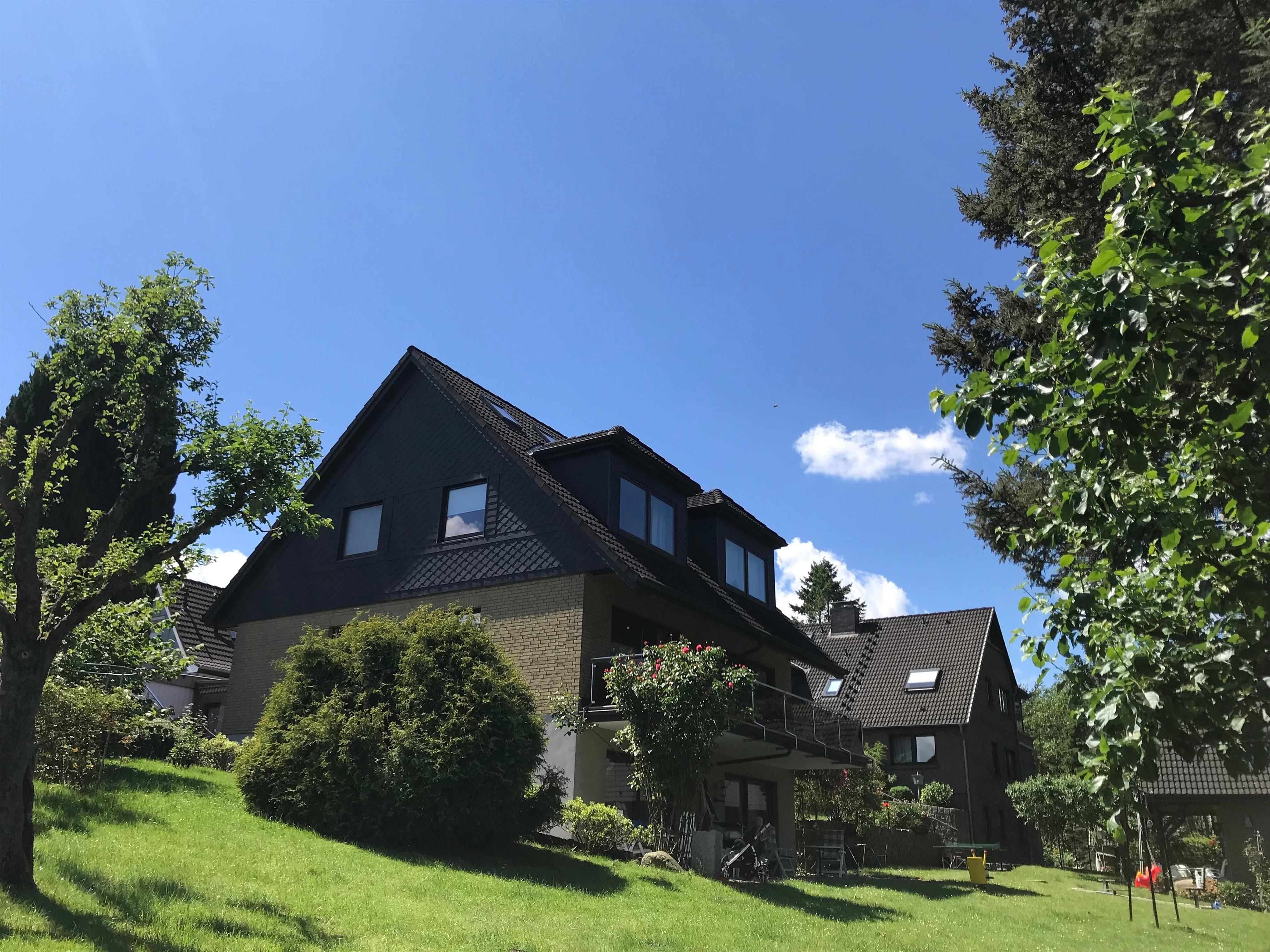 Unser Grundstück grenzt direkt an Wald- und Wiesenflächen, durch die der Lachsenbach fließt - wir blicken in die Natur, oft kommen uns Rehe und Eichhörnchen in unserem Garten besuchen.