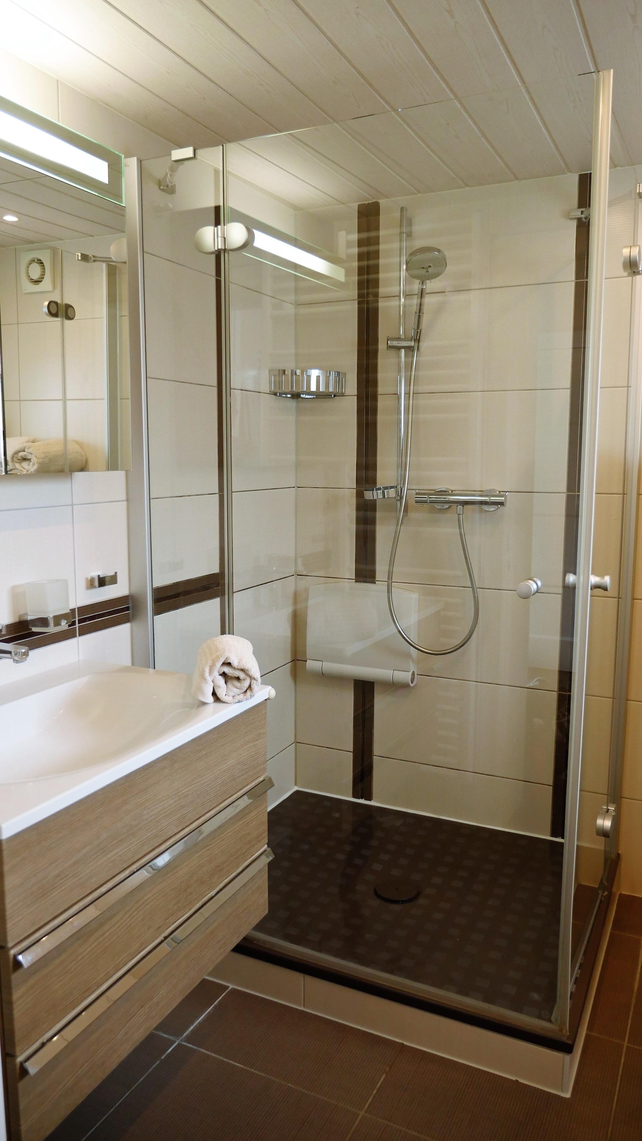 - WC und großzügige Ganzglasdusche (110x90cm) mit Raindance