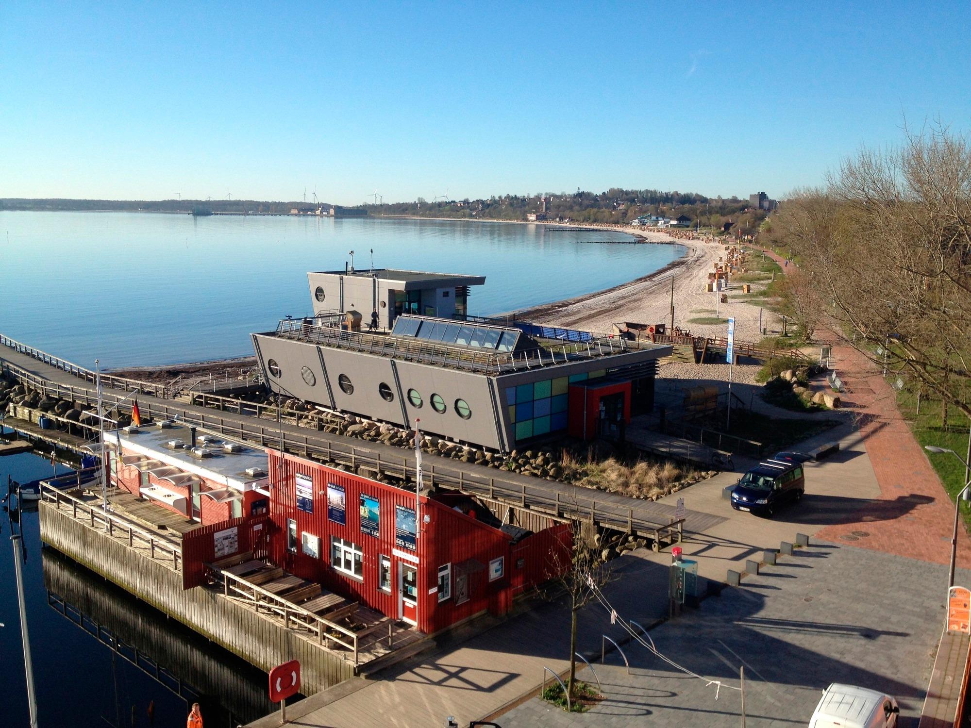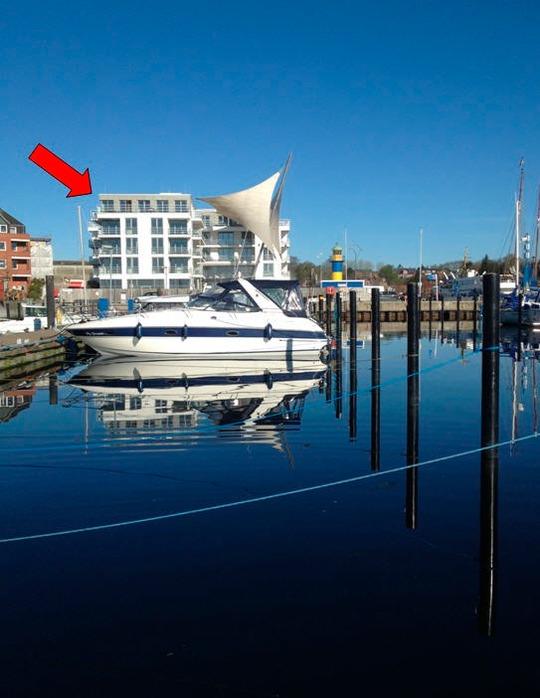 Mit 3 großen Balkonen können Sie im 4. Stock den Ausblick in fast alle Himmelsrichtungen genießen: Nach Nordwesten zum Hafen, nach Norden zum schönen Ortsteil Borby, nach Osten zum Segelhafen und über die Eckernförder Bucht, direkt unter Ihnen Liegeplätze diverser Boote, nach Süden den Strand entlang oder auch nach Südwesten über die Innenstadt.