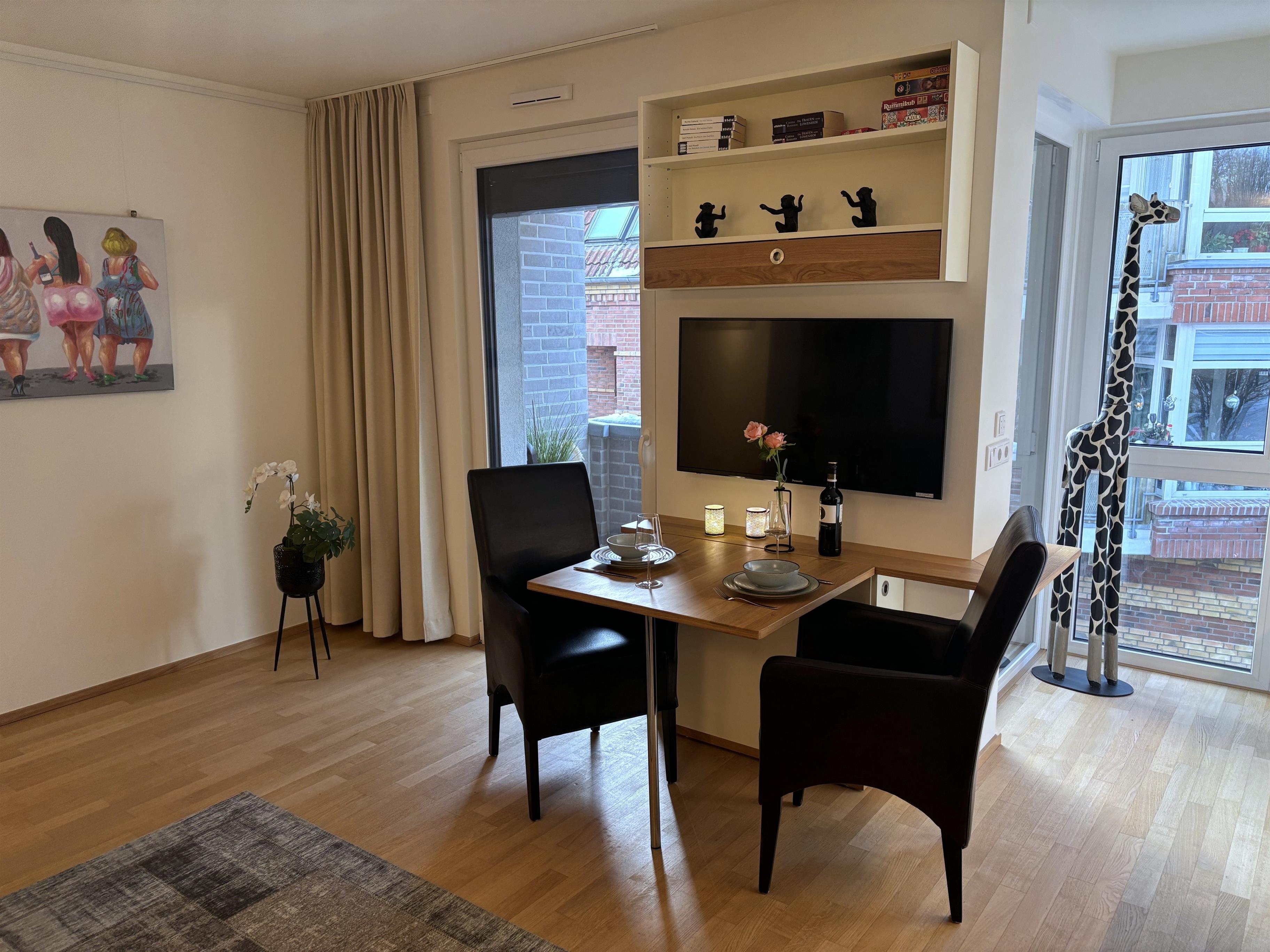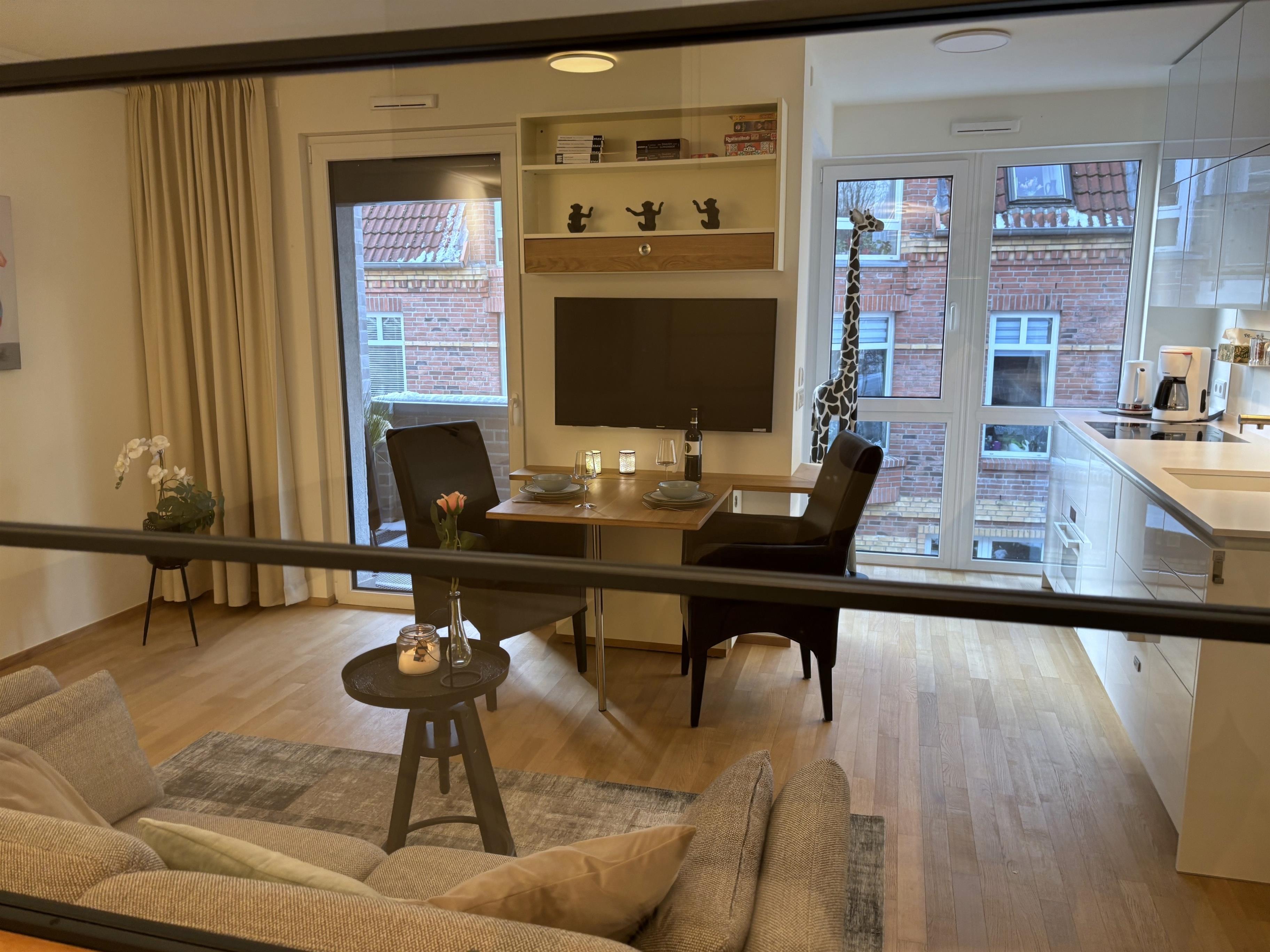 Diese schöne, extravagant eingerichtete Wohnung mit ca. 49 m² Wohnfläche hat einen offen gestalteten Wohnbereich mit einer Luxusküche sowie ein angrenzendes, kleines Schlafzimmer. Das Duschbad ist sehr hochwertig ausgestattet. Ein Hauswirtschaftsraum bietet einen Wasch-/Trockner, ein Bügelbrett und Bügeleisen sowie viele Abstellmöglichkeiten. Der Balkon liegt in Westlage und bietet Ihnen nach einem schönen Strand- oder Shoppingtag viel Erholung.