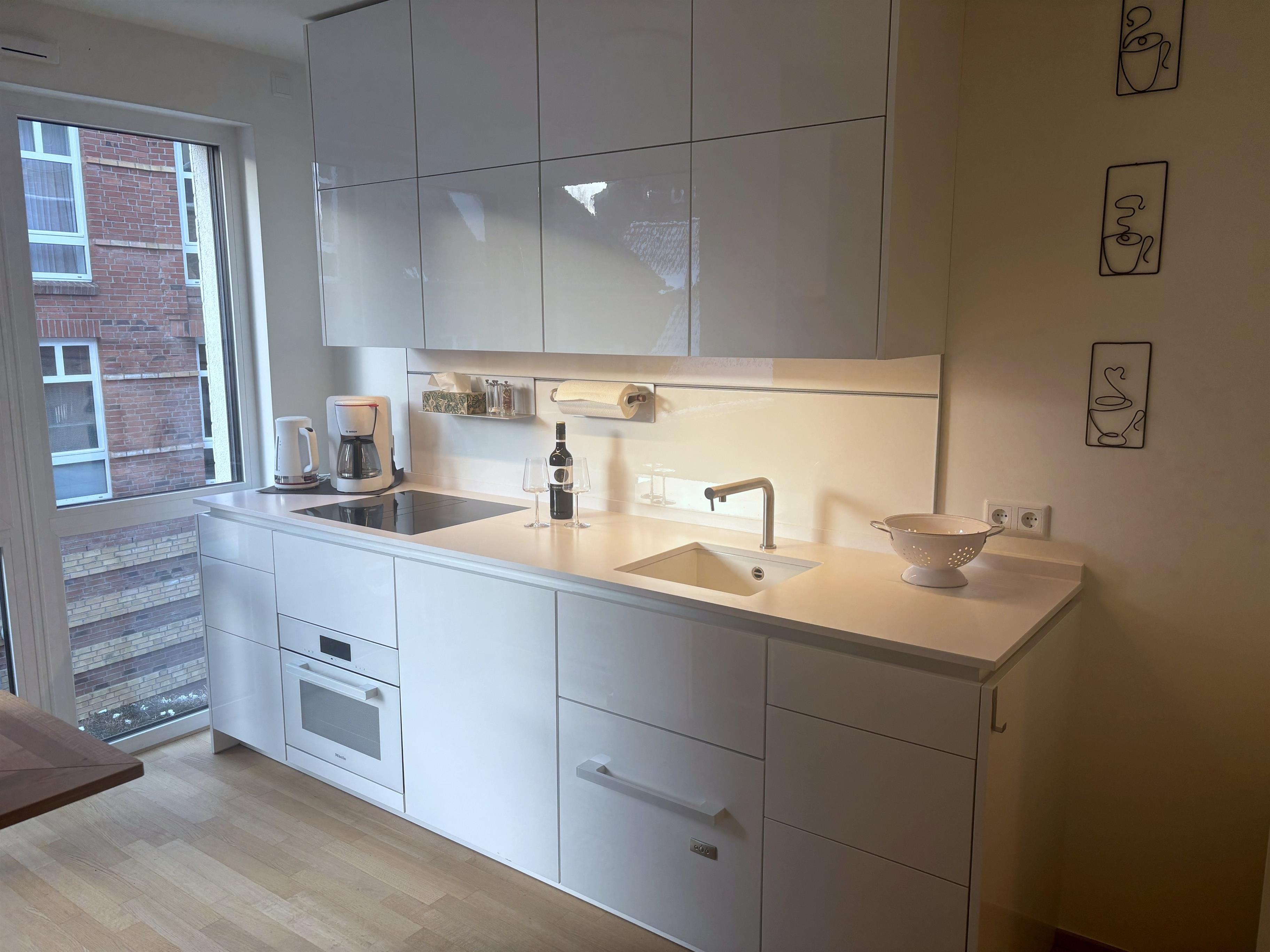 - Hochwertige und voll ausgestattete Küche incl. Induktionsherd, Kühlschrank, Gefrierwürfel, Kaffeemaschine, Backofen und Grill mit integriertem Dampfgarer
