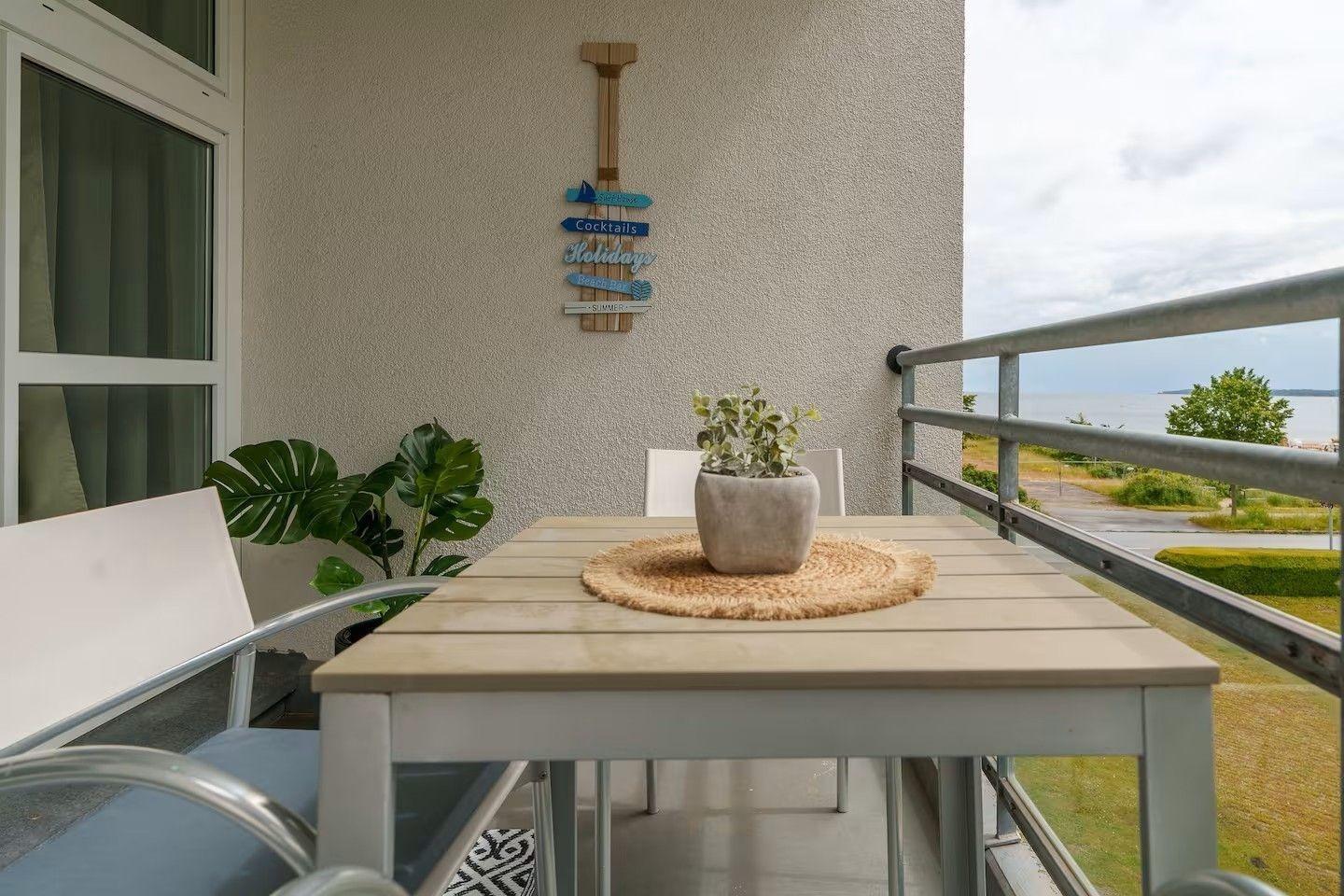 BALKON: Mit Ihrem Lieblingsgetränk genießen Sie den direktem Meerblick vom Südost-Balkon. Dieser lädt Sie zum Entspannen und Erholen an der frischen Seeluft ein.
