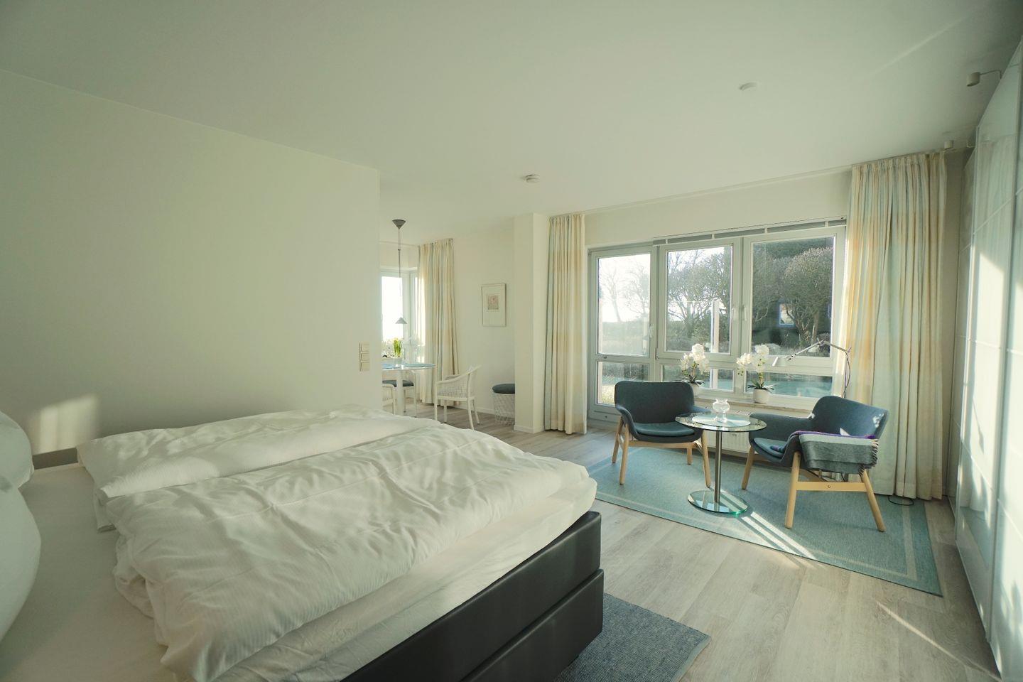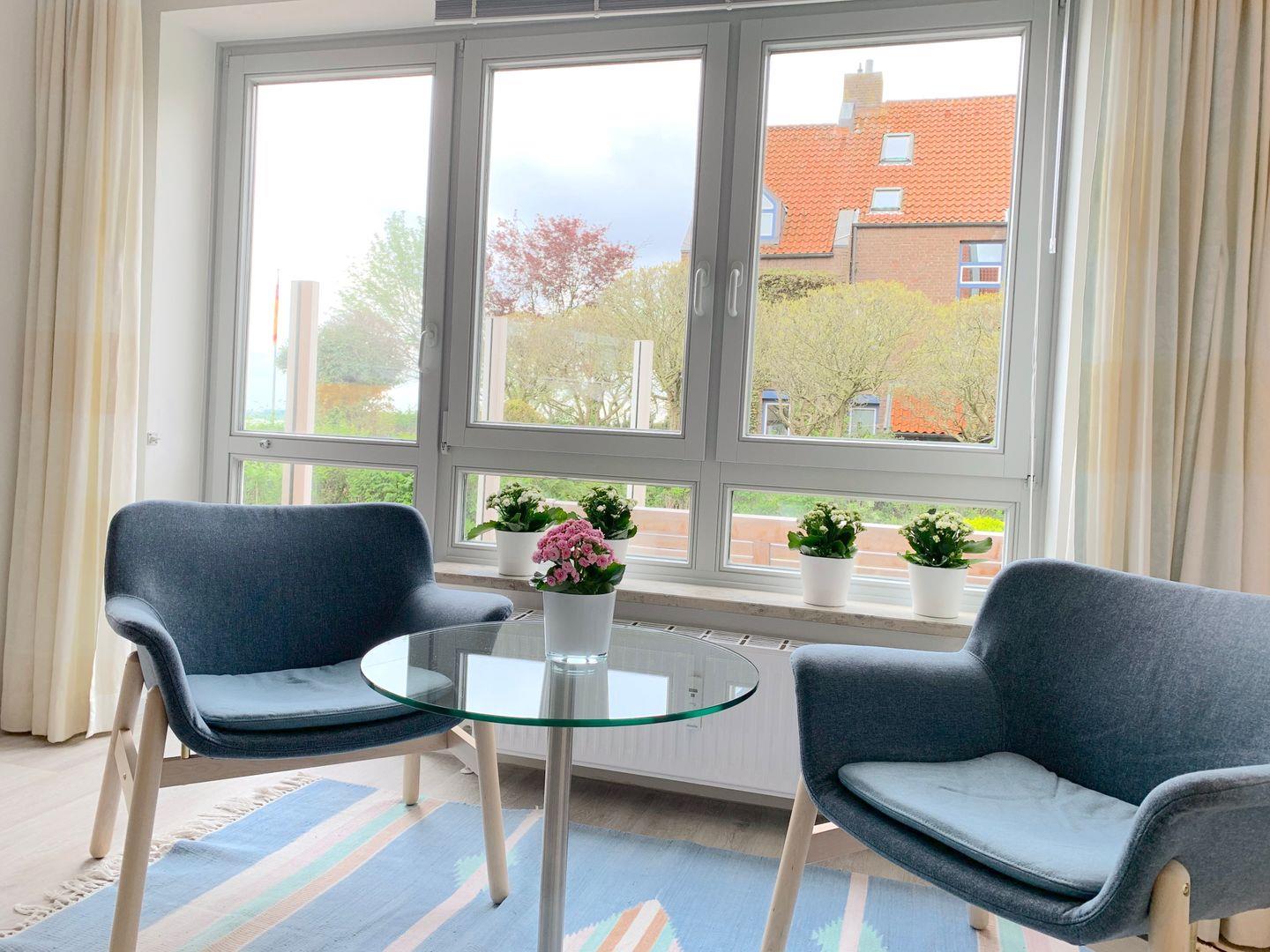 Eine weitere Sitzmöglichkeit bieten die beiden Sessel vor der Terrassentür, lesen und entspannen mit Blick auf die Ostsee.