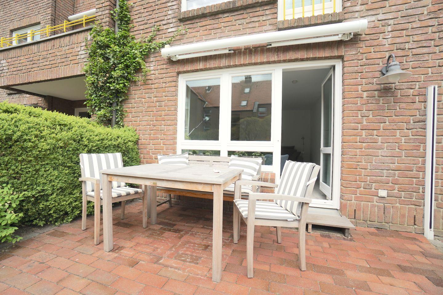 Das Highlight der Wohnung ist die Terrasse, bei Wind geschützt durch eine Glaswand bietet Sie selbst zu kühleren Jahreszeiten eine attraktive Sitzecke.