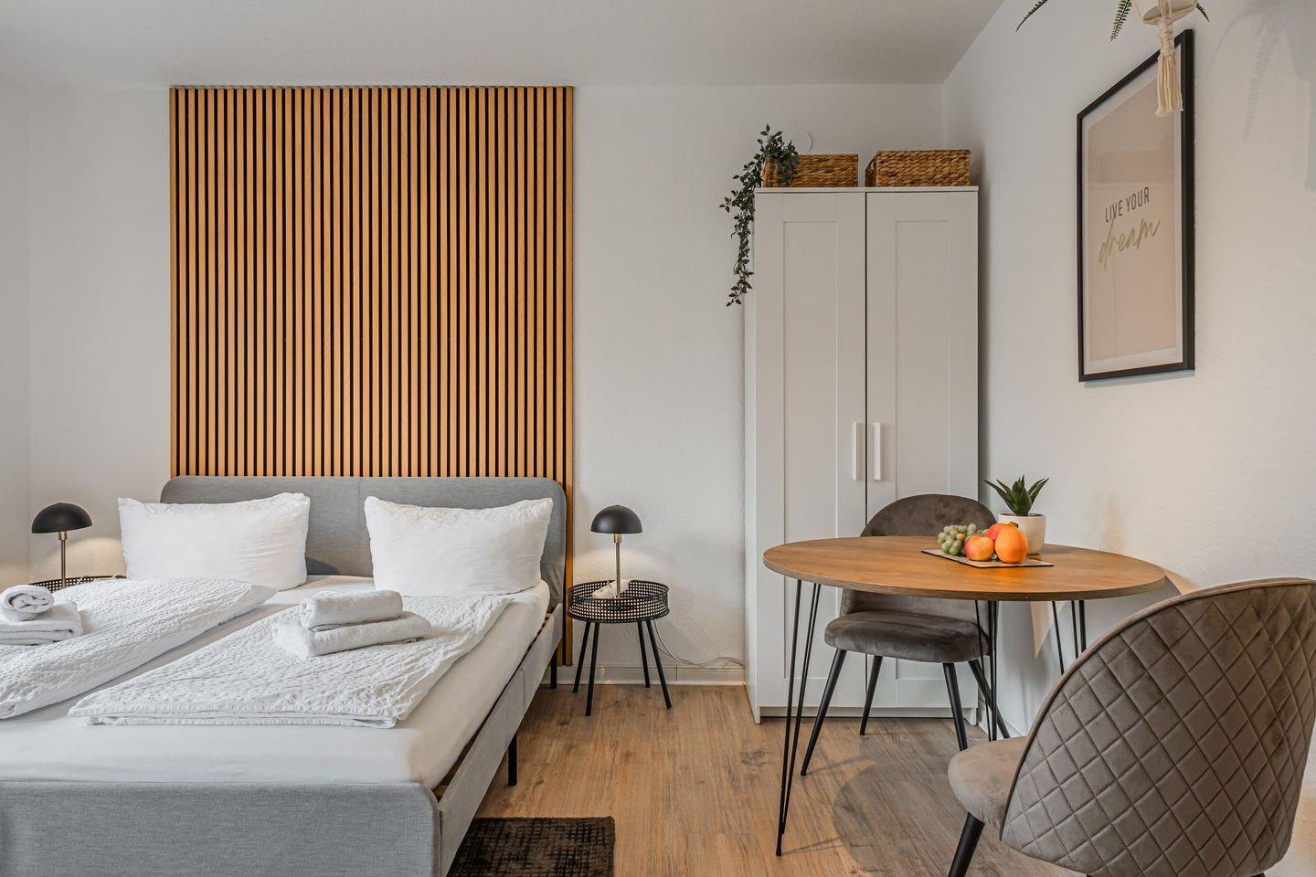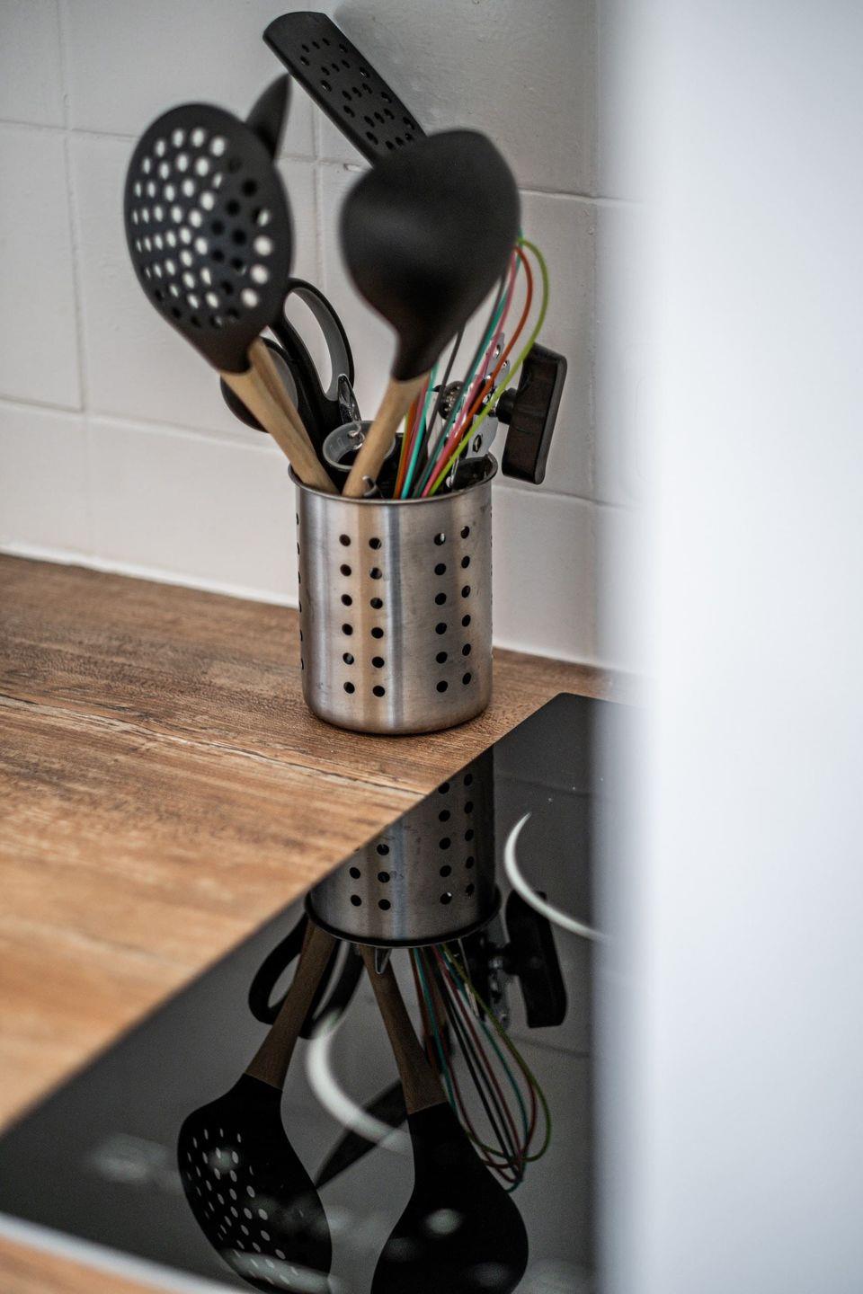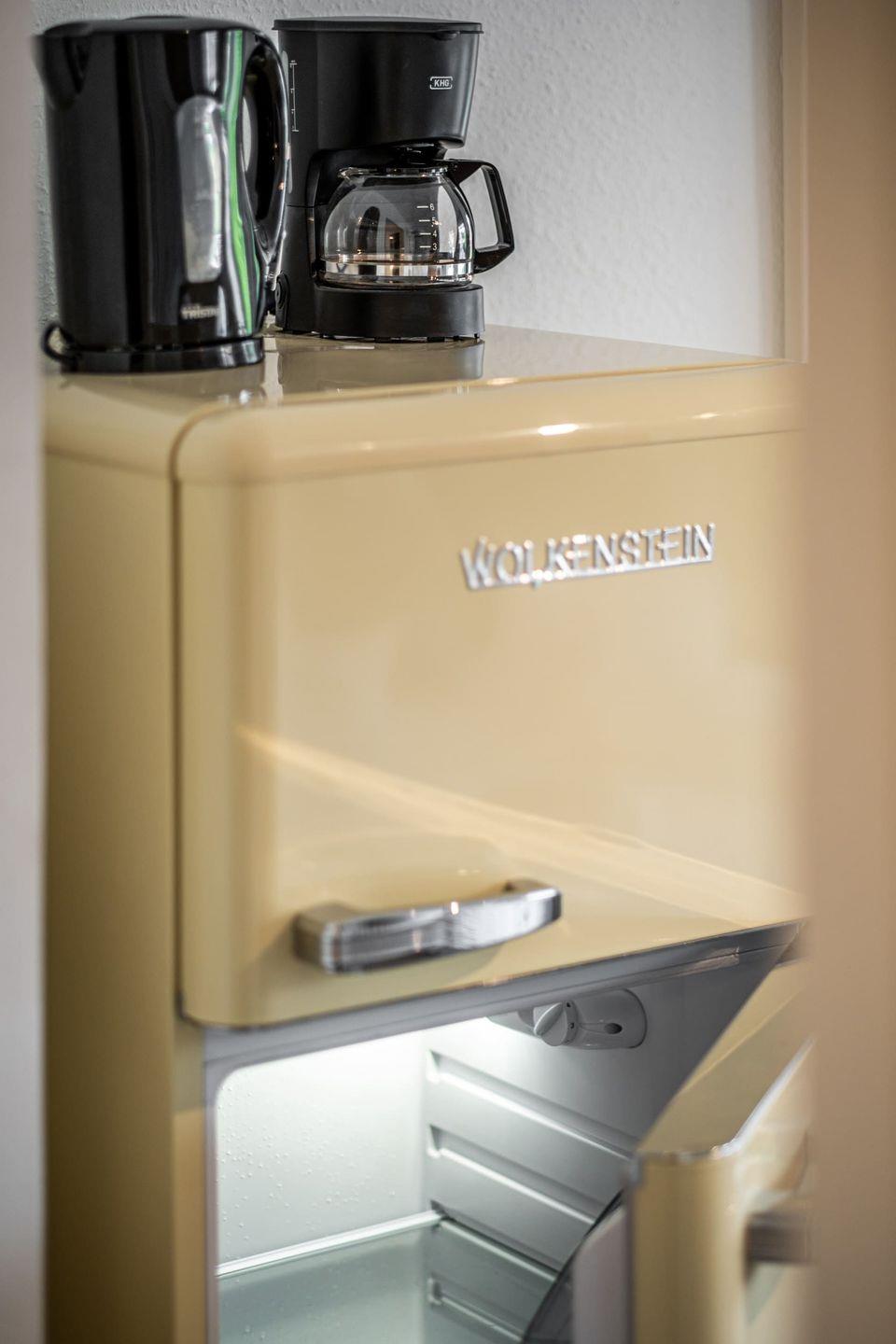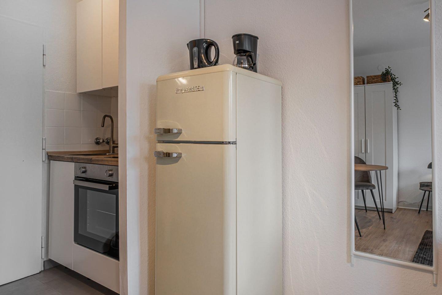 Die Wohnung bietet Ihnen ein helles und einladendes Wohnzimmer, ausgestattet mit einem modernen Laminatboden, der eine warme Atmosphäre ausstrahlt. Hier können Sie nach einem erlebnisreichen Tag in der Umgebung entspannen oder gesellige Abende verbringen. Genießen Sie Ihr Frühstück am Esstisch in der bestens ausgestatteten Küche, die über alle erforderlichen Küchenutensilien sowie einen Kühlschrank und eine Kaffeemaschine verfügt – perfekt, um energisch in den Tag zu starten.