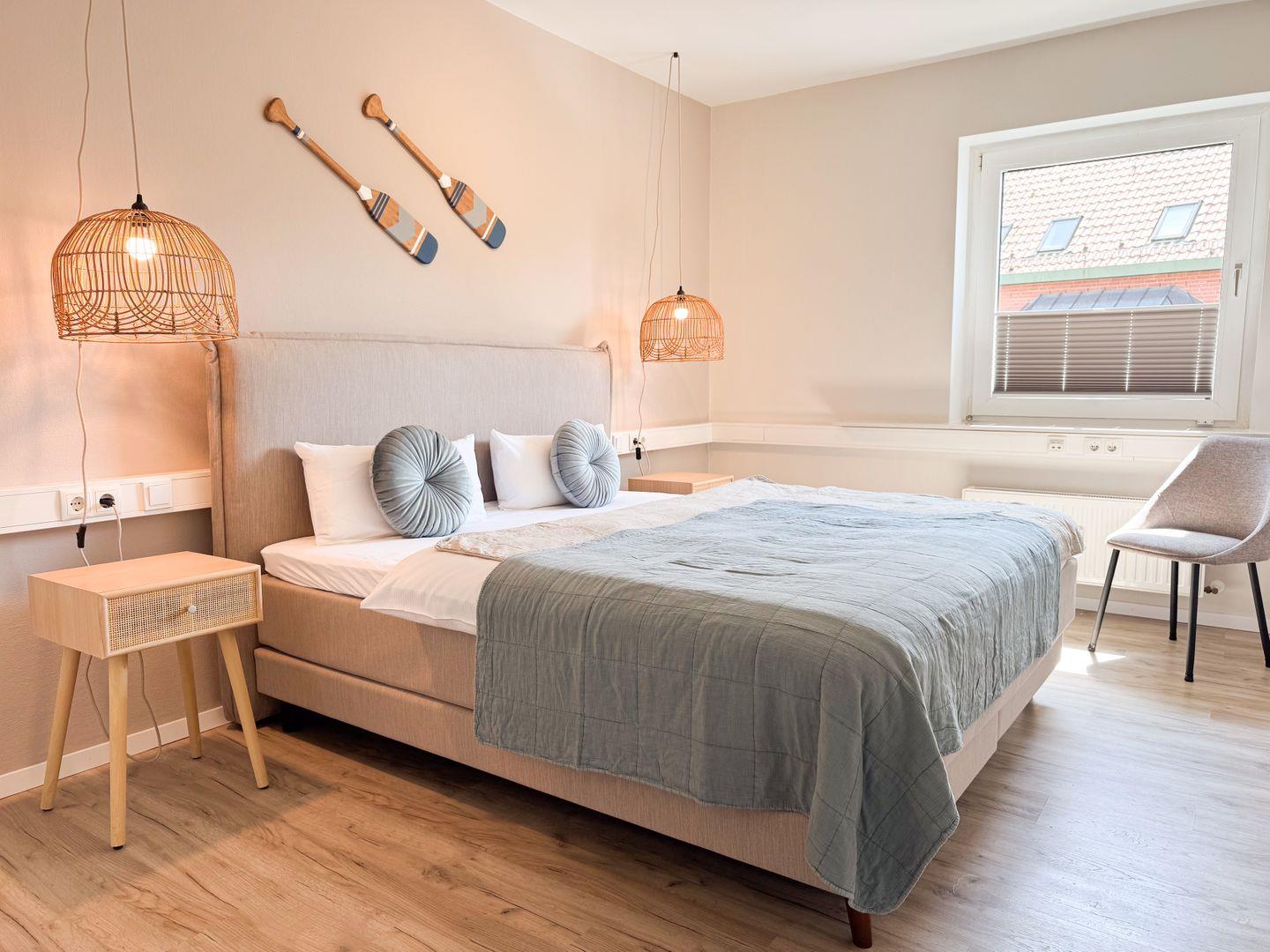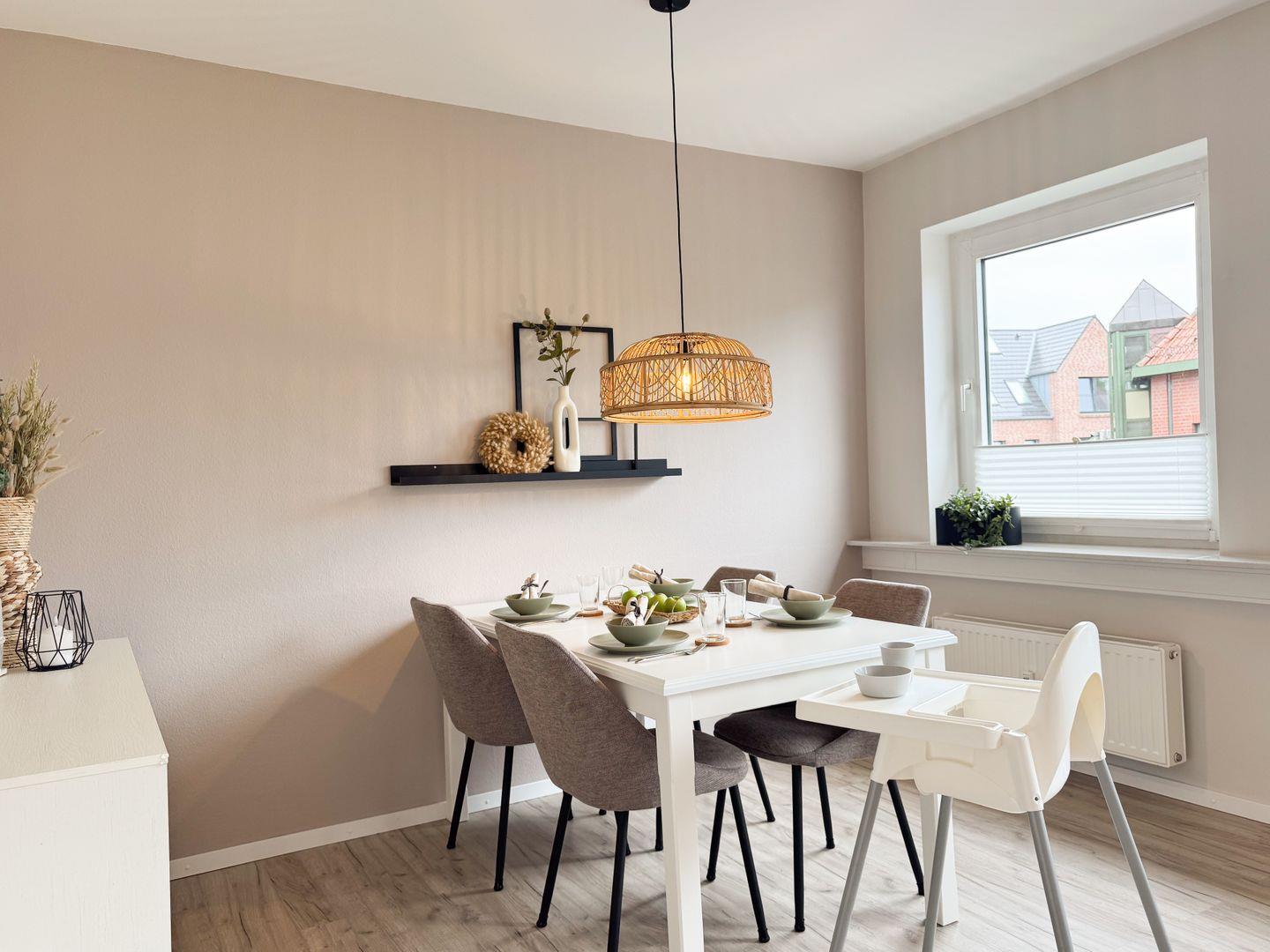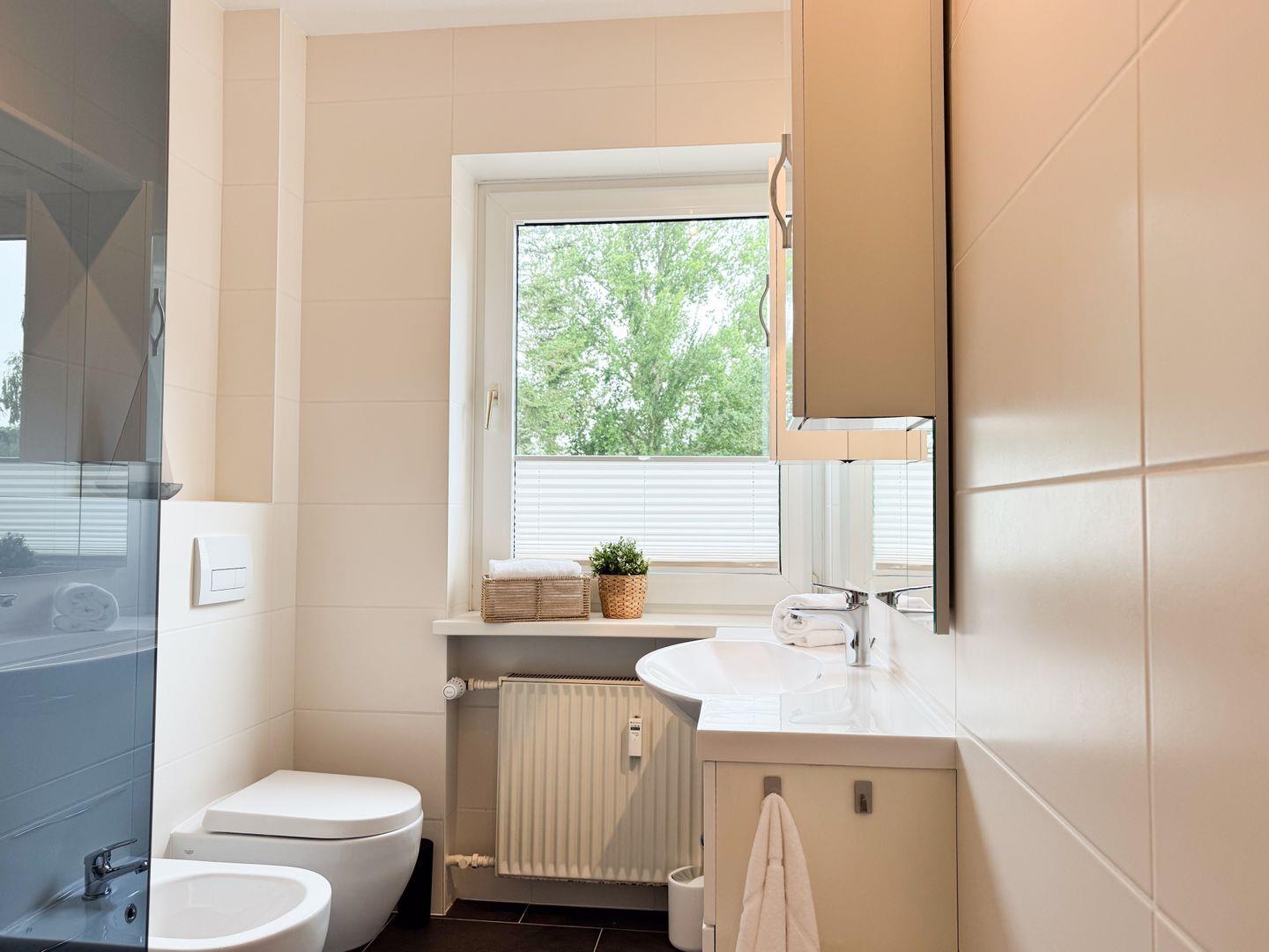 Die Ferienwohnung Borbystrand verfügt über drei geschmackvoll eingerichtete Schlafzimmer, die mit einem Laminatboden ausgestattet sind und Platz für einen erholsamen Schlaf bieten. Ein modernes Badezimmer mit einer bodengleichen Dusche und einem Kosmetikspiegel sorgt für Ihr Wohlbefinden. Zusätzlich steht euch ein Gäste-WC zur Verfügung. Wenn ihr mit Kindern reist, werdet ihr euch über die kindgerechten Einrichtungen freuen, die die Unterkunft bereitstellt.