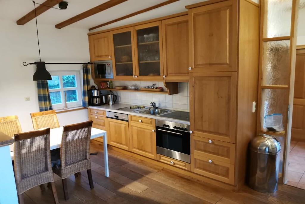 Nyd fred og afslapning uden at skulle give afkald på de bekvemmeligheder, du er vant til derhjemme...! Vores sommerhus har en størrelse på cirka 50 kvadratmeter og derfor plads til cirka 2-4 personer. I stueetagen finder du et soveværelse med en dobbeltseng, et køkken, et badeværelse, en stue med en sovesofa og et eksternt opbevaringsrum (for eksempel til handicapbiler osv.). Du finder ren afslapning i vores saunaområde. En rustik badeoplevelse venter dig i vores tøndesauna wellness-område. Et fuldt udstyret køkken, mikroovn, opvaskemaskine, vaskemaskine og tørretumbler, satellit-tv, parkeringsplads, sauna, overdækket solterrasse, legeplads, grillplads, puder og dyner er til rådighed.