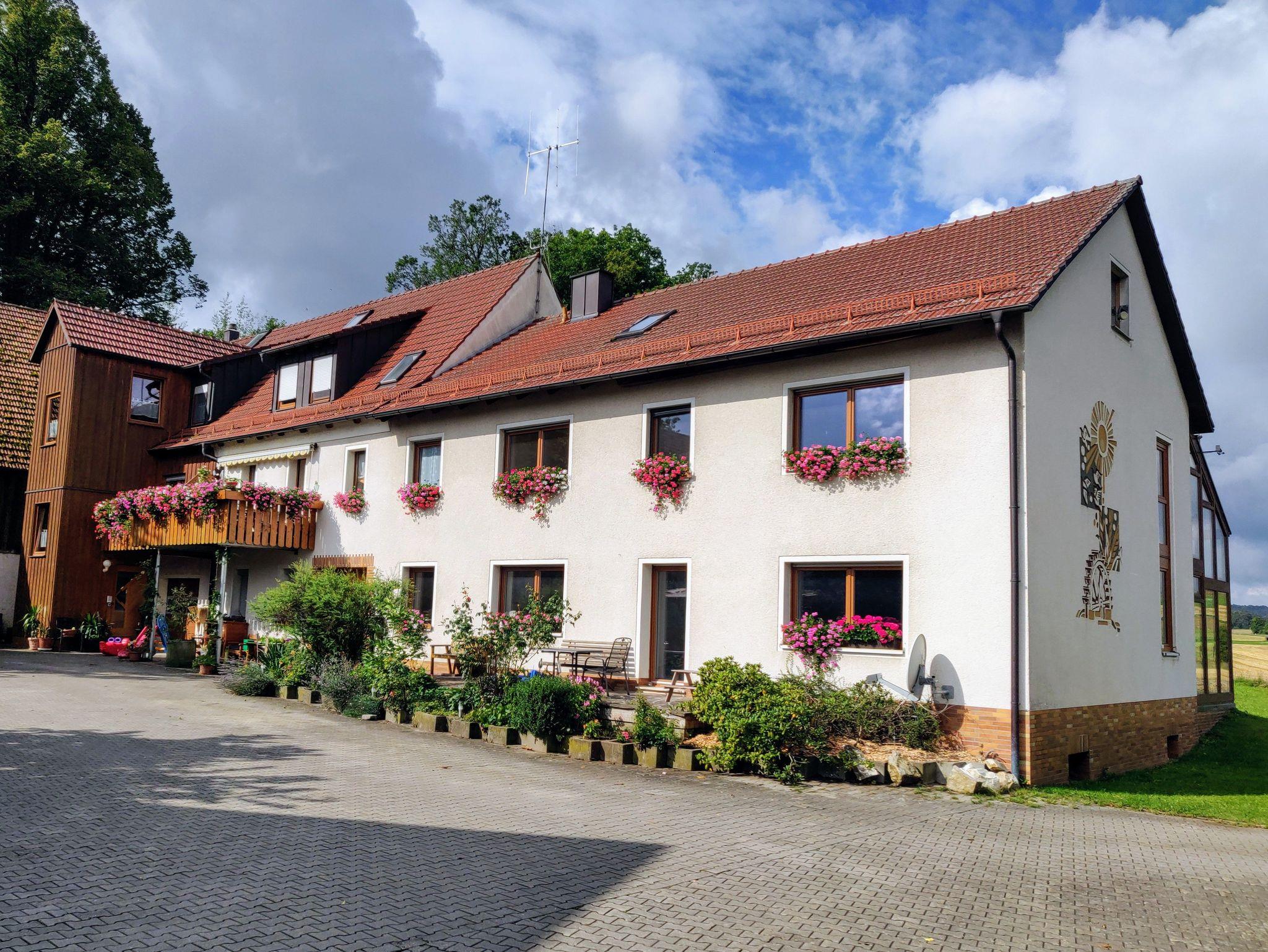 Unsere Ferienwohnung befindet sich im ersten Stock der ehemaligen Scheune und wurde 2001 neu gebaut. Hier können sie sich vom Tag erholen und die Ruhe genießen. Sie verfügt über eine modern eingerichtete und gut ausgestattete Küche mit Geschirrspüler. Ihnen stehen 2 getrennte Schlafräumen zur Verfügung wobei sich in einem ein zusätzliches Kinderbett befindet. Der Balkon unserer Ferienwohnung lädt sowohl zum gemütlichen Frühstück bei Morgensonne als auch zu einem schönen Glas Wein am Abend um den Tag ausklingen zu lassen ein. Des weiteren können sie an sonnigen Tagen gerne auf der Liegewiese die schöne Aussicht genießen. Kinderfreundlich. Haustiere sind auf Anfrage erlaubt.