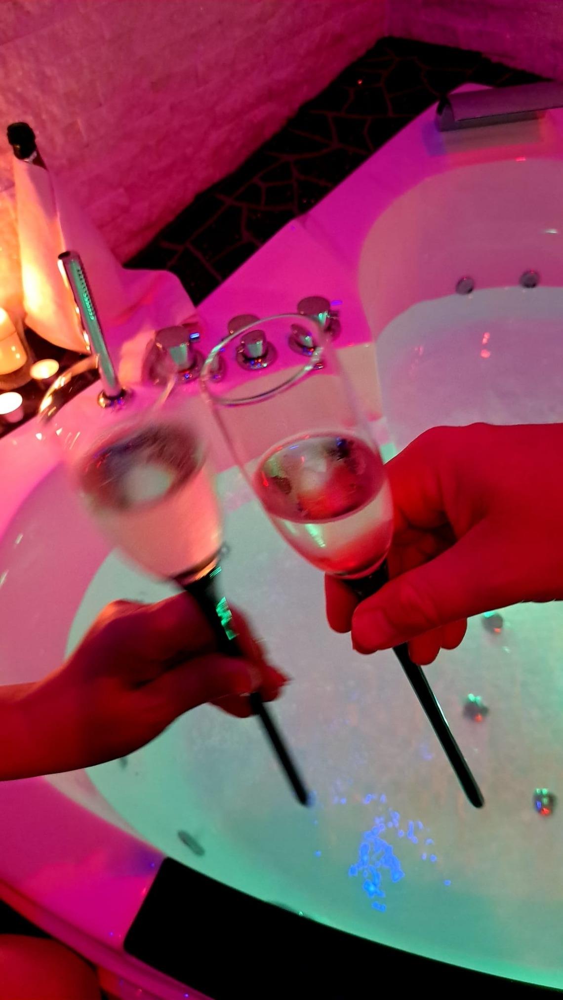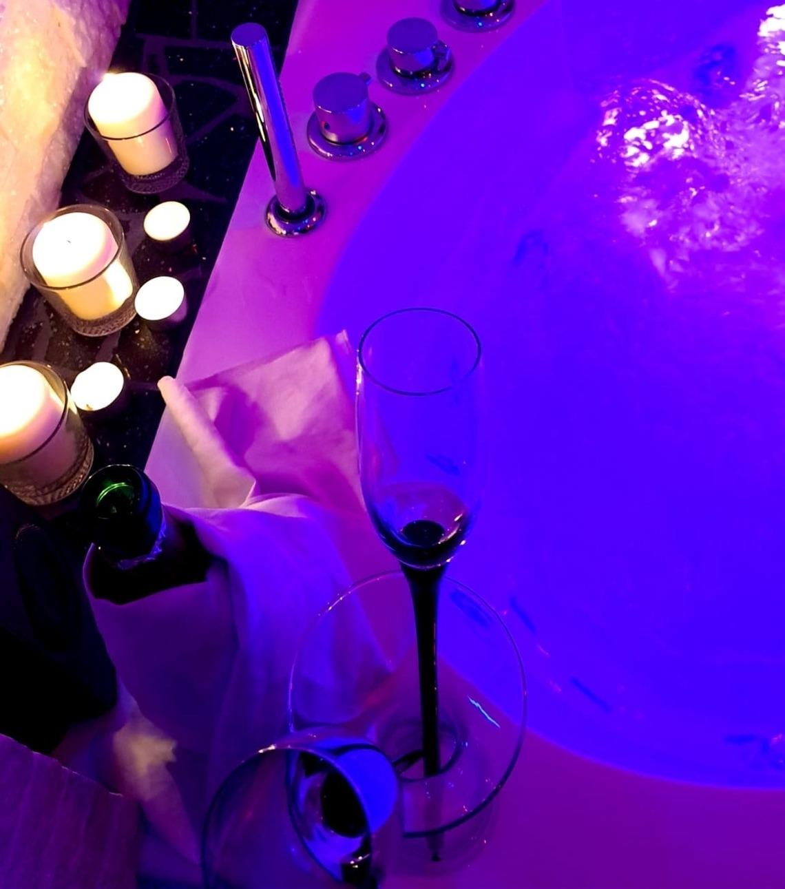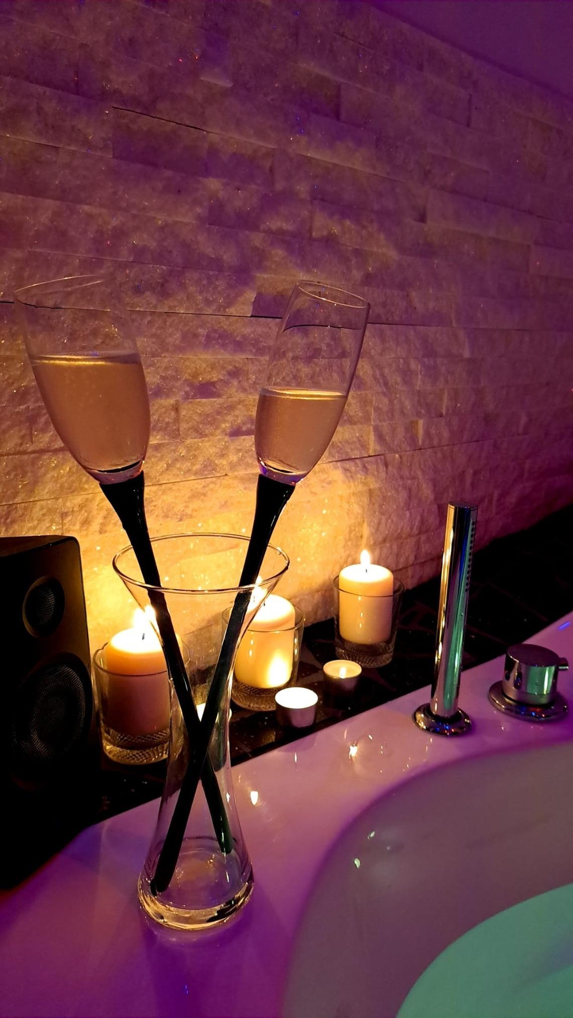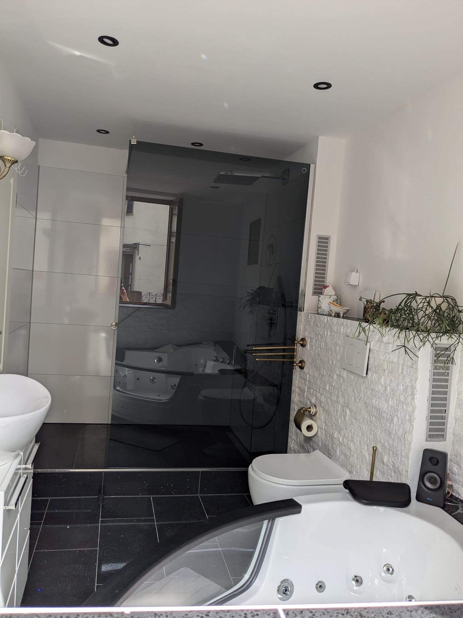 Einrichtung. Genießen Sie schöne romantische Momente zu zweit in der Wellnessbadewanne mit Whirlpool oder gönnen sie sich eine entspannte Dusche mit Dampf und Massage.
