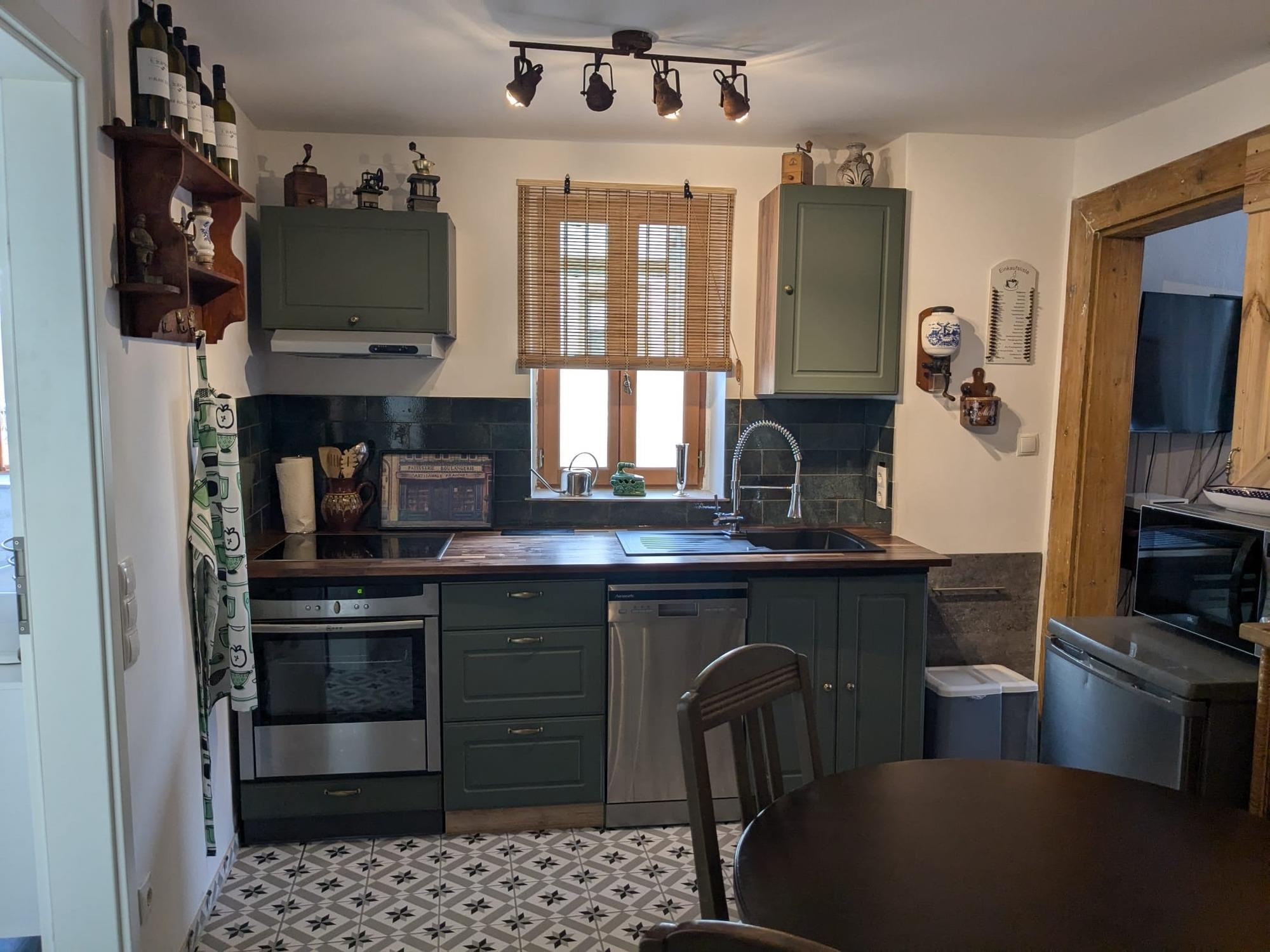Die Küche mit Essbereich bietet Platz zum Kochen, leben und wohlfühlen. Dafür stehen Elektrogeräte von Backofen