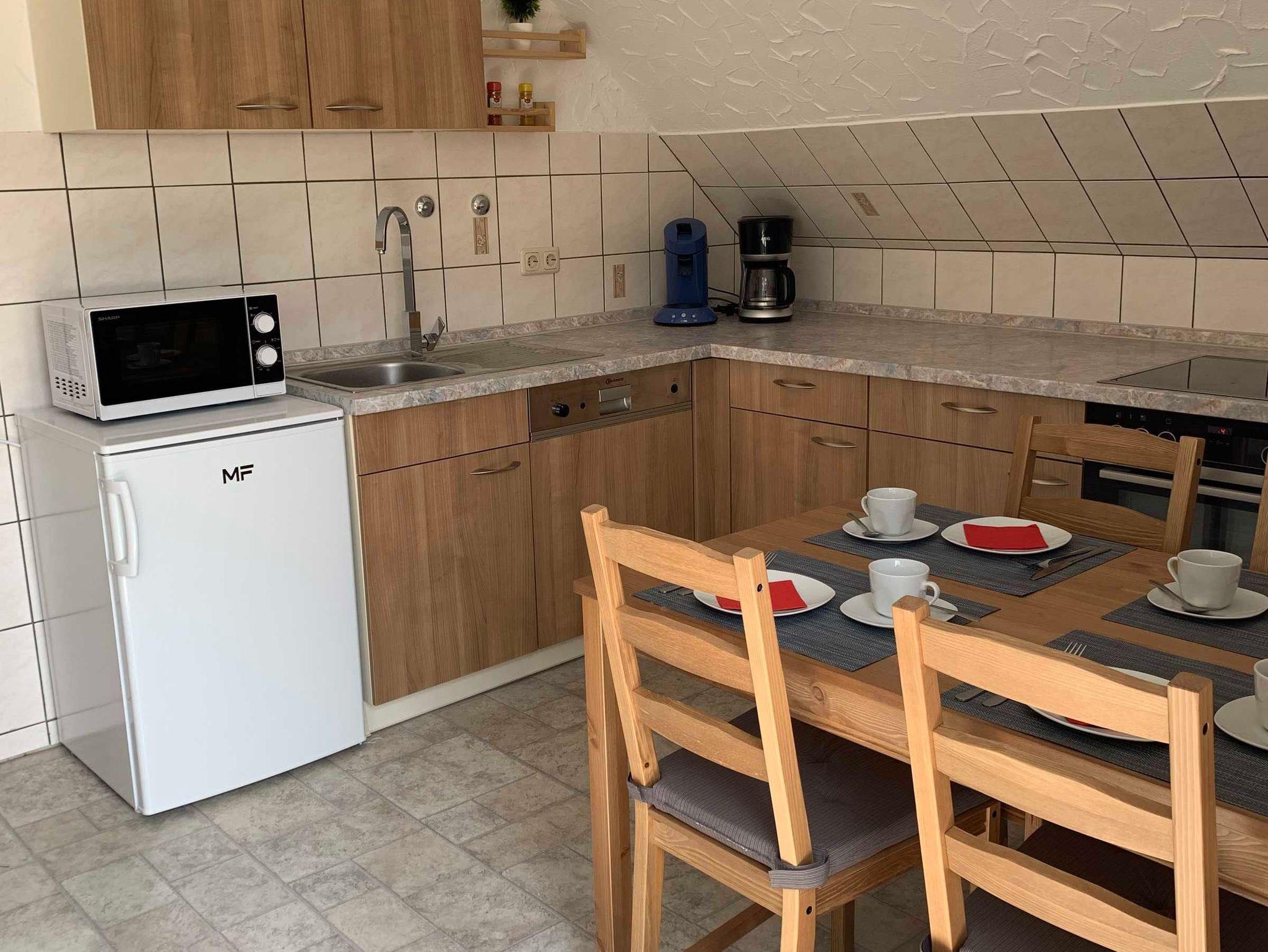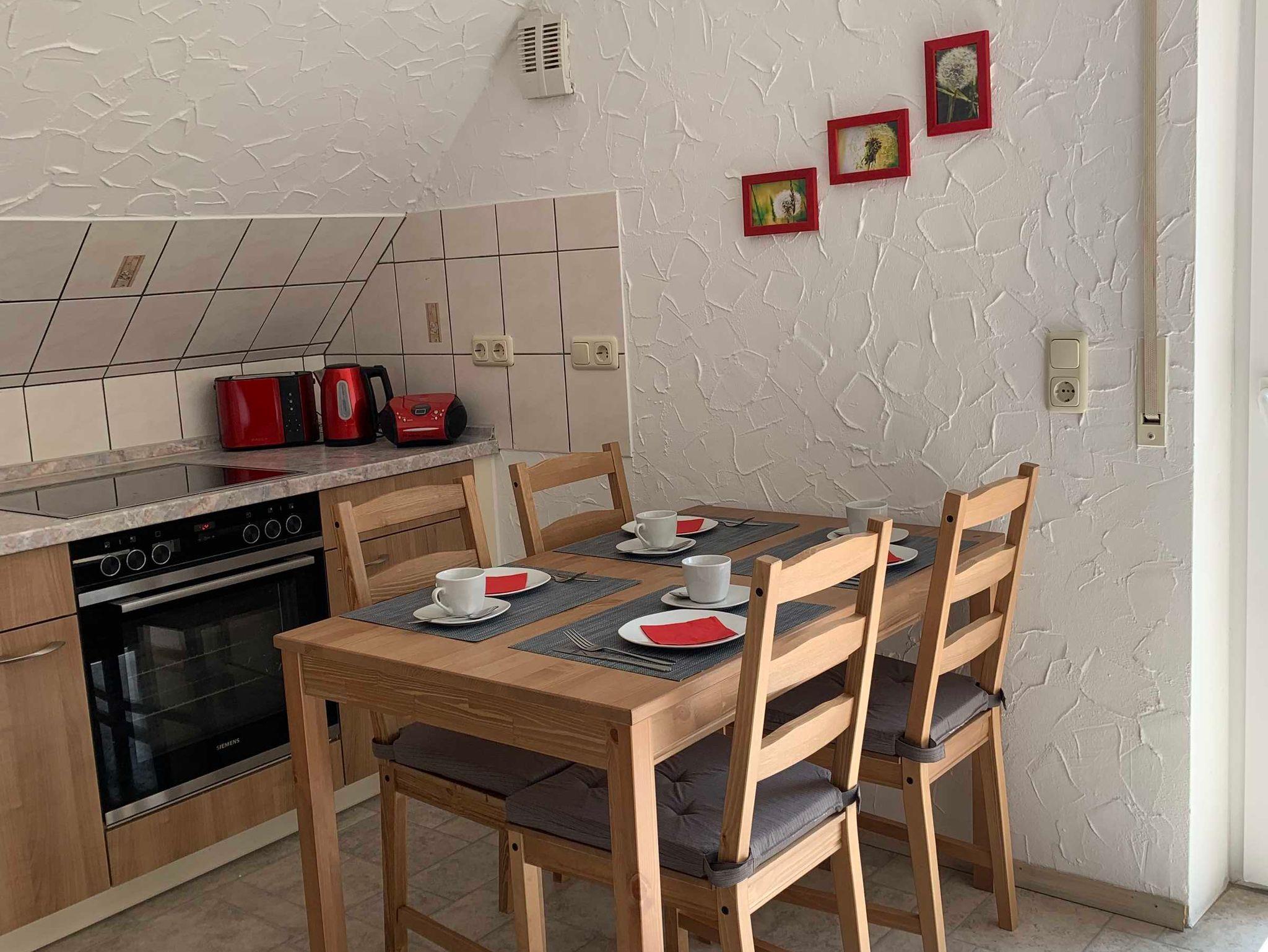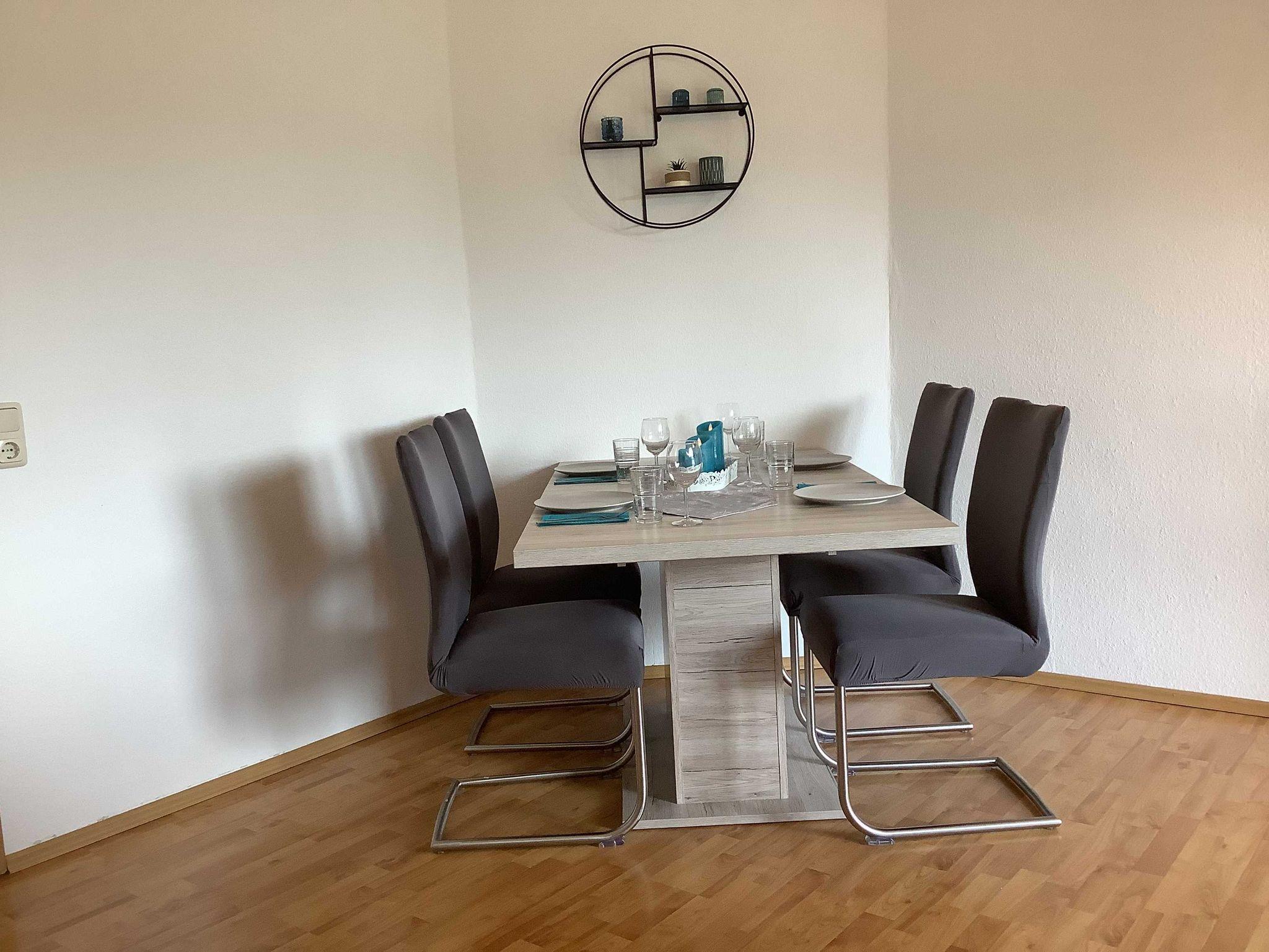 Die Nichtraucher- FeWo am Ortsrand ist für bis zu 5 Personen und ein Baby/Kleinkind ausgestattet.