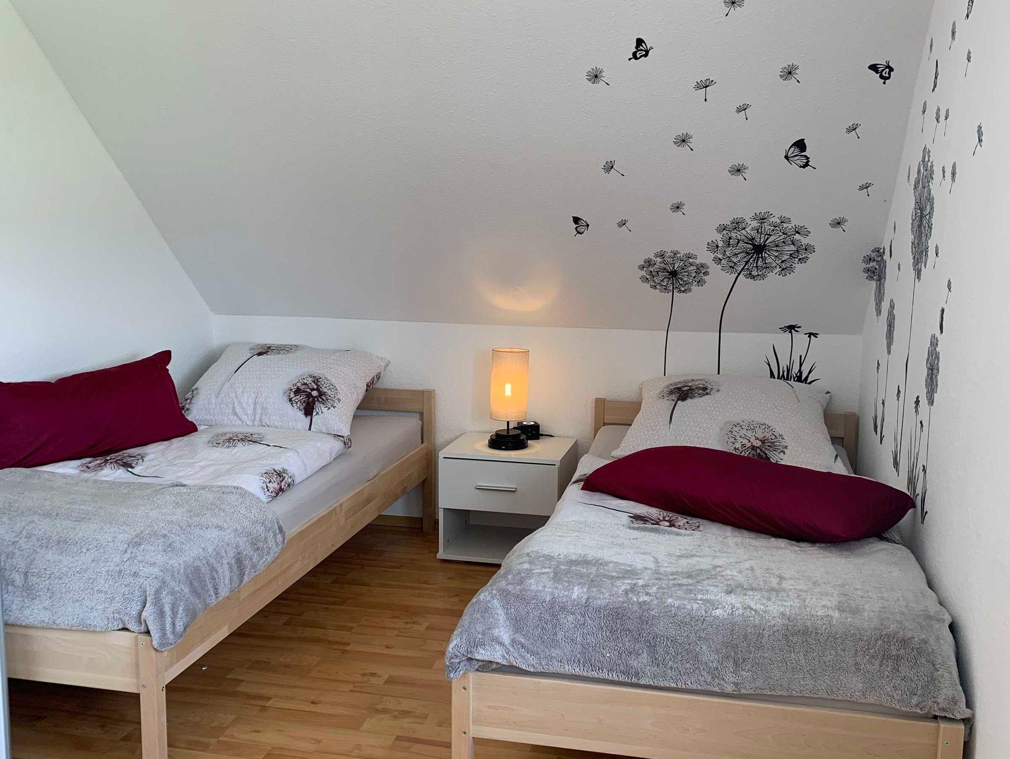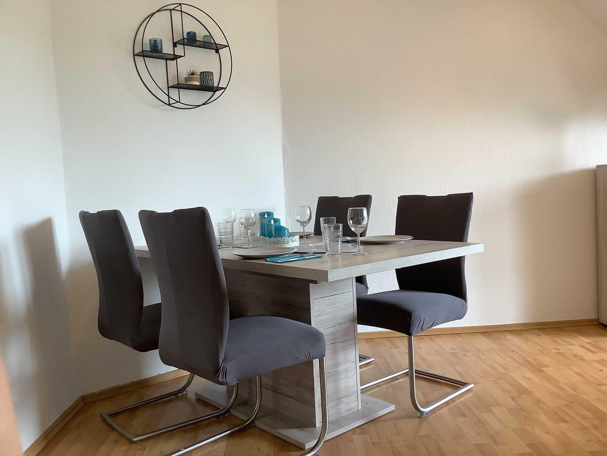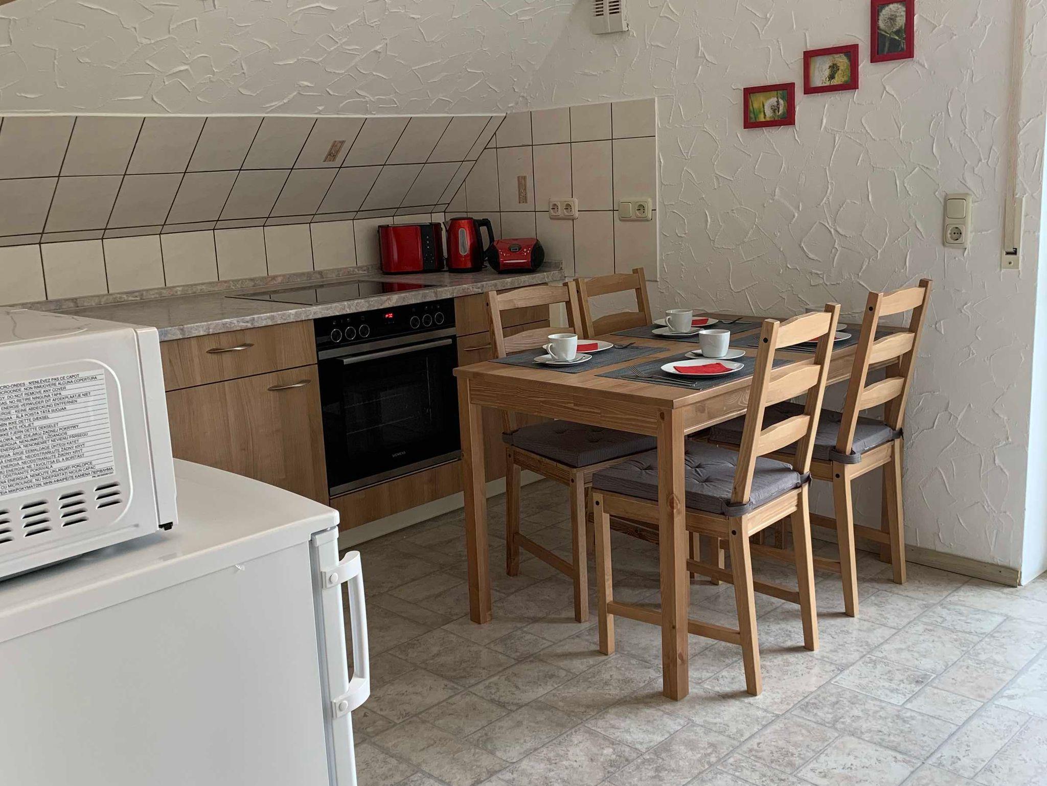 Die Nichtraucher- FeWo am Ortsrand ist für bis zu 5 Personen und ein Baby/Kleinkind ausgestattet.