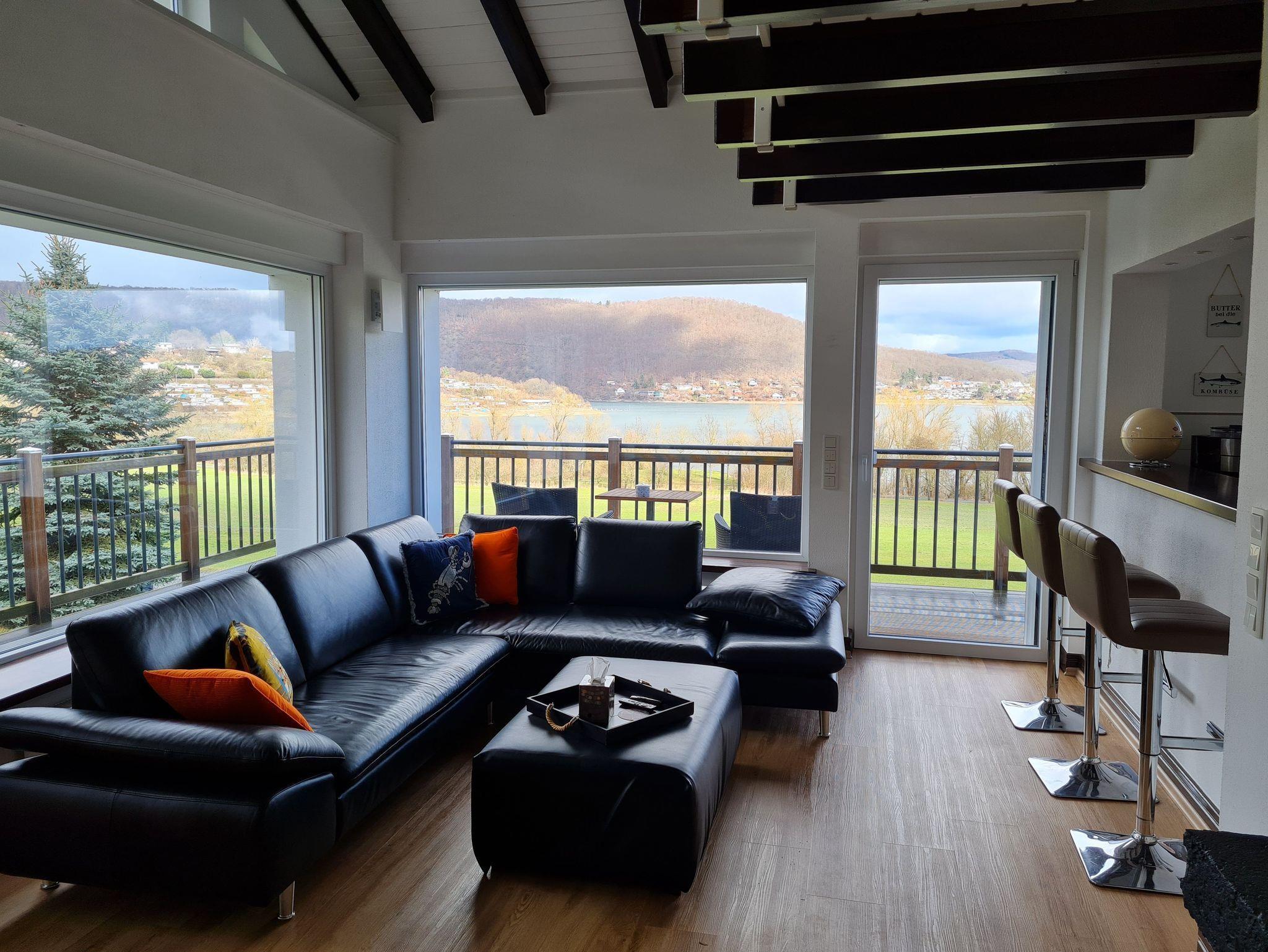 In einem bei Vollstau ca. 100m vom See entfernten 4 Sterne Ferienhaus bieten wir Ihnen auf zwei Etagen einen entspannten und gehobenen Urlaub. Entschleunigen Sie beim unverbauten Panoramablick auf den wunderschonen Edersee! Das Objekt ist ruhig an einer Anliegerstrasse gelegen. Der 800m2 große Garten ist komplett eingezaunt. Auf dem Grundstuck stehen 4 Parkplatze zur Verfugung. Die Badestelle (Badebuhne Bringhausen - Badeschuhe empfohlen) ist nur wenige Fußminuten entfernt. Das Ferienhaus wurde 2018 kernsaniert und 2021 renoviert. Ein umlaufender Balkon mit Sitzmoglichkeiten, eine große angeschlossene Terrasse und ein Strandkorb laden zum gemutlichen Zusammensitzen, Entspannen oder Sonnenbaden ein. Auch an den Insektenschutz an Fenstern und Turen wurde gedacht. In einer Garage konnen Fahrrader, SUPs oder sonstige Sportgerate sicher untergestellt werden. Das Haus ist geschmackvoll mit viel Liebe zum Detail und kinderfreundlich eingerichtet. Hunde sind willkommen.