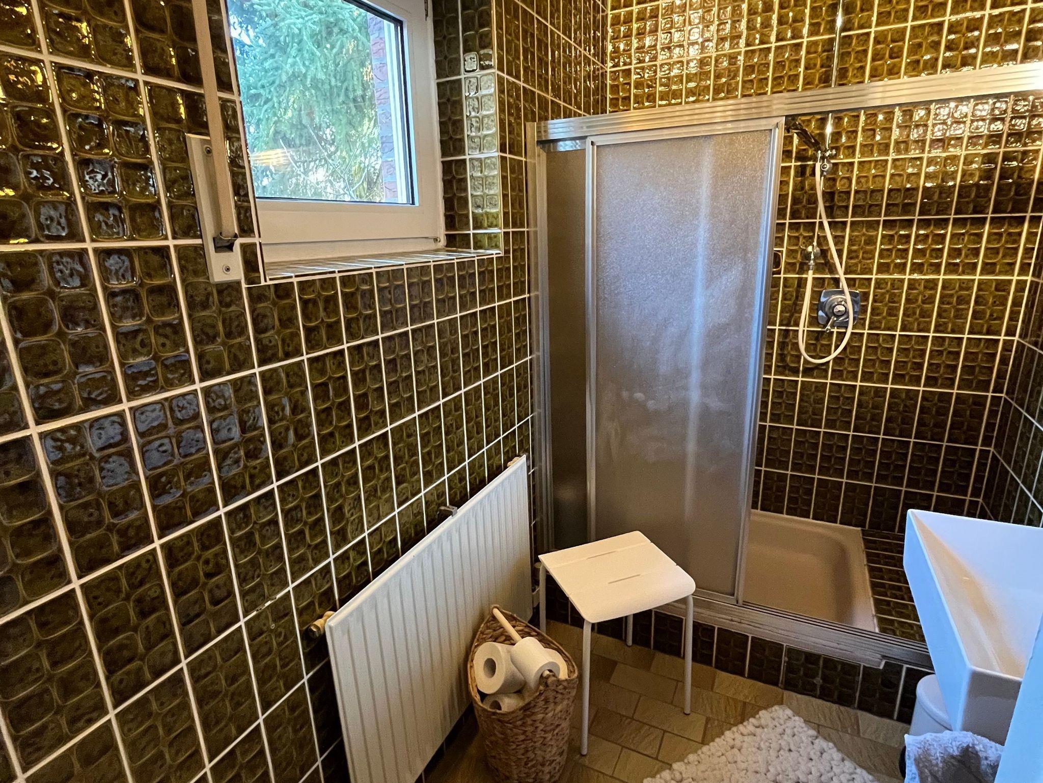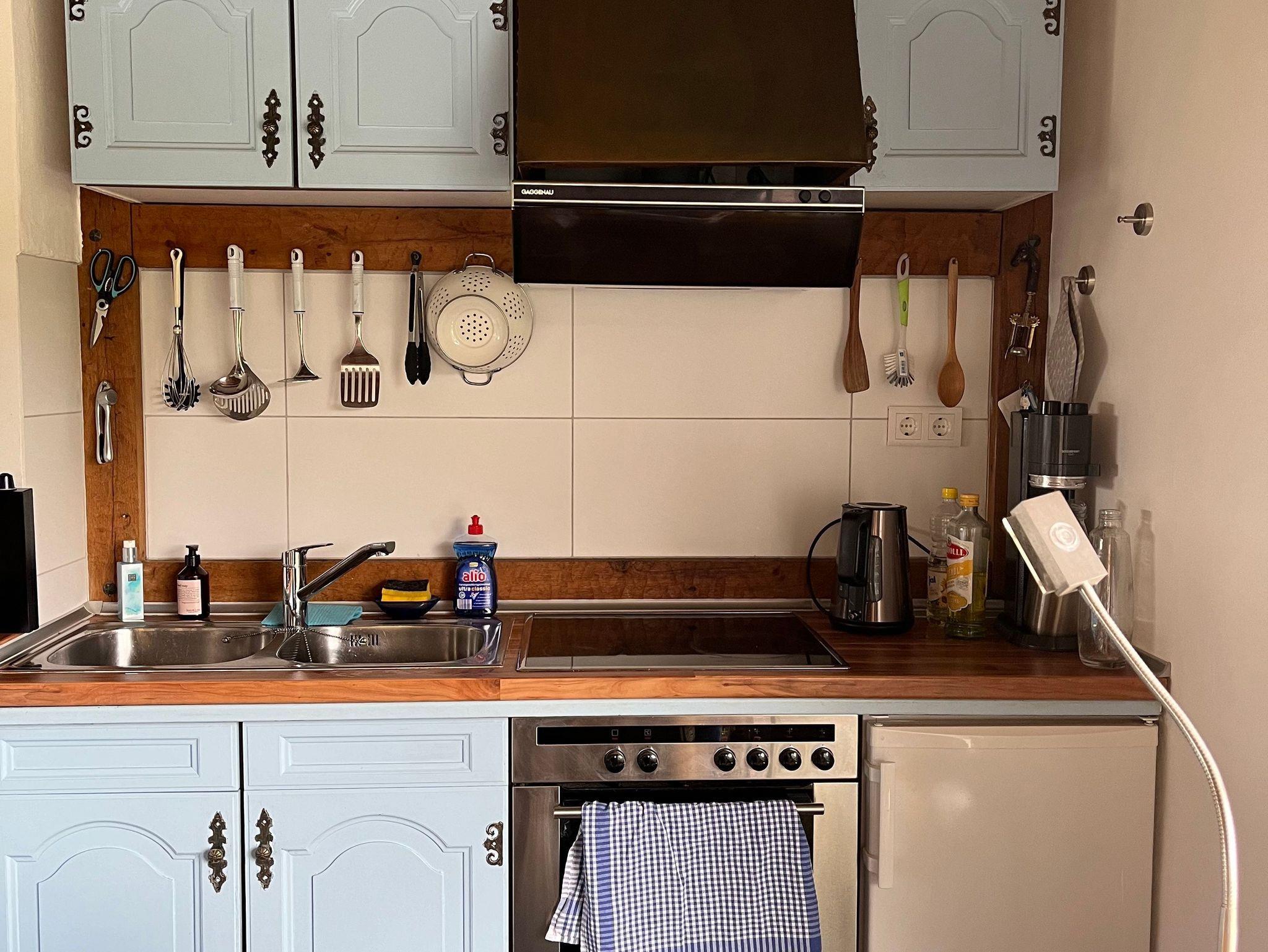 Das Haus: Es besteht aus zwei Einzelzimmern mit Betten, einem Schlafzimmer mit Doppelbett einem großen Wohn-Essbereich, inkl. Küchenzeile und einem Flachbildschirm. Auf dem großen, teilweise überdachten Balkon steht ein Gasgrill. Zwei Tische, sechs Gartenstühle und zwei Liegen sind verfügbar. Im Wohn-Essbereich findet sich die Küche. Diese verfügt über einen Herd mit Ofen, einen Kühlschrank, eine Nespresso-Kaffeemaschine und French-Pressed, einen Toaster und einen Wasserkocher. Das Badezimmer im Untergeschoss besteht aus einer Toilette und einer Dusche. Zusätzlich gibt es eine Extratoilette im Obergeschoss.