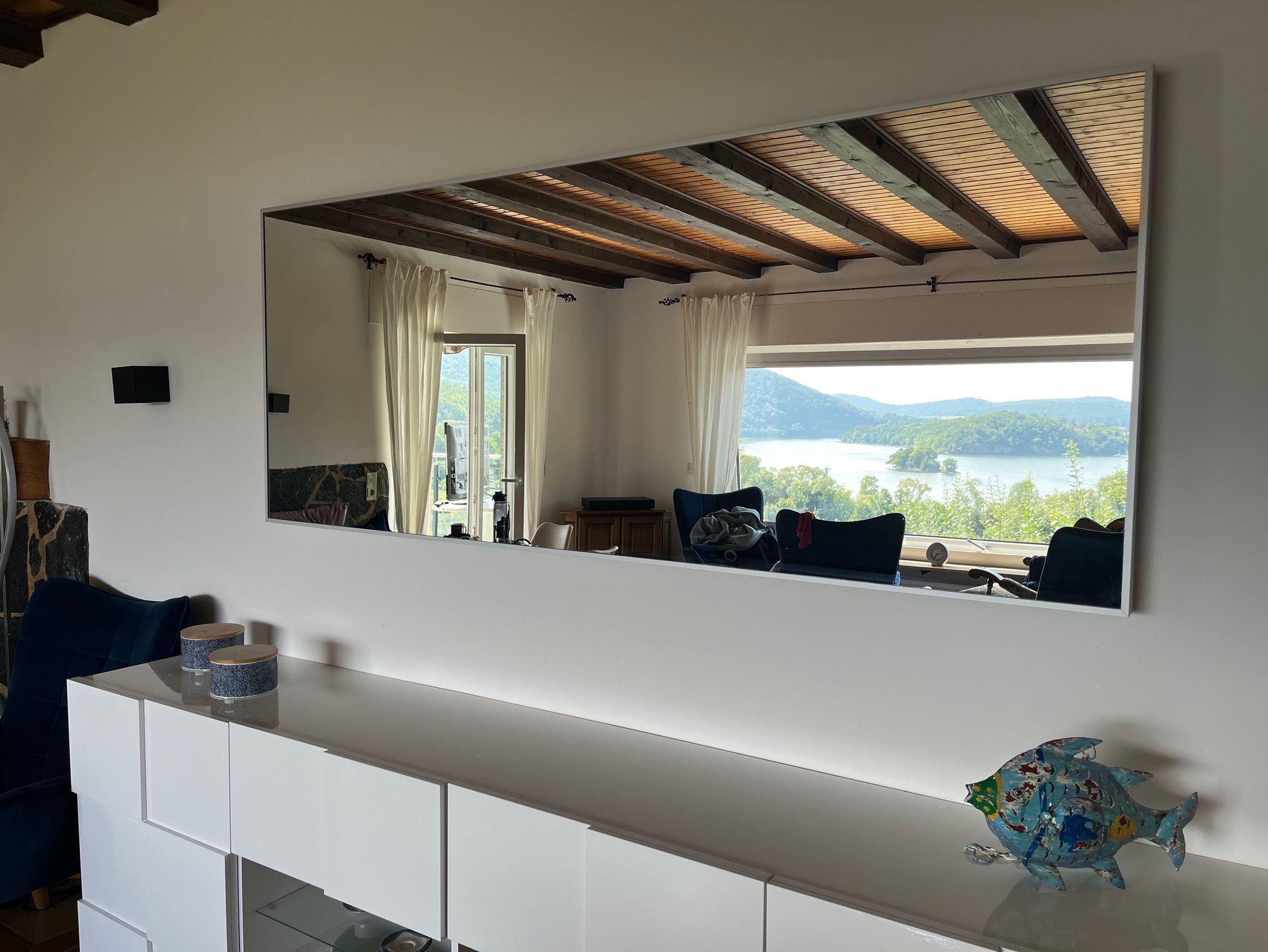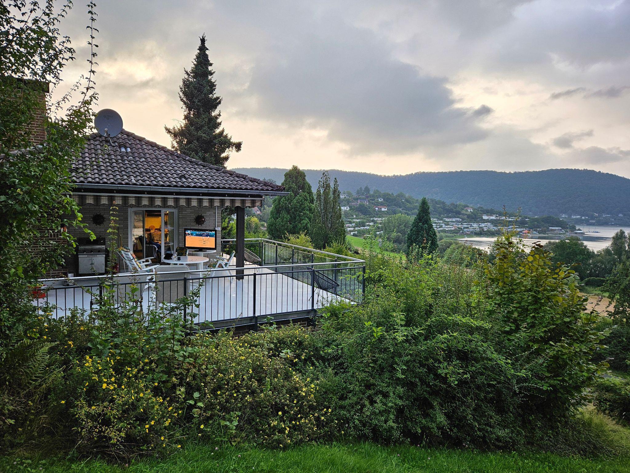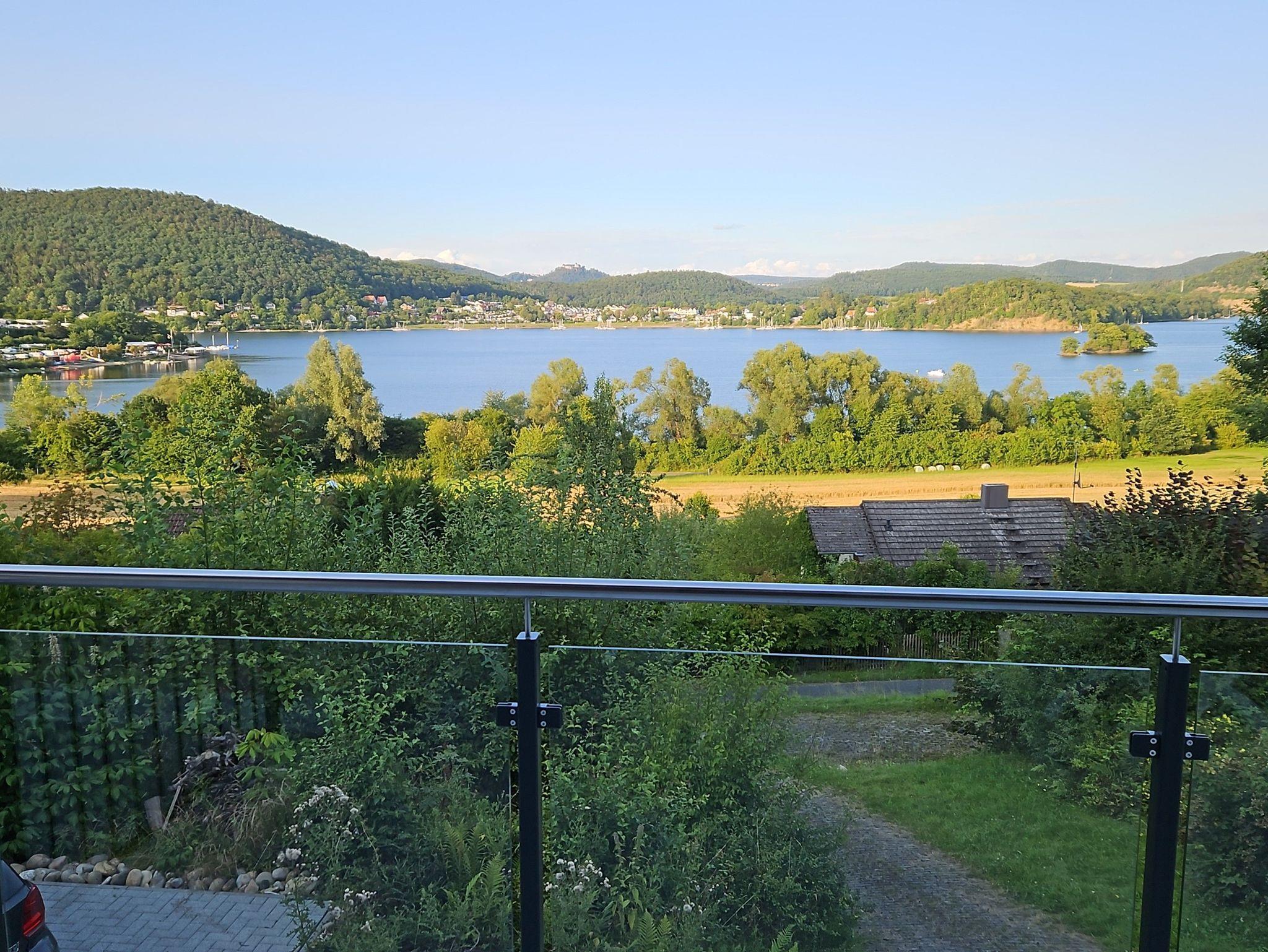Das Grundstück: unser Haus hat 85m2 Wohnfläche, eine große, teilweise überdachte Terrasse, zwei Parkplätze und liegt auf einem 1000m2 großen steilen Hanggrundstück. Der Blick auf den See ist unverbaubar und immer beeindruckend.