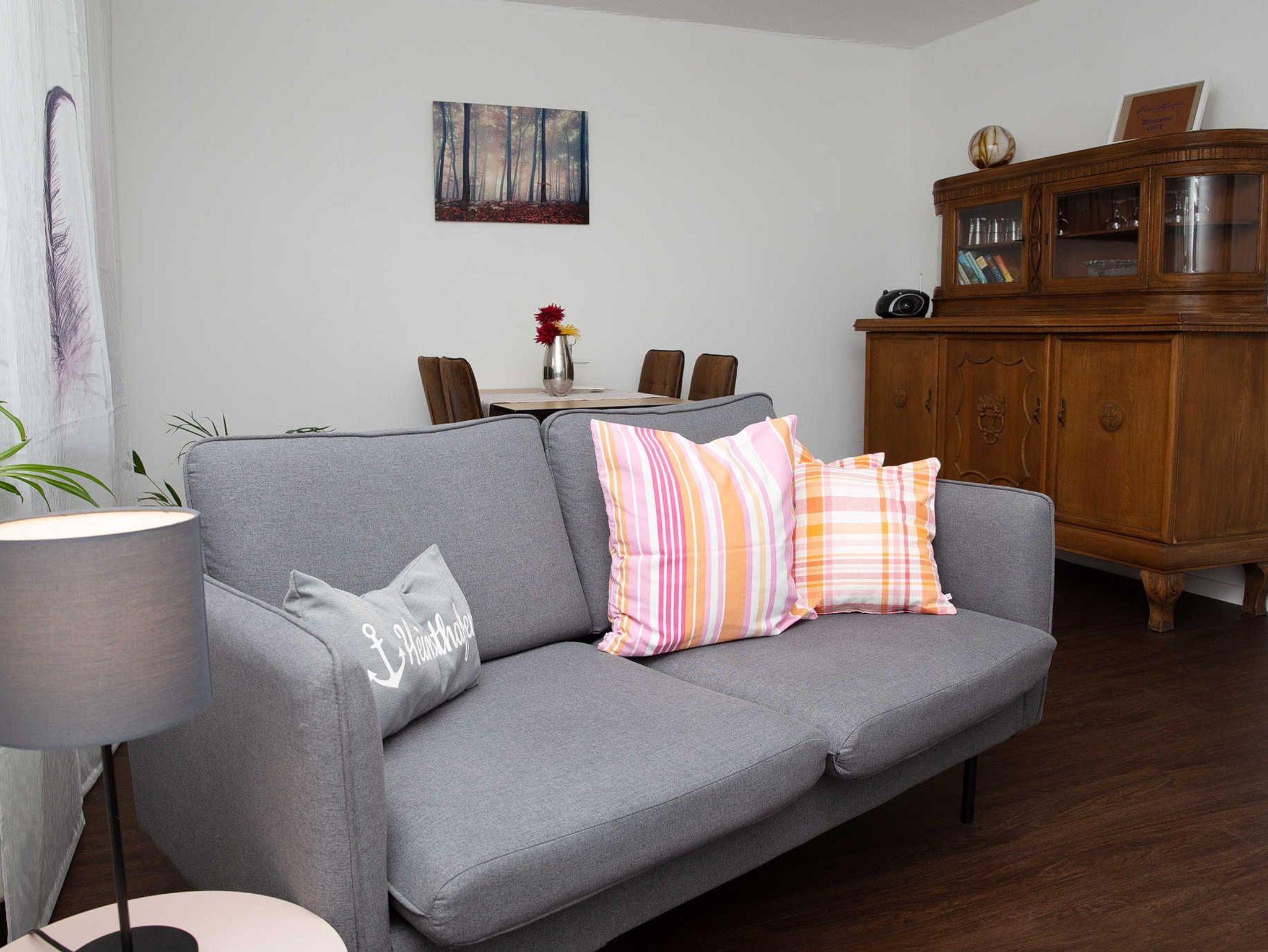 Unsere 50 qm große kinderfreundliche Ferienwohnung „Ost“ befindet sich im 1. Obergeschoss unseres Ferienhauses „Heimathafen“. Die allergikerfreundliche Nichtraucher-Wohnung mit offenem Grundriss umfasst einen gemütlichen Wohn- und Essbereich mit großem TV und direktem Zugang zum eigenen Balkon, eine gut ausgestattete Küche, ein gemütliches Schlafzimmer und ein Dusch-Bad.