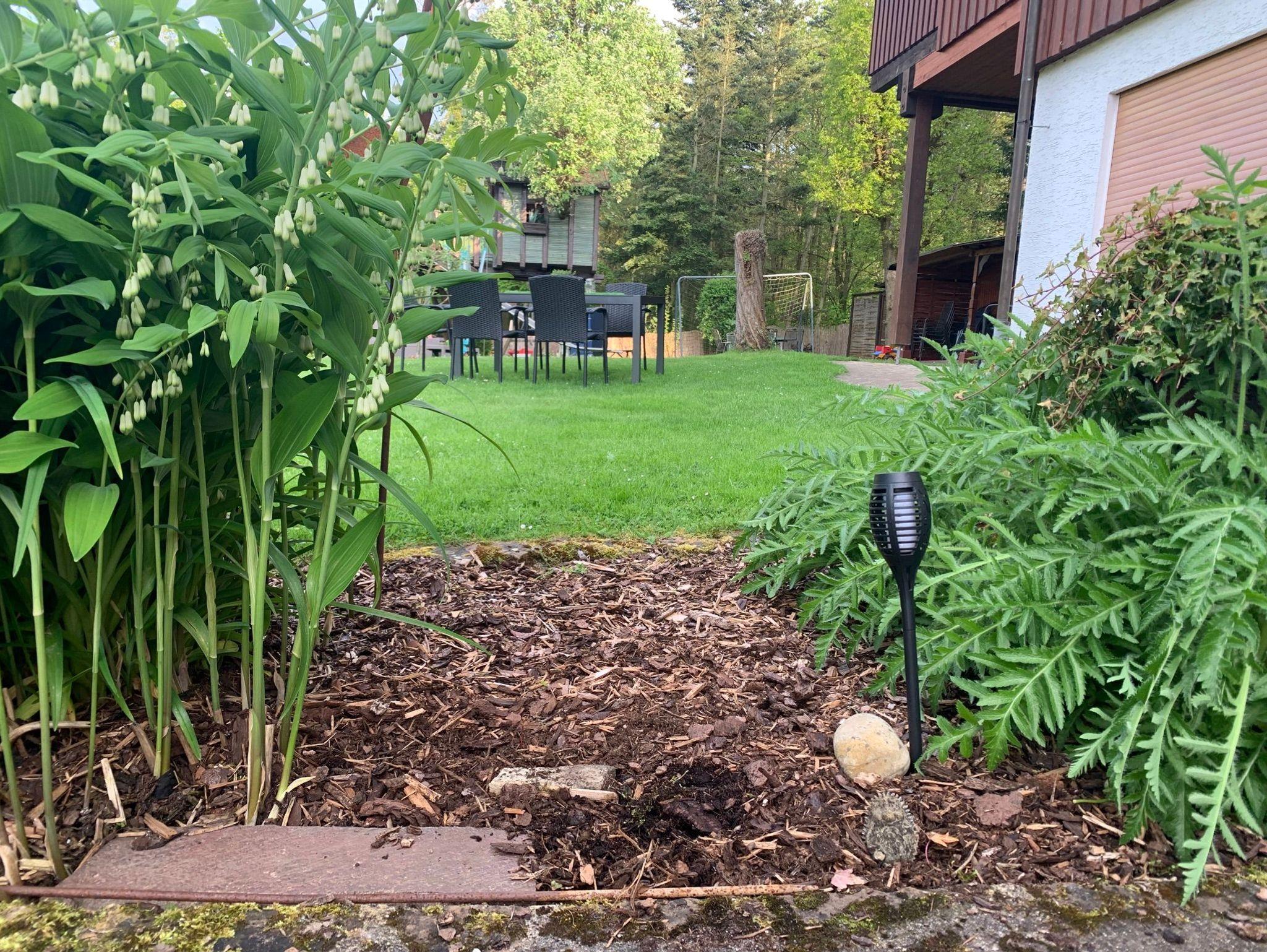 Unser Haus mit großem Garten, Grillmöglichkeiten, Sitzecken, Tischtennis und Spielplatz liegt idyllisch und ruhig am Waldrand.