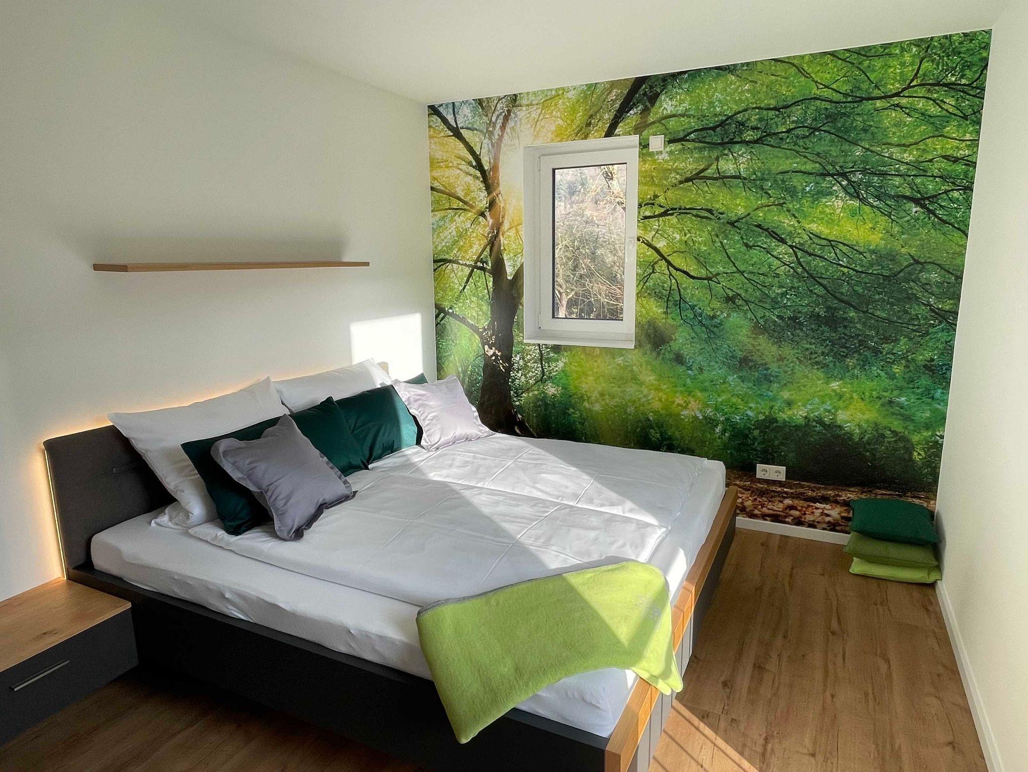Diese Wohnung hat zwei komfortabel eingerichtete Schlafzimmer mit Doppelbetten und traumhafter Fotowand.
