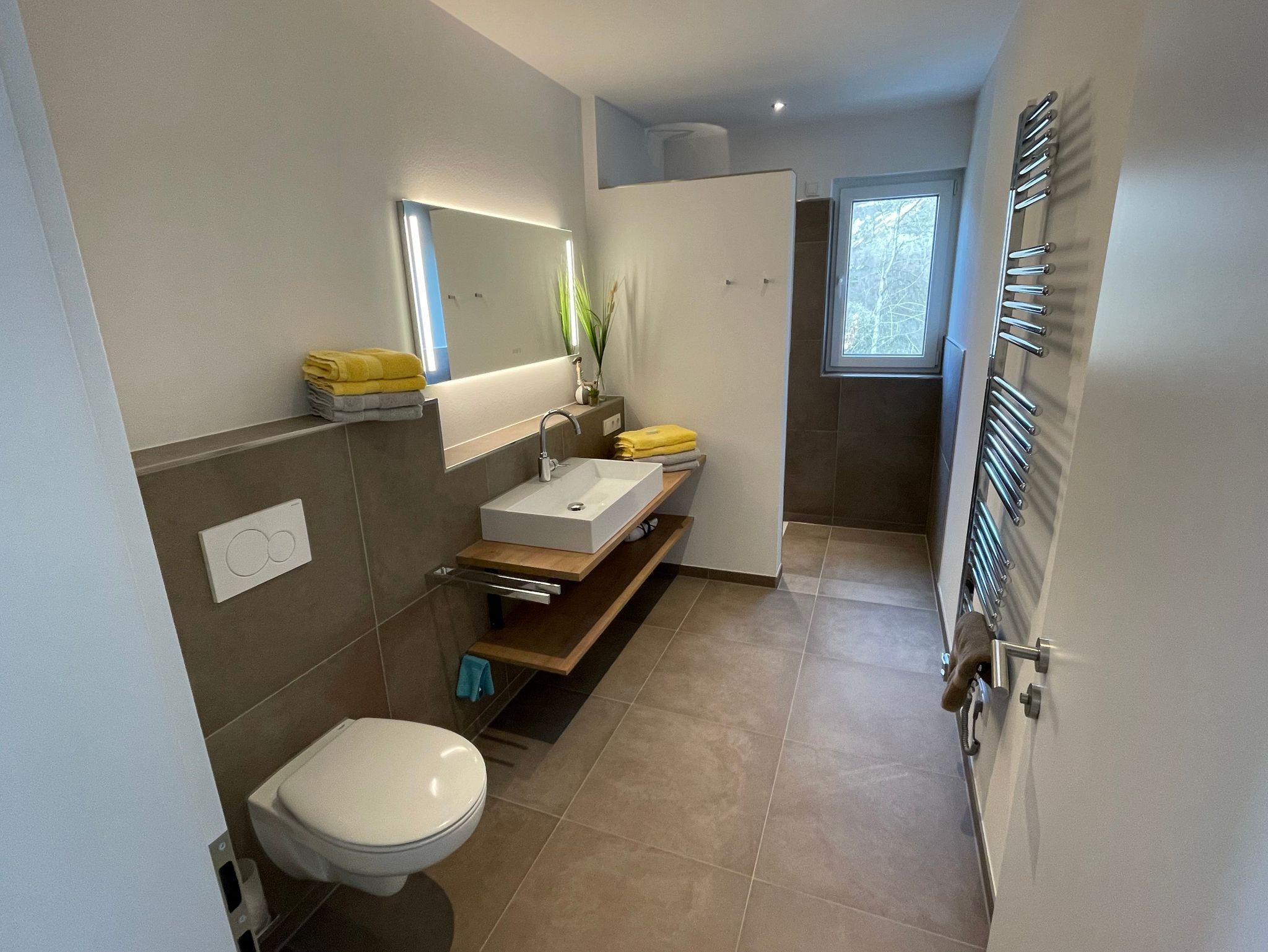 In dem großen, hellen und ansprechend eingerichteten Bad findest du eine große Regenschauerdusche und einen stylischen Handtuchheizkörper. In den Schlafzimmern kommen auch große Leute nicht zu kurz. Kuschel dich in dem 180x200cm breitem Bett unter die großen Bettdecken mit 155x220cm und genieße die Nachtruhe.