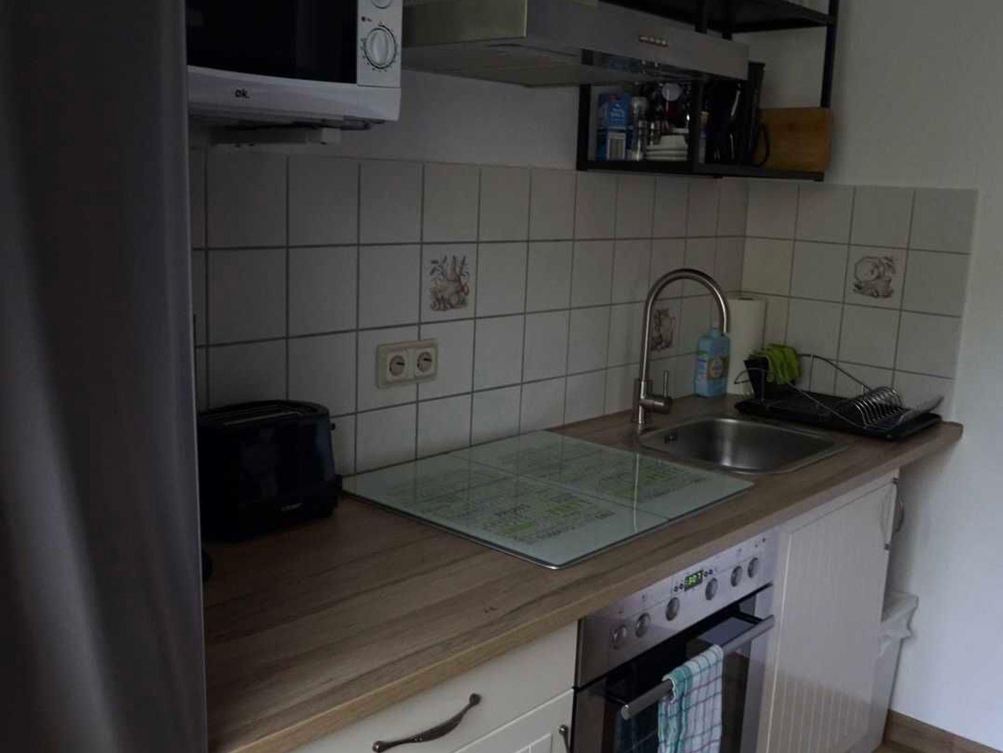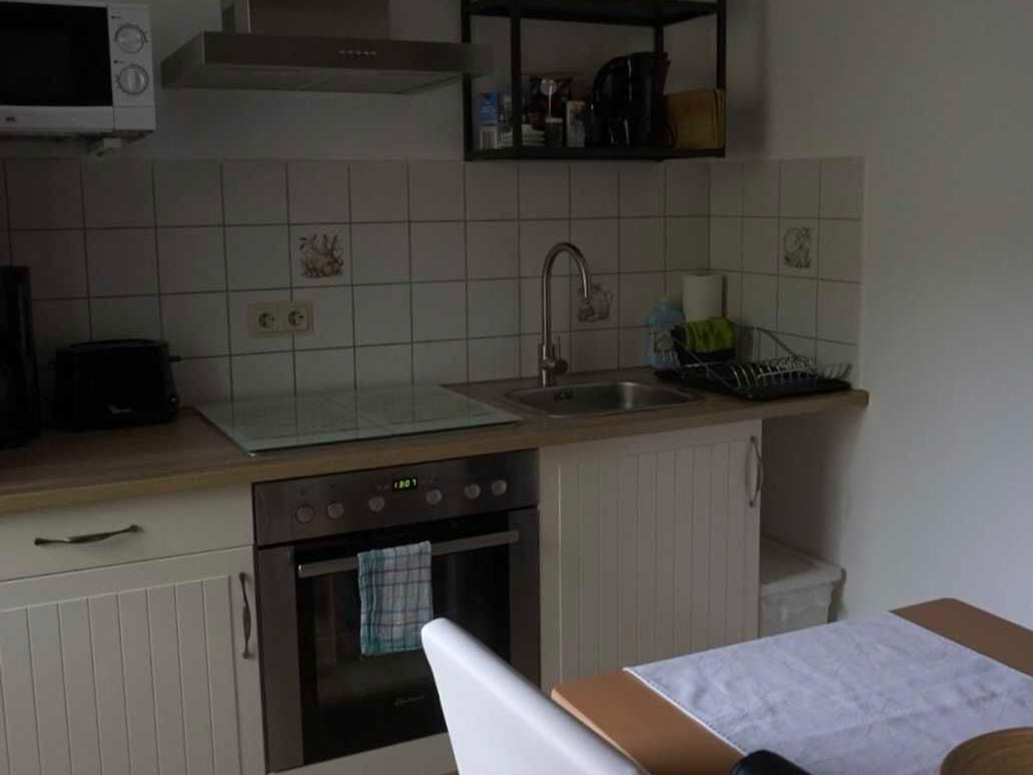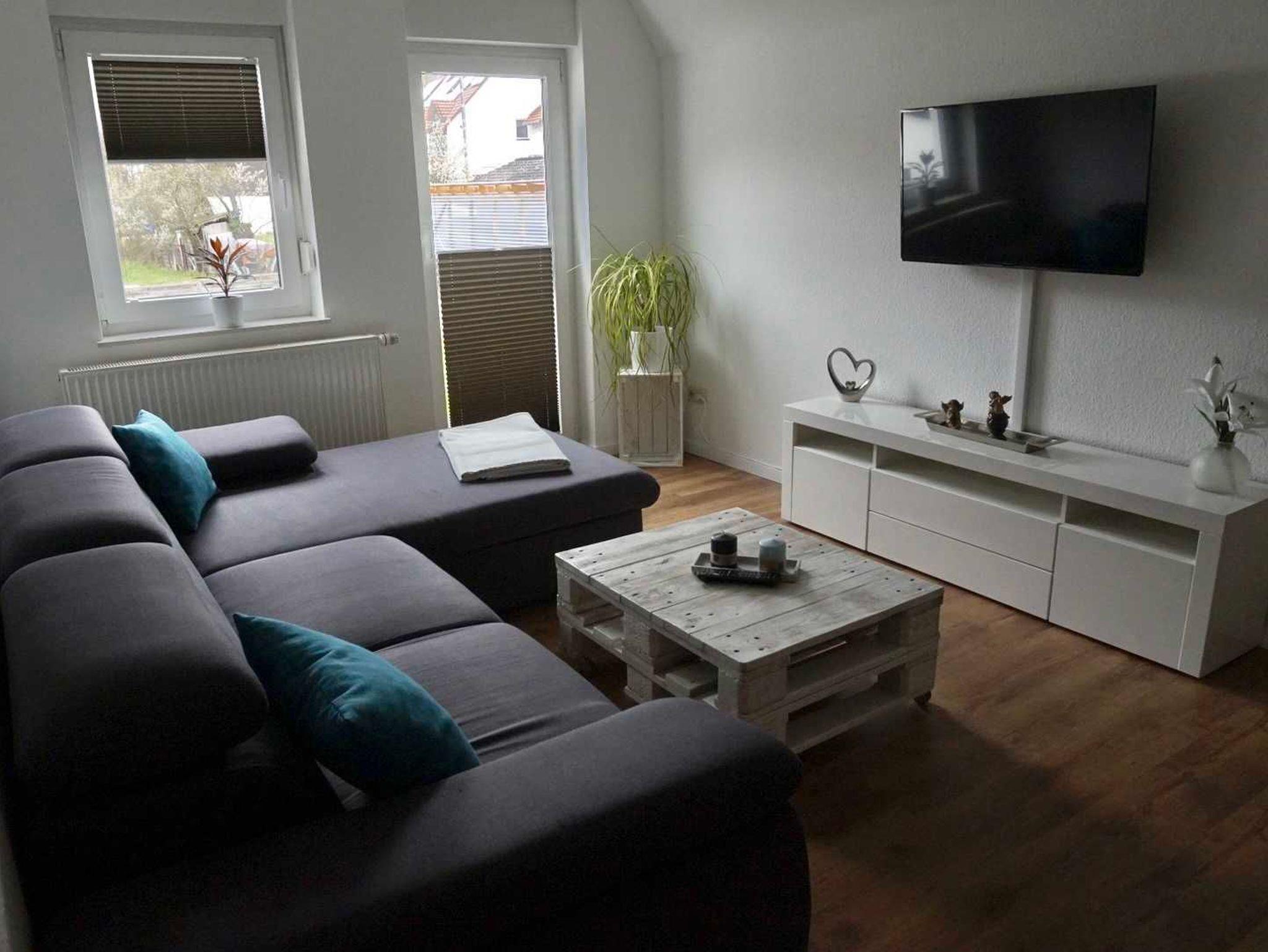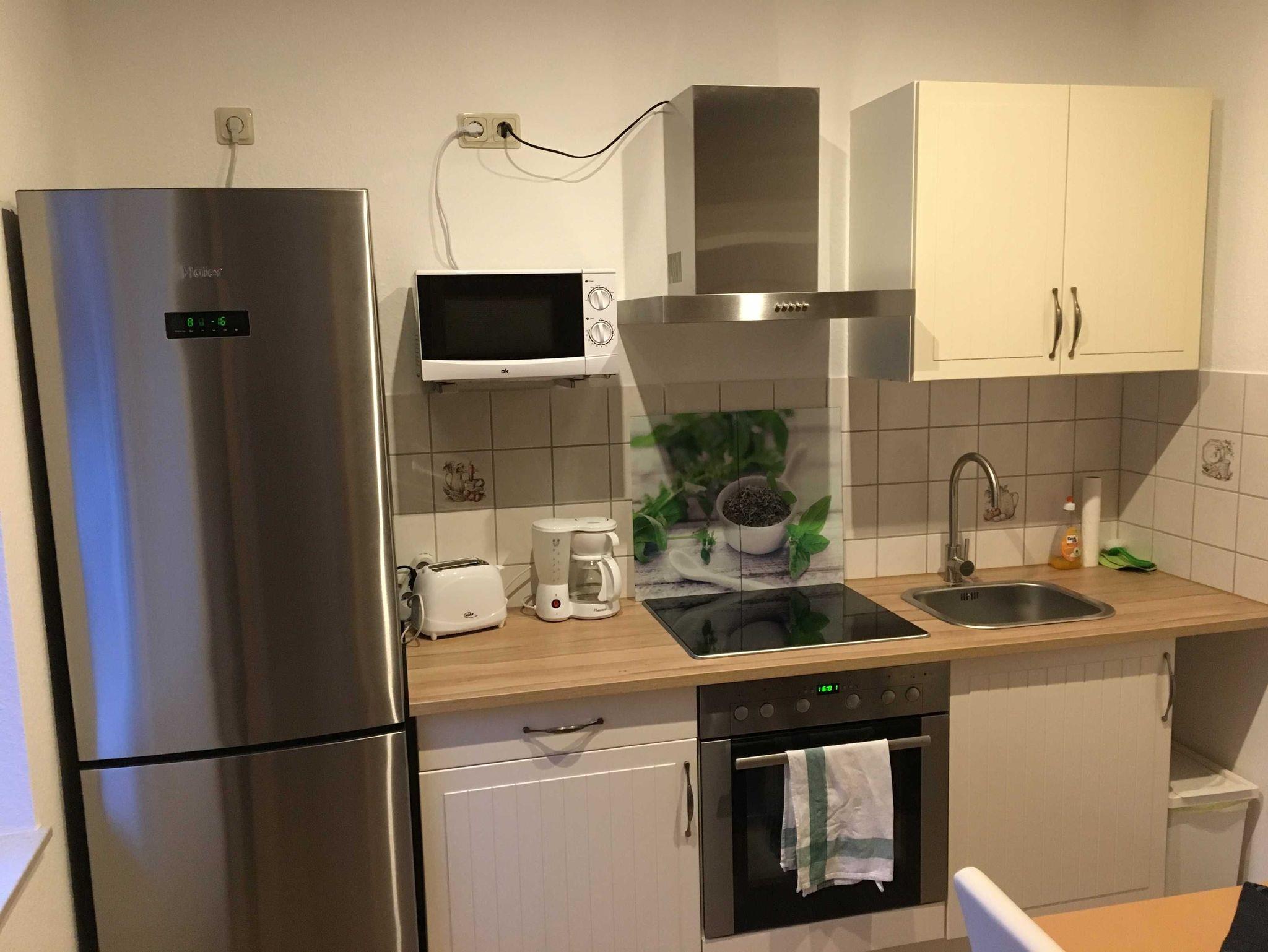 Schöne 2-Zimmer Ferienwohnung, 2022 neu renoviert und möbliert. Sie ist ca. 50 m² groß und hat einen kleinen Balkon sowie eine kleine Terrasse. Im Wohnzimmer befindet sich eine weitere Schlafmöglichkeit (Ausziehcouch mit Liegefläche ca. 140 x 200 cm), sodass bis zu 4 Personen die Wohnung nutzen können. Für die ganz Kleinen steht ein Reisebett kostenlos zur Verfügung. Im Schlafzimmer steht ein großes Doppelbett mit 180 x 200 cm Liegefläche sowie ein Kleiderschrank. Die Küche ist mit Kühlschrank, Herd und Mikrowelle sowie Wasserkocher, Toaster und Kaffeemaschine ausgestattet. Das Bad ist ausgestattet mit Dusche und einer Badewanne. Im Preis enthalten sind Handtücher, Geschirrtücher und Bettwäsche. Strom, Wasser und Heizung sind auch inklusive.