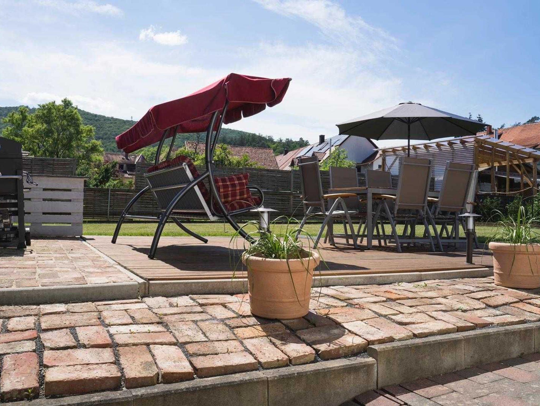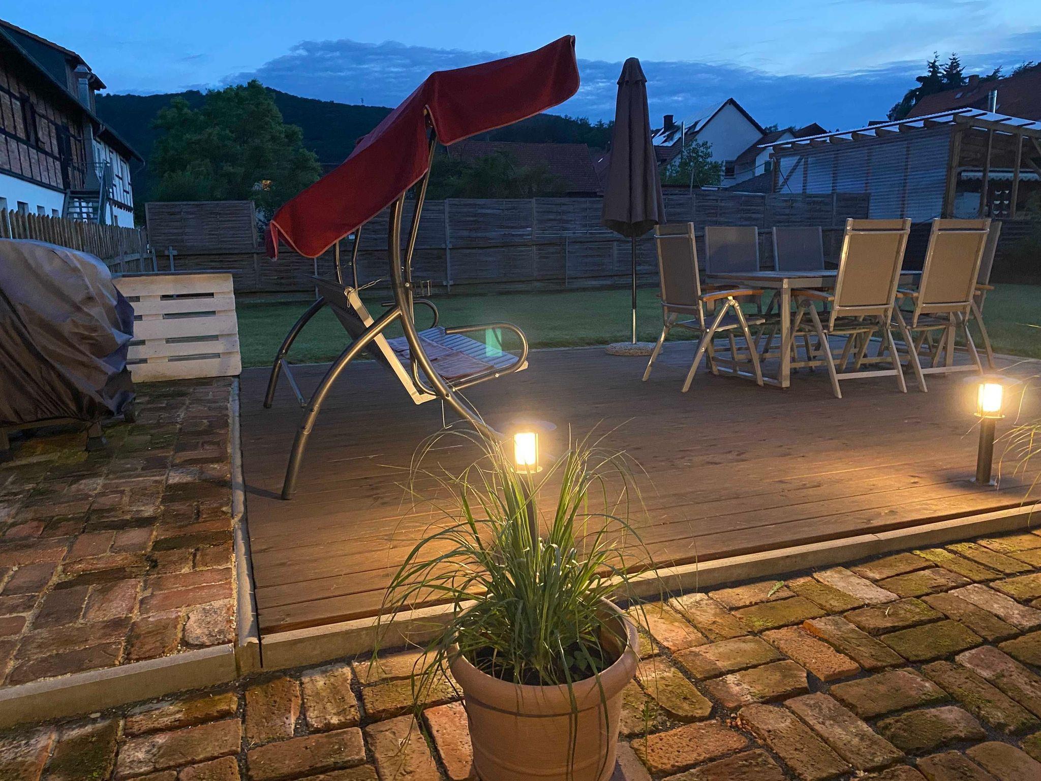 Die Ferienwohnung befindet sich in einem Anbau an unserem Einfamilienhaus. Sie erstreckt sich über zwei Etagen, im Erdgeschoss befindet sich Bad und Schlafzimmer und im ersten Stock befindet sich Küche und Wohnzimmer mit Balkon. Das Haus steht in einer verkehrsberuhigten Straße, in einem umzäunten Grundstück mit Garten. Für die Ferienwohnung steht eine kleine Terrasse zur Verfügung mit Grillmöglichkeit. Außerdem ist ein Stellplatz für Pkw vor dem Haus vorhanden. In einer Minute ist ein Geldautomat, Frisör und ein kleiner Tante-Emma-Laden (nur Kartenzahlung dort möglich) und ein Metzger zu Fuß zu erreichen. Die Sperrmauer mit Aquapark erreicht man zu Fuß in ca. 15 Minuten.