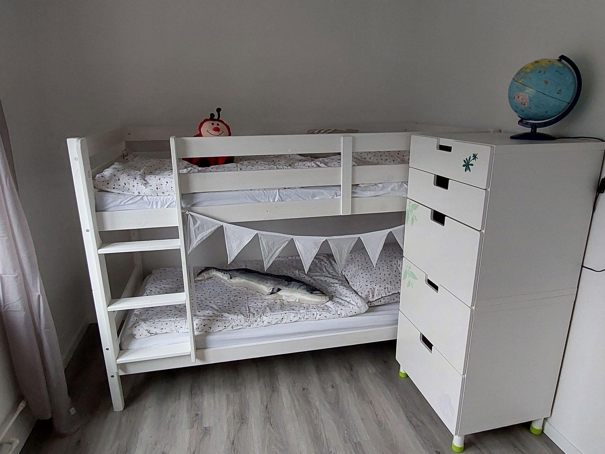 Etagenbett, Reisebett, Regal mit Spielsachen und Büchern, Kleiderschrank