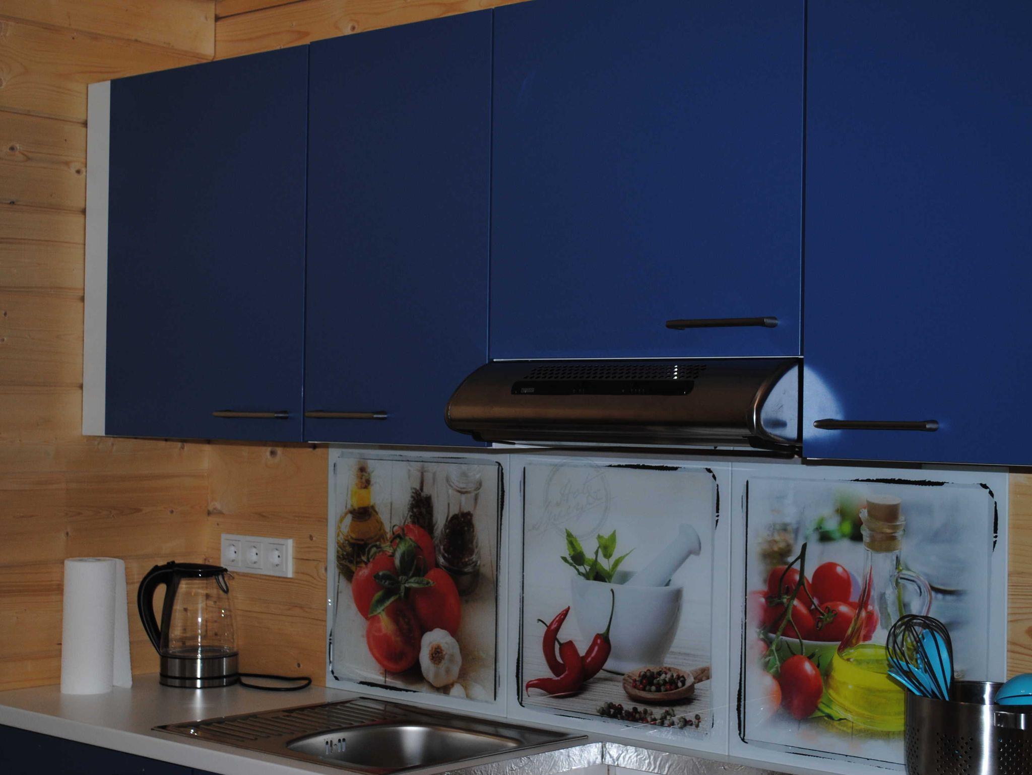 Das Haus ist ausgestattet mit einer Küche, Herd, Kühlschrank und einem Backofen.