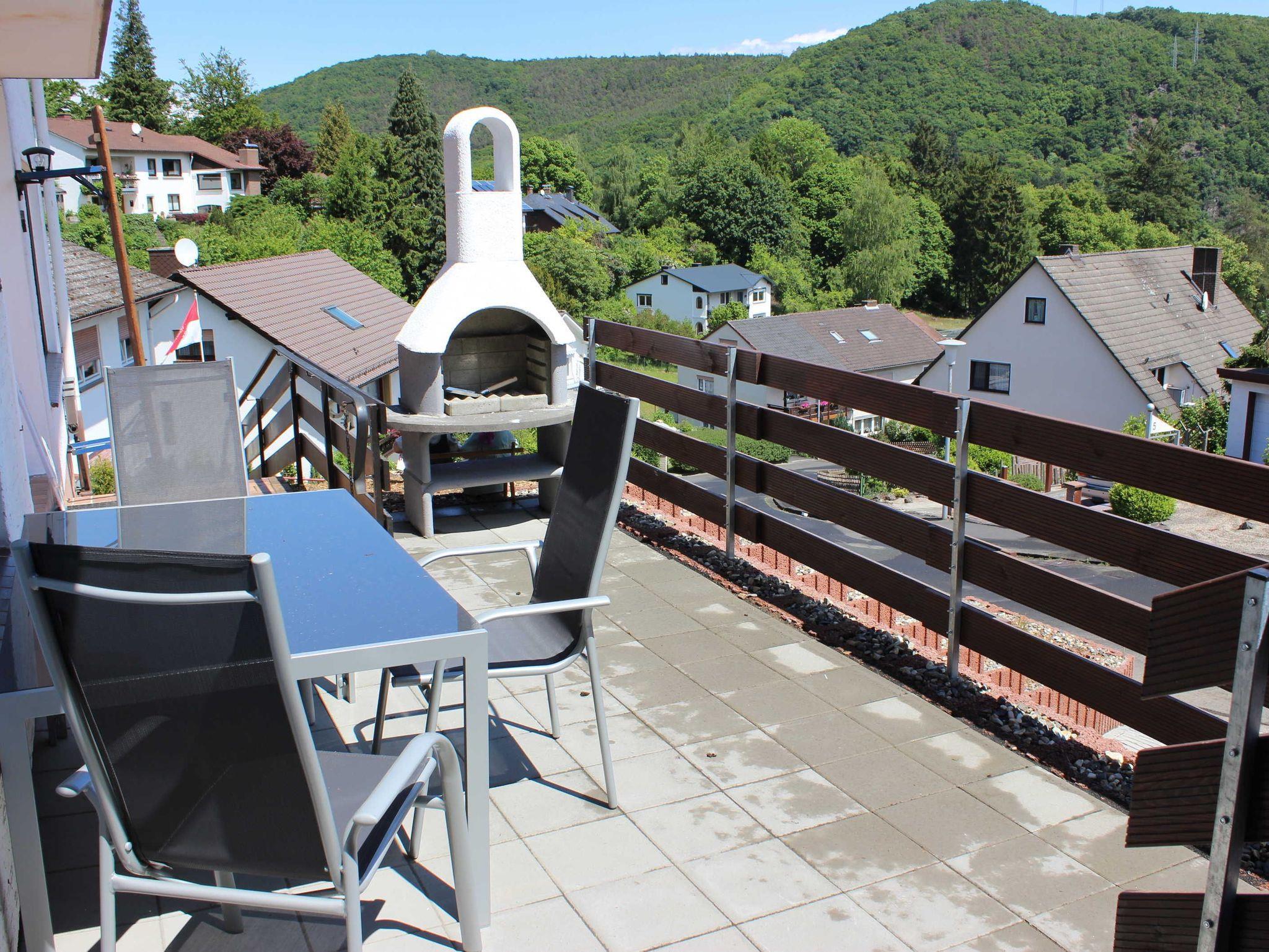 Der große Balkon mit Sitzgelegenheiten (Südostseite) bietet ebenfalls einen tollen Blick in Richtung Hemfurth/ Edersee.