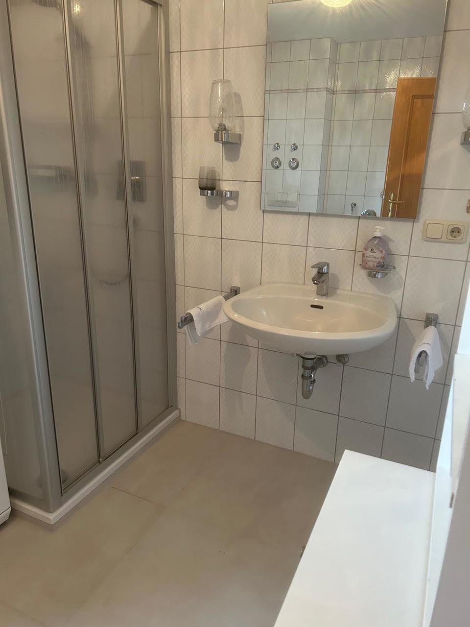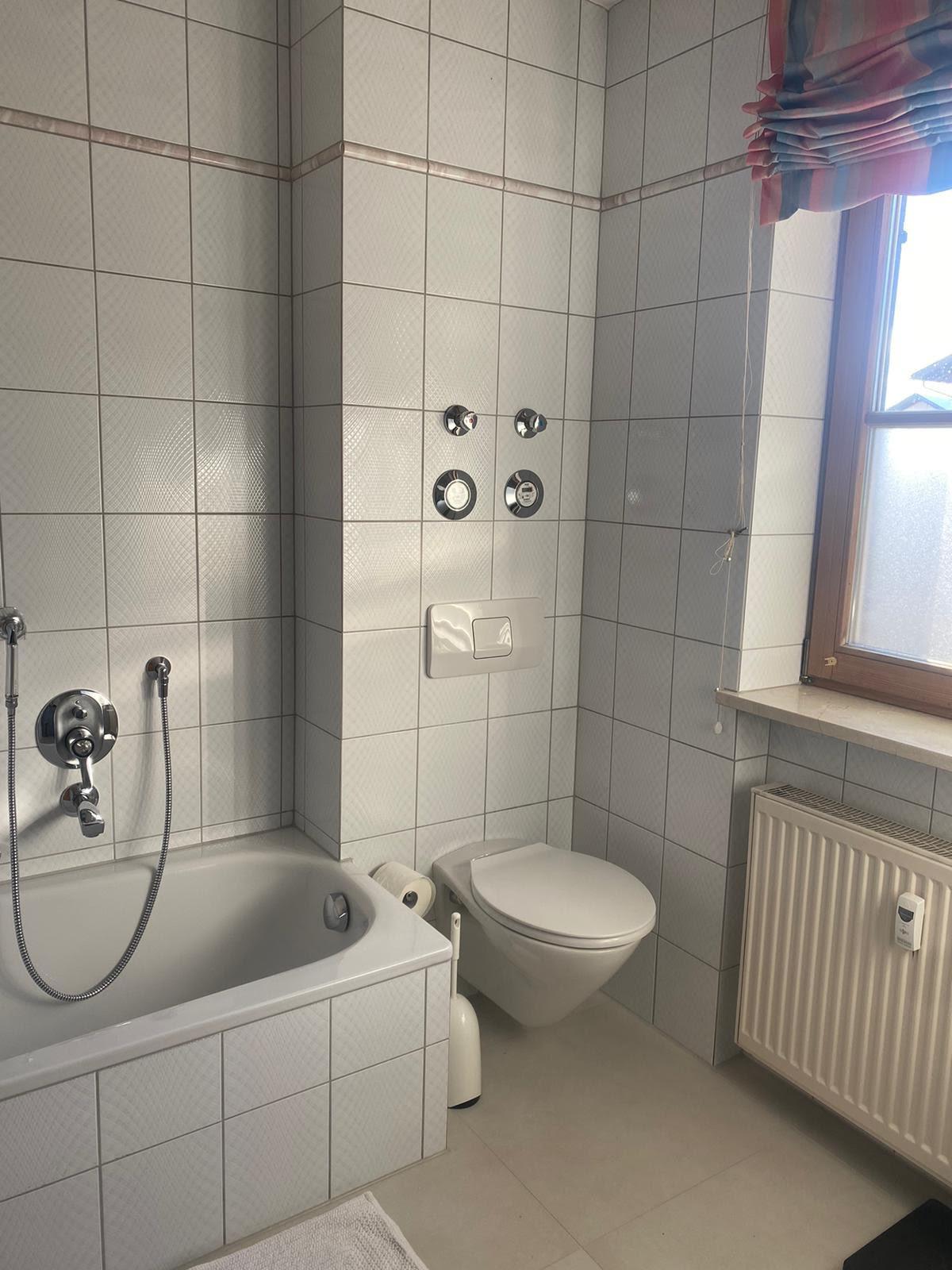 Badeværelse med bruser og badekar
