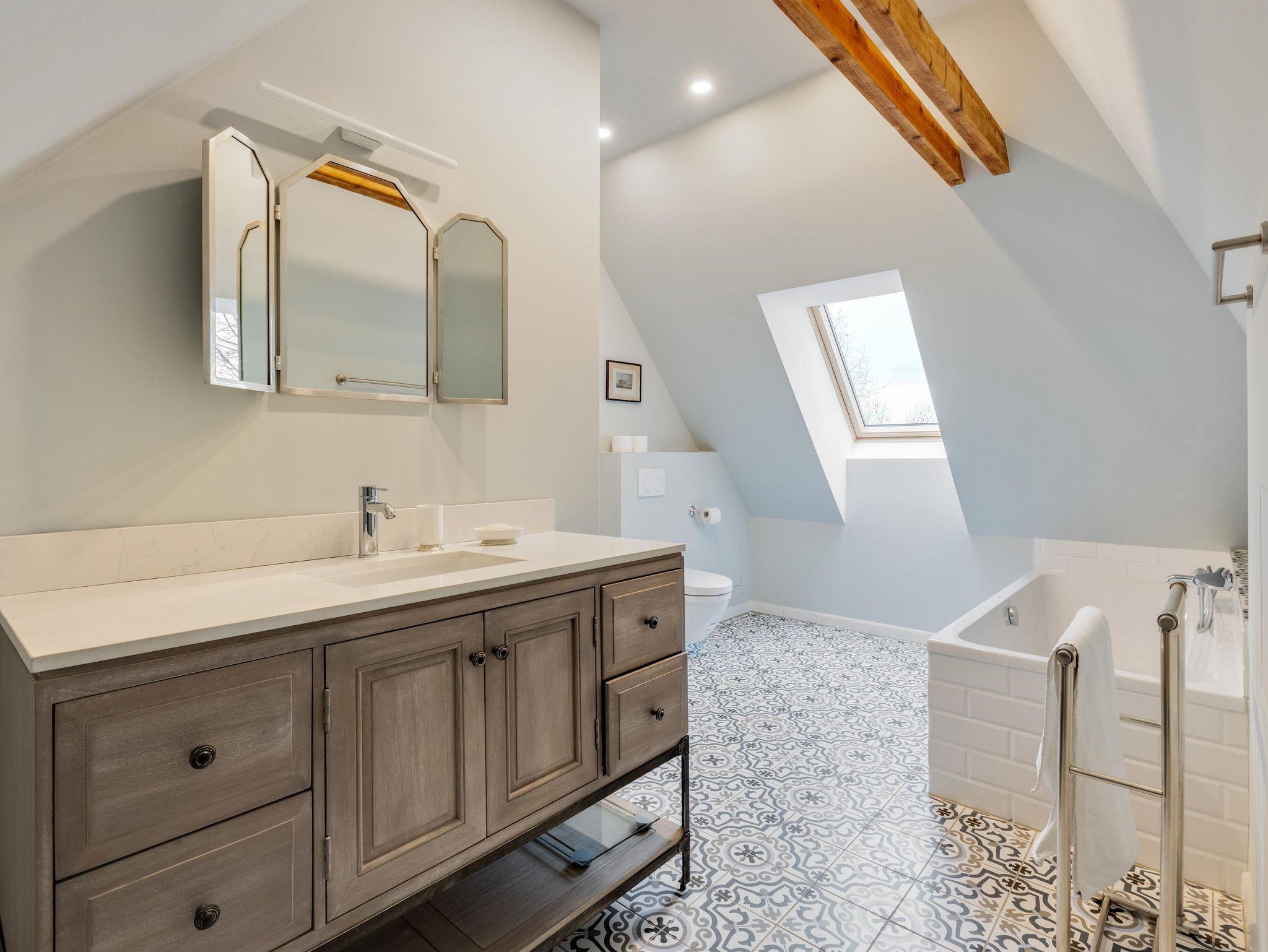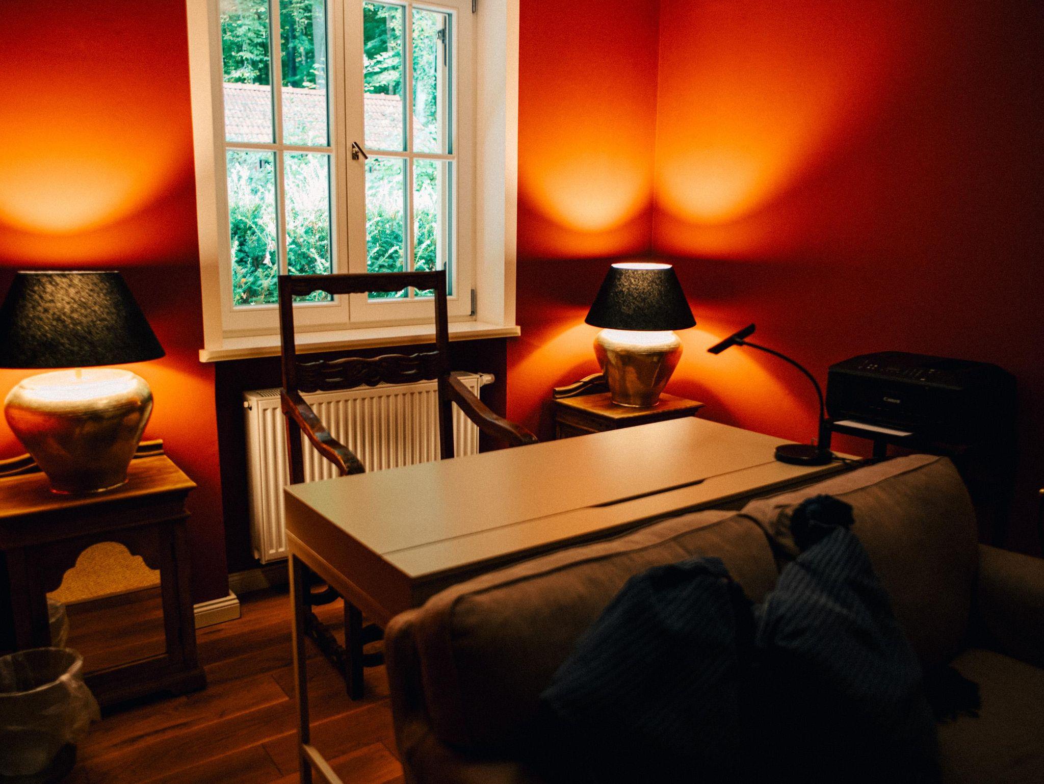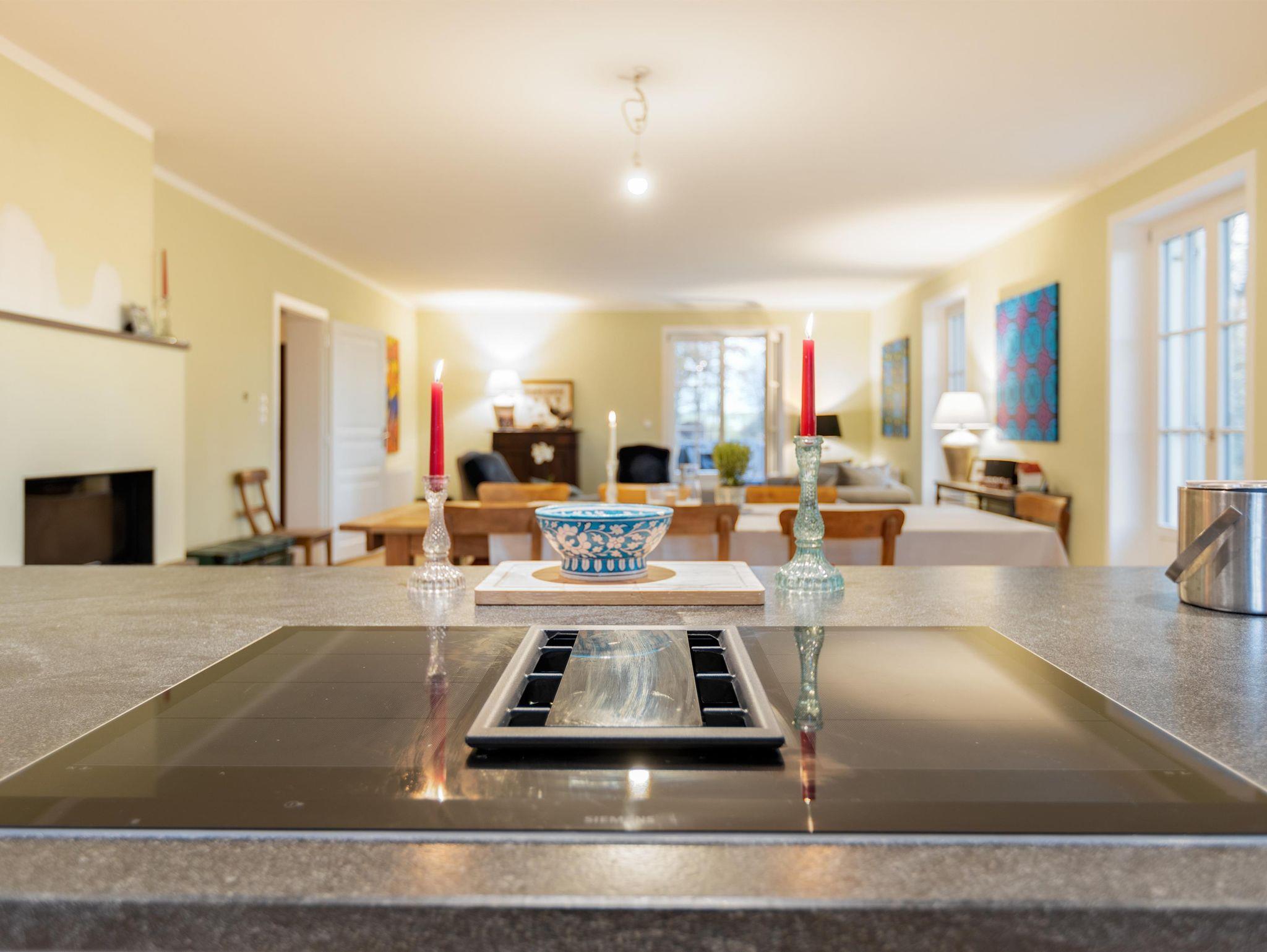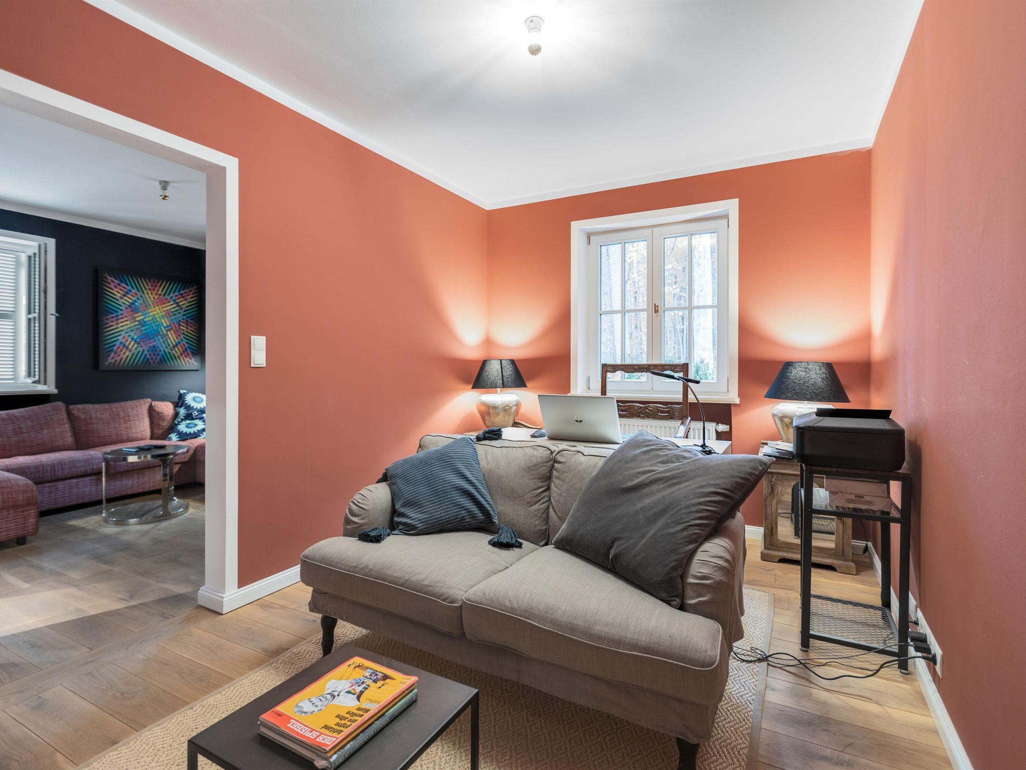 Das hochwertig ausgestattete Haupthaus erstreckt sich über 4 Etagen. Sowohl das Wohnzimmer, wie auch die Küche ist mit Top-Technik ausgestattet. Die Küche verfügt über zwei Öfen, einen Induktionsherd, eine vollautomatische Kaffeemaschine und eine Spülmaschine. Im ersten und zweiten Stock befinden sich 5 Schlafzimmer sowie 2 Bäder. Im Souterrain sind 2 weitere Schlafzimmer, ein Bad und ein zweites Wohnzimmer. Auf der Terrasse lässt sich bei einem gemütlichen Grillabend, der Tag ausklingen.