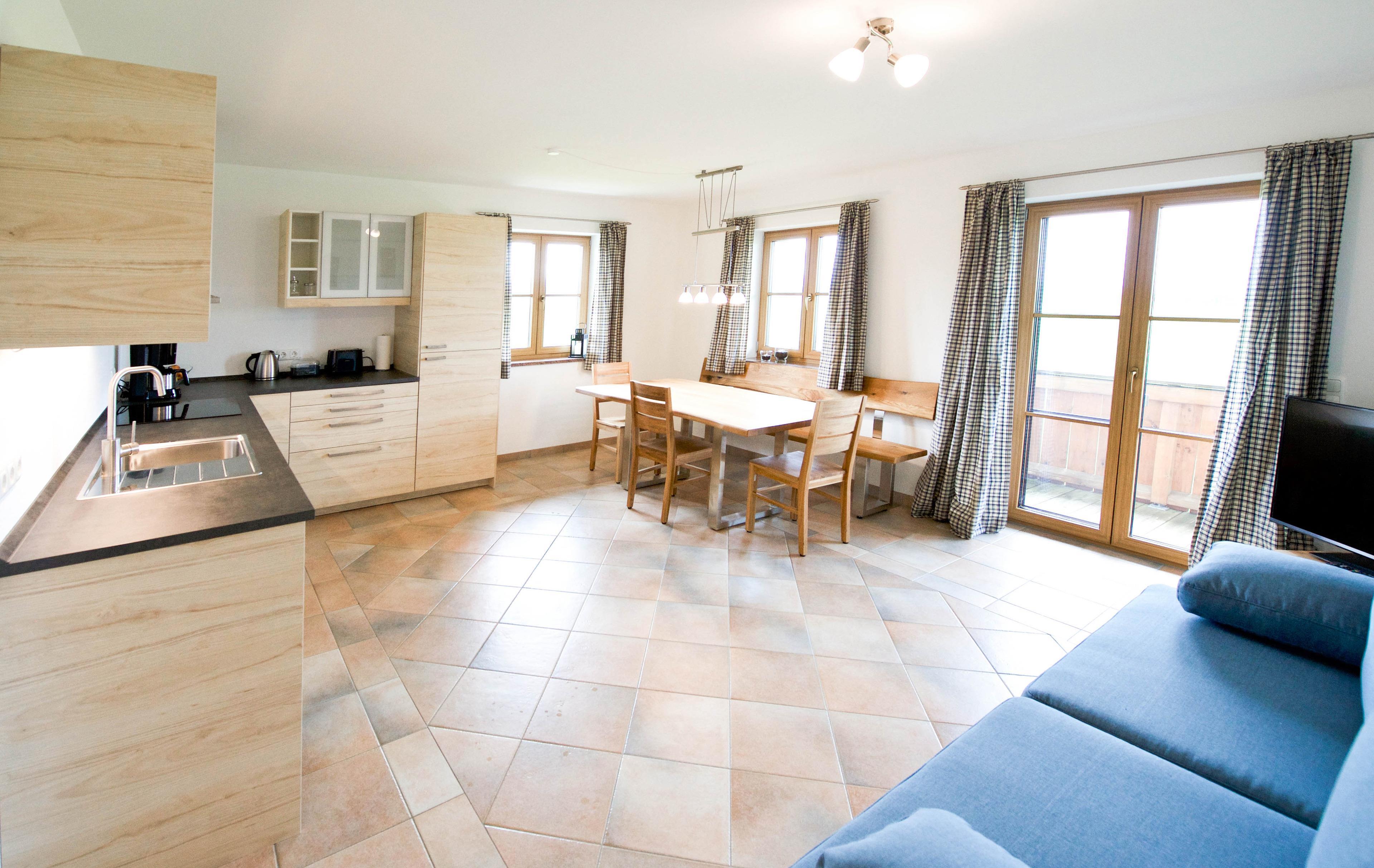 Die Wohnung "Zugspitze" im ersten OG bietet Platz für 2-4 Personen und verfügt über eine helle Wohnküche mit großem Esstisch & Doppelschlafcouch. Komplett ausgestattete Küche zur Zubereitung eigener kulinarischer Köstlichkeiten. Schlafzimmer mit großem Doppelbett, geräumiges Bad mit Dusche/Badewanne/WC, Südbalkon mit Möbeln. Ein moderner Flachbild-Fernseher sowie kostenloses W-LAN stehen zur Verfügung.