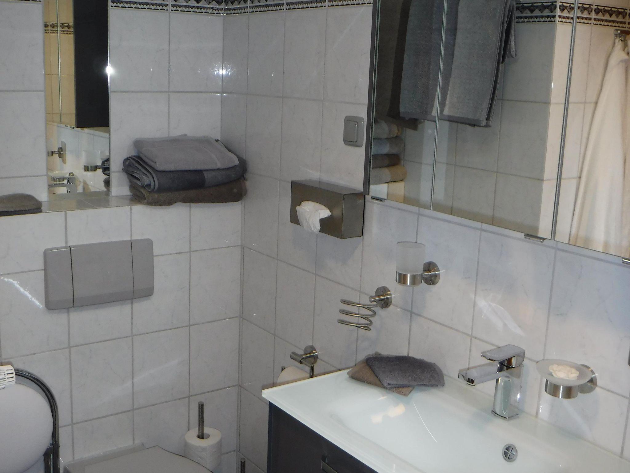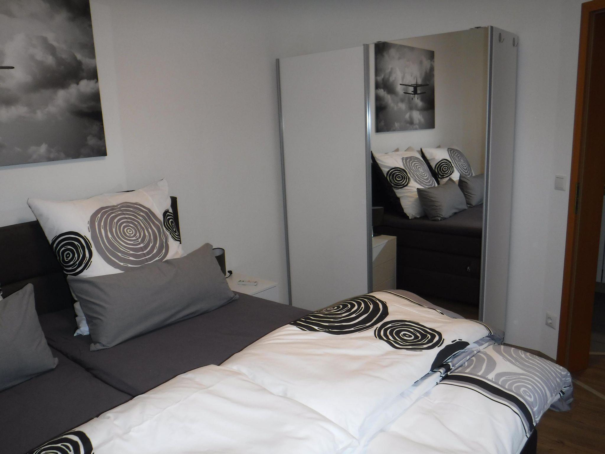 Die Wohnung, die seit Juni 2017 vermietet wird, bietet Platz für bis zu 4 Personen und verfügt über eine elegante, voll ausgestattete Küchenzeile mit Ceran-Kochfeld und Mikrowelle, Bad mit Badewanne und Dusch-Paneel. Wohn/Essbereich mit einer gemütlichen Eckbank-Gruppe und mit geräumigem Schlafsofa, einem bequemen Designer Sessel sowie Couchtisch, Panasonic 40 LED Fernseher und erstklassiger Sonoro Musikanlage. Eine interessante Auswahl an DVDs, CDs, Büchern und Spielen ist ebenfalls vorhanden. Das Schlafzimmer ist mit einem elektrisch verstellbarem Belcanto Boxspringbett (extra große Bettauflagen 155x220 m) ausgestattet. Ein Fliegengitter sorgt für ungestörten Schlaf. Das Schlafsofa bietet Platz für die zwei weiteren Schlafplätze. Waschmaschine, Trockner, Gefrierschrank, Gartenmöbel und Sonnenschirm sowie ein Holzkohlegrill stehen Ihnen ebenfalls zur Verfügung. Der in die Wohnung integrierte Mehrzweckraum ist u. a. ideal zur Aufbewahrung Ihrer Wander-, Ski- und Sportausrüstung geeignet. Auf der großen Sonnenterrasse lässt es sich herrlich entspannen.